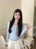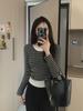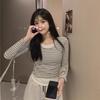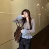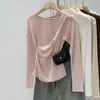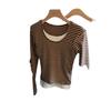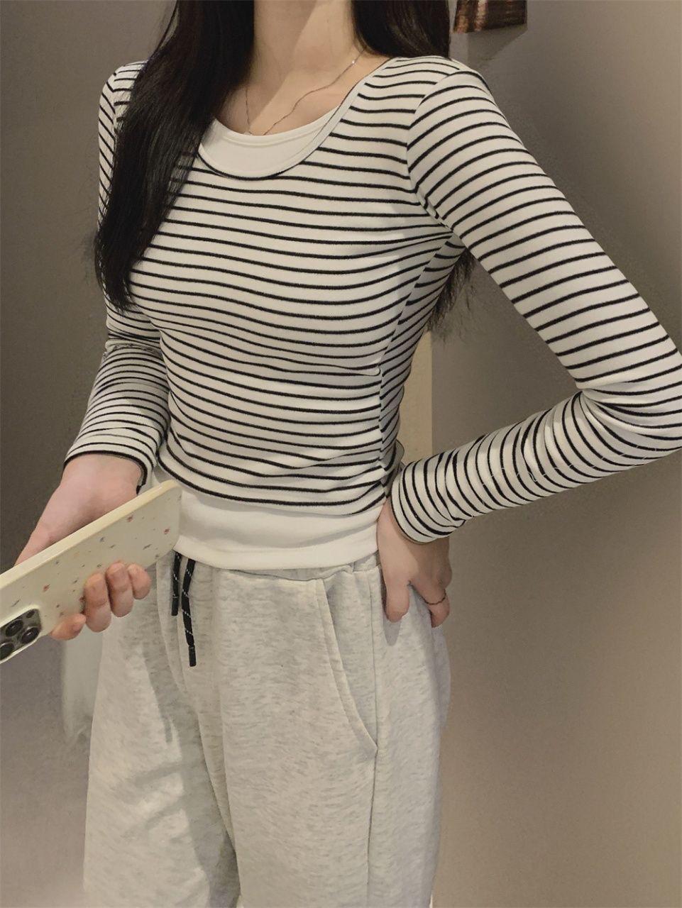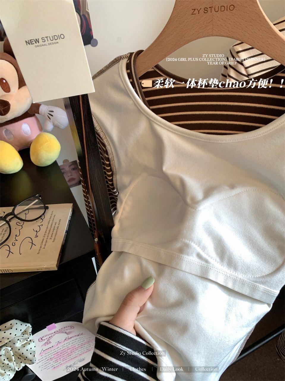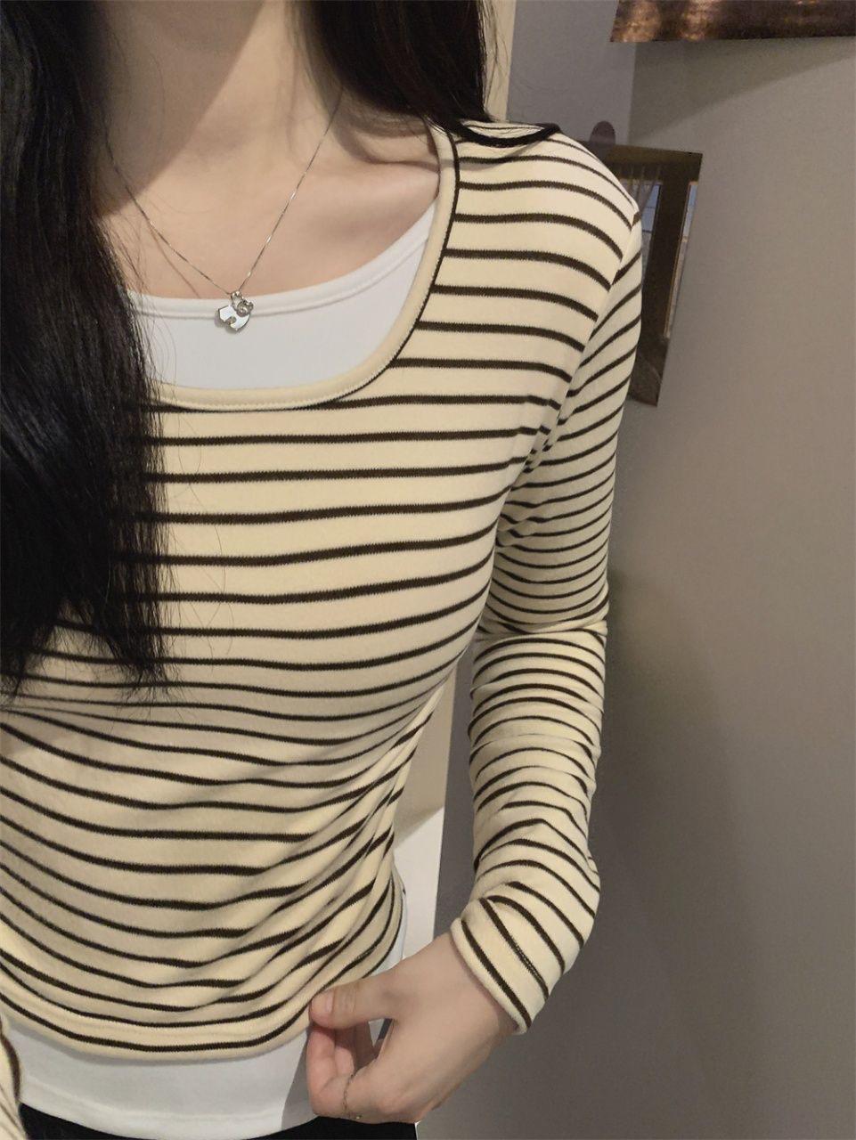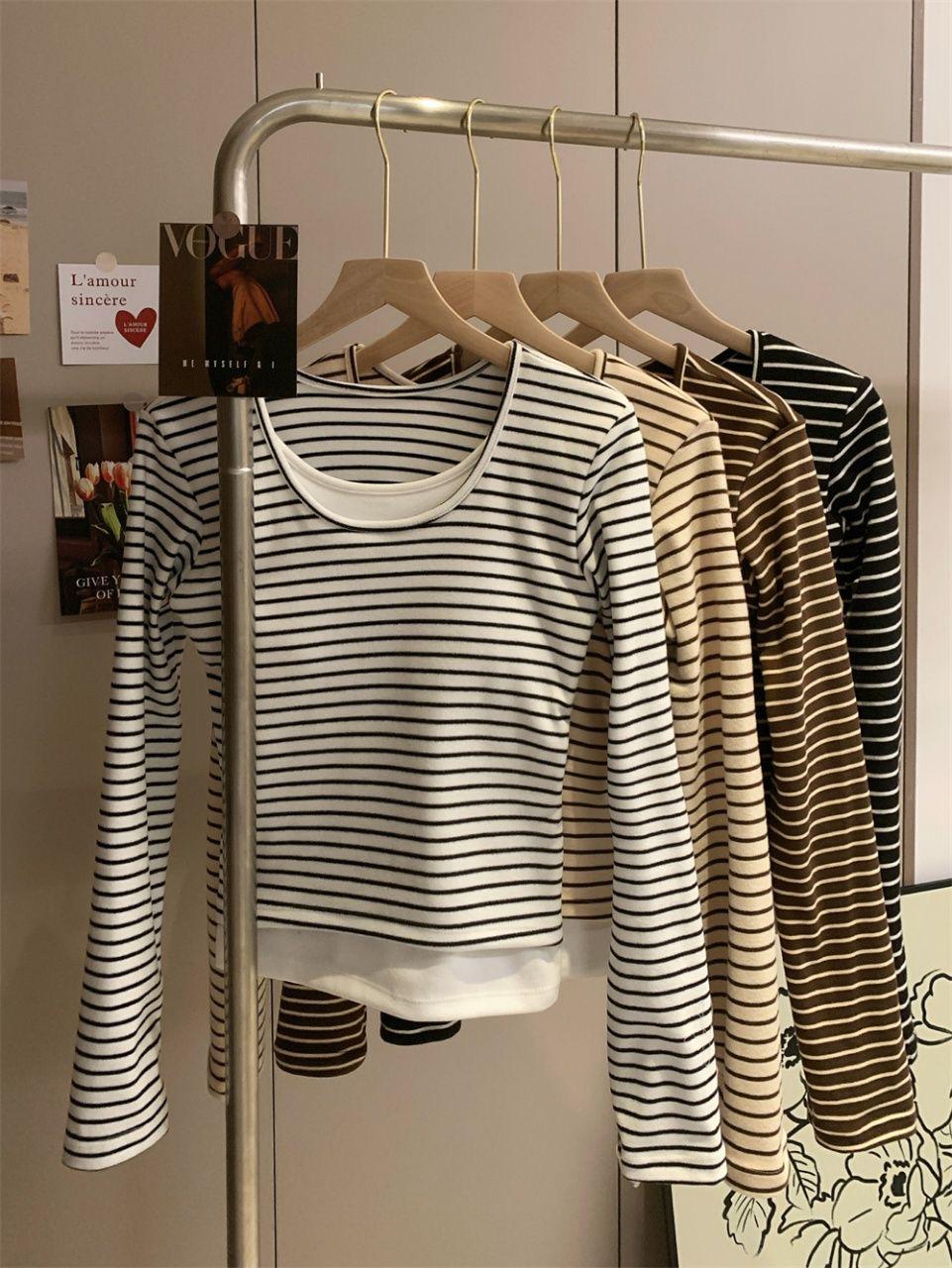 Camiseta de manga larga con cuello redondo de terciopelo para mujer, otoño 2024, nuevo diseño de estilo coreano, estilo nicho falso, camisa base de dos piezas