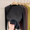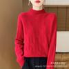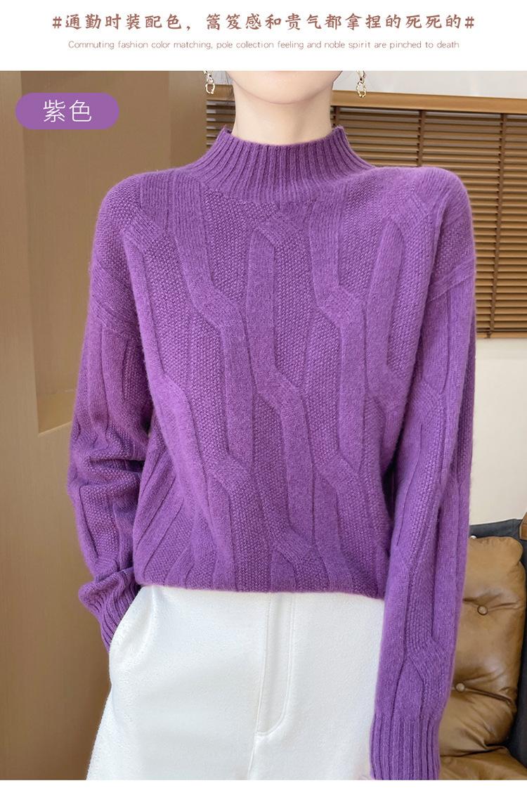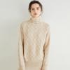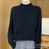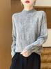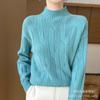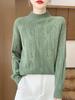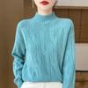 Suéter de cuello alto medio grueso con flores de cáñamo para otoño e invierno, suéter de punto suelto para mujer, suéter interior de lana de color sólido