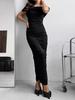 Vestido Europeo y Americano con Top de Tubo Descubierto para Mujer 2025 Otoño e Invierno Nuevo Temperamento Elegante Francés Ajustado Bodycon Vestido Largo