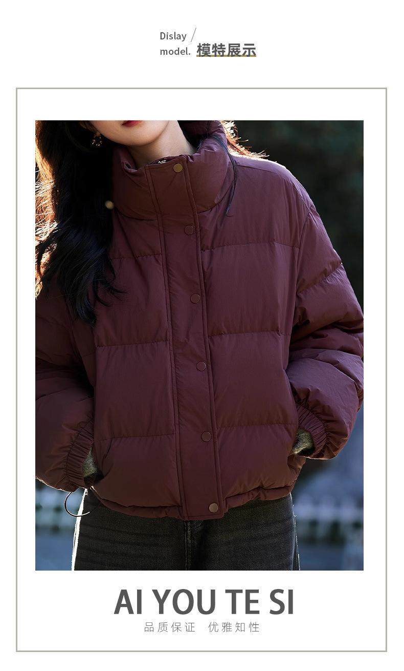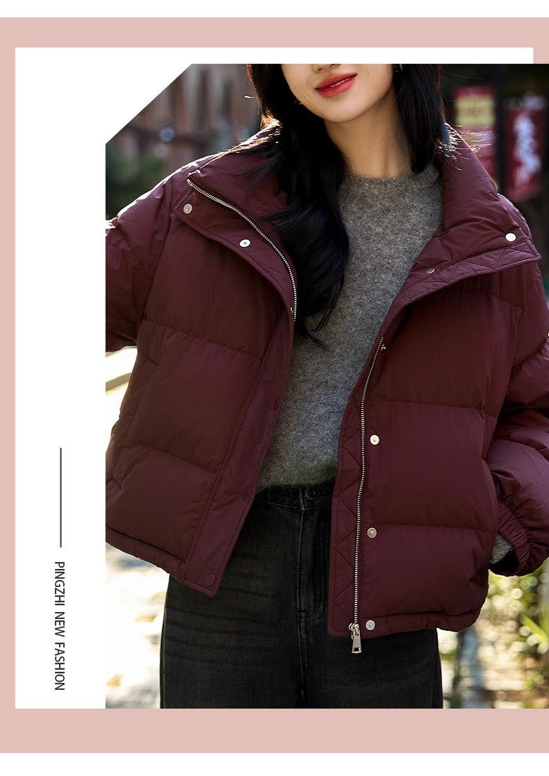 95 Plumón de Ganso Blanco Cuello Alto Cálido Abrigo Tipo Pan Chaqueta de Plumón de Ganso para Mujer Estilo Corto Elegante para Mujer Nuevo Invierno