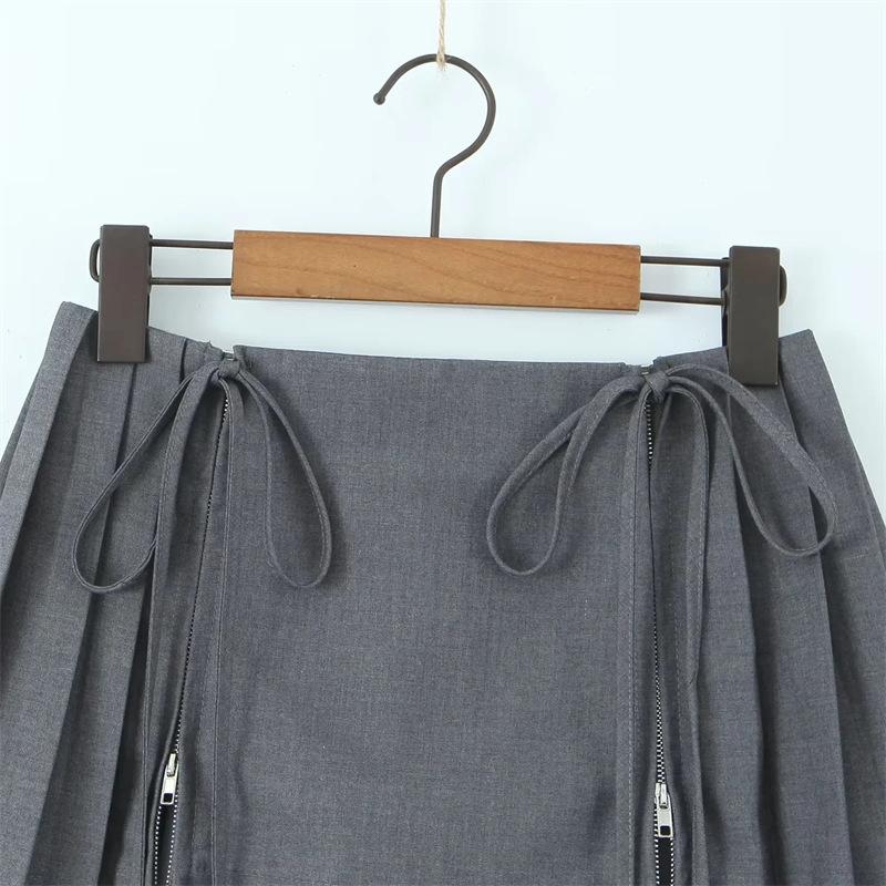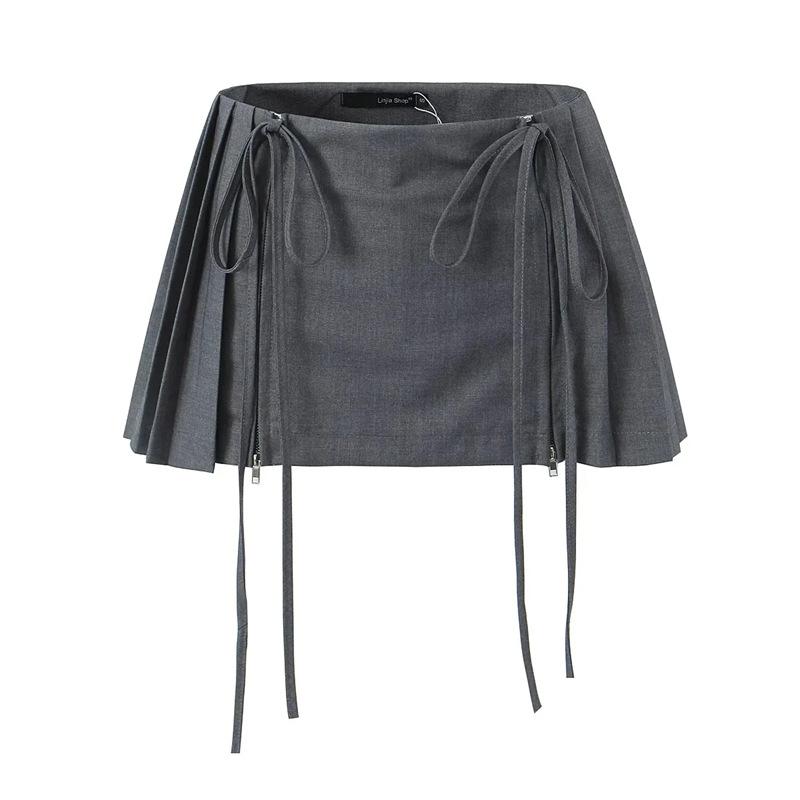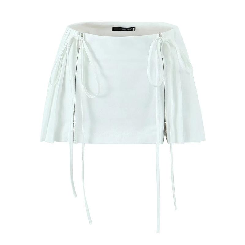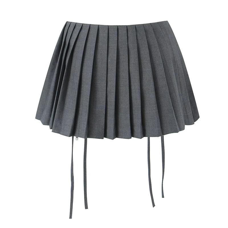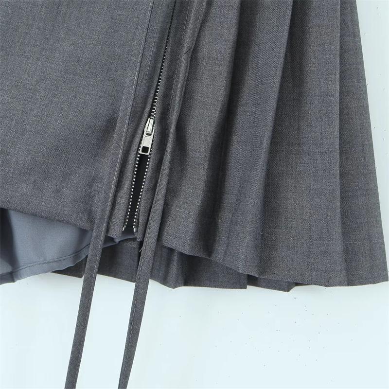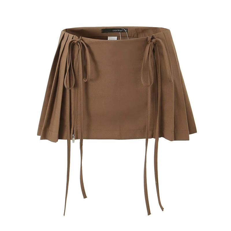Falda de Diseño Europeo y Americano de Cintura Alta con Doble Cordón para Sexys para Prevenir la Exposición y Minifalda Versátil Plisada en A