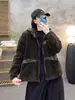 Abrigo de pana grueso con forro polar con capucha para mujer Invierno Nuevo Vintage Costuras artísticas Estampado Cálido Algodón acolchado Chaqueta Top