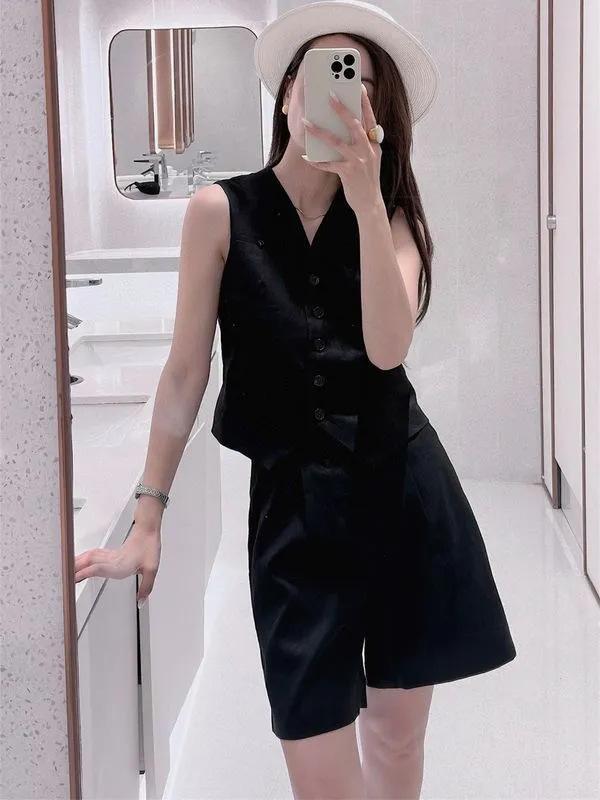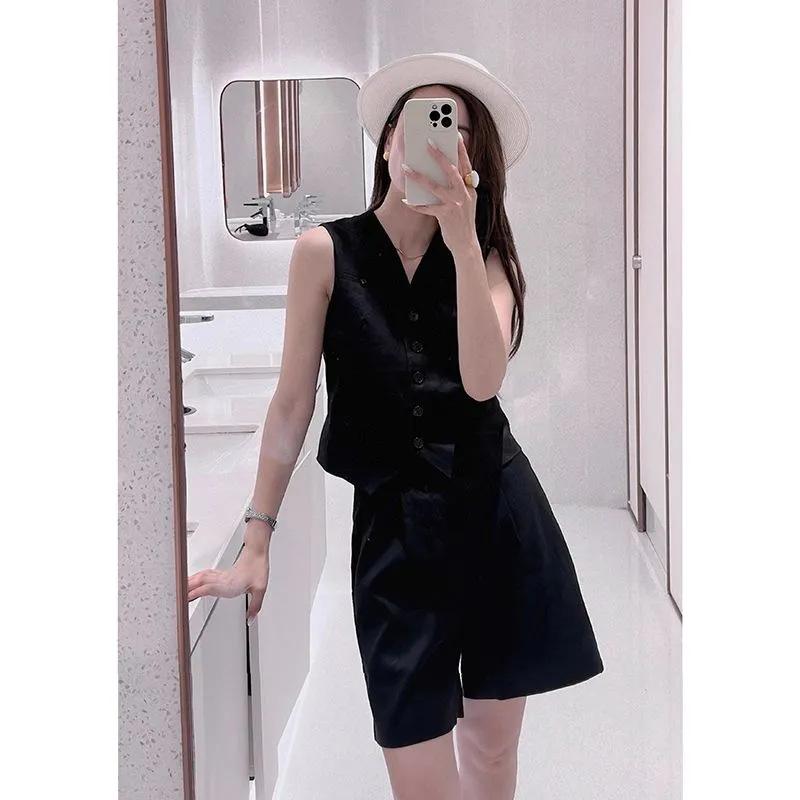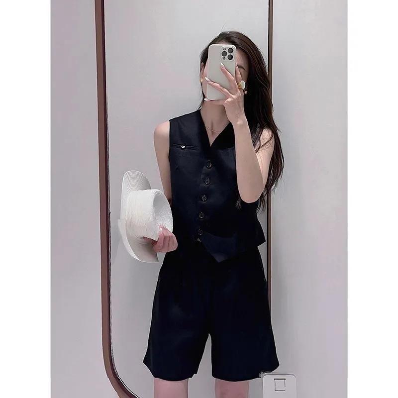 Traje de Moda de Verano Nuevo Sentido de Alta Gama Traje de Temperamento Simple Chaleco Chaqueta Traje Shorts Conjunto de Dos Piezas para Mujer