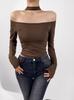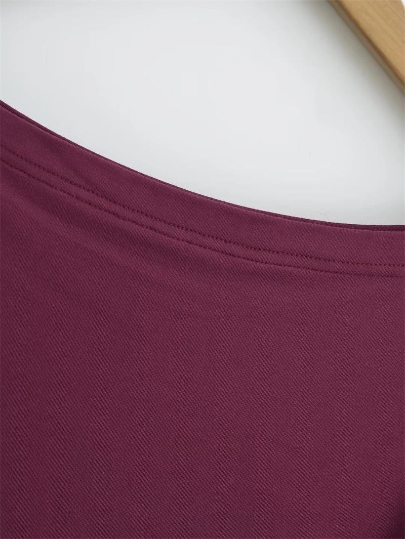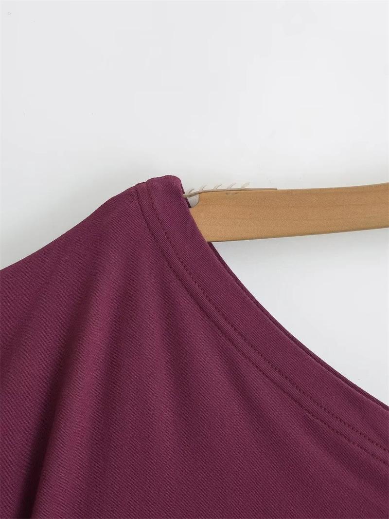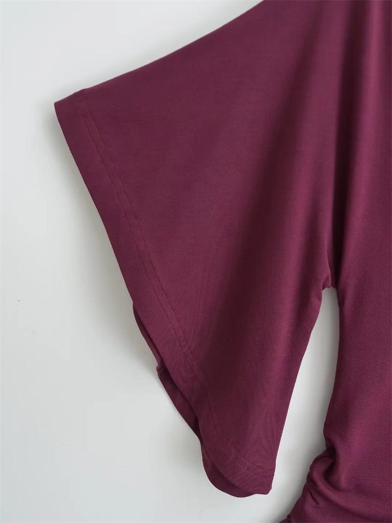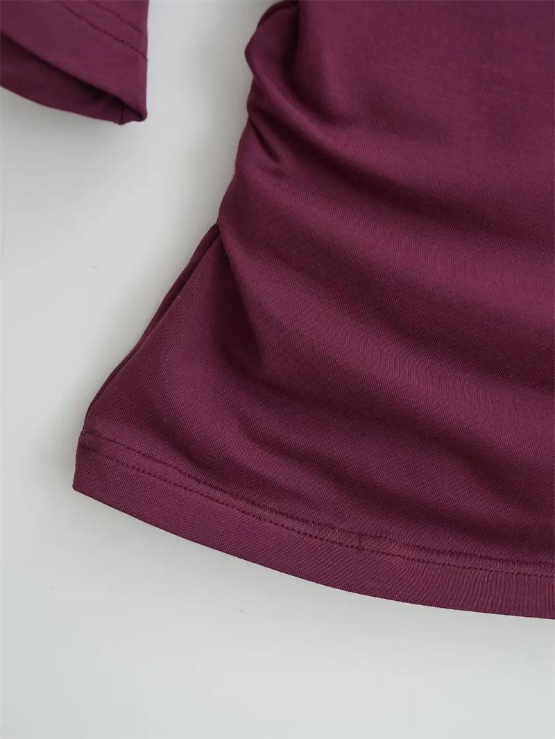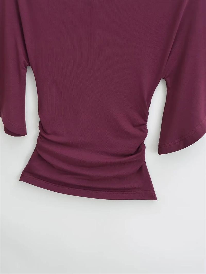 Camiseta sexy de manga acampanada con cuello y hombros descubiertos para mujer, estilo europeo y americano, elástica, ajustada, plisada, corta y pura
