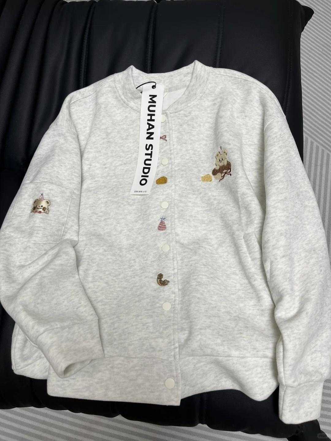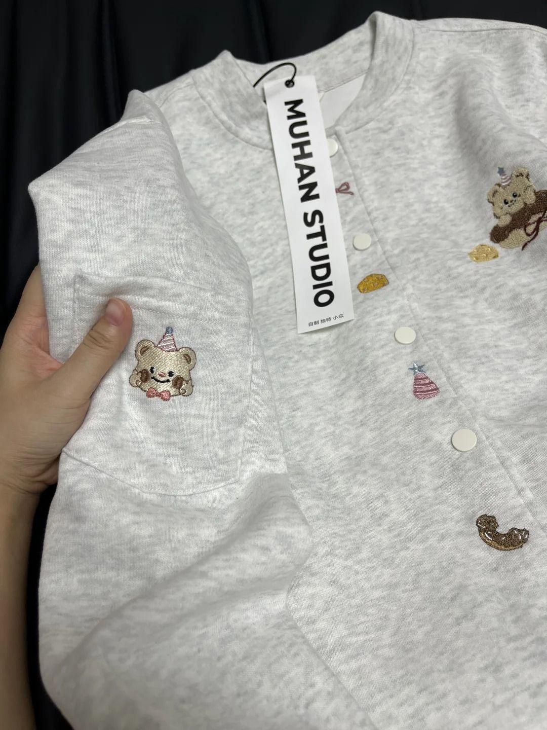 Chamarra Sudadera Bordada Retro Estilo Americano para Mujer Otoño e Invierno Sentido de Alta Gama Suelta Casual Traje de Béisbol Abrigo Trendy