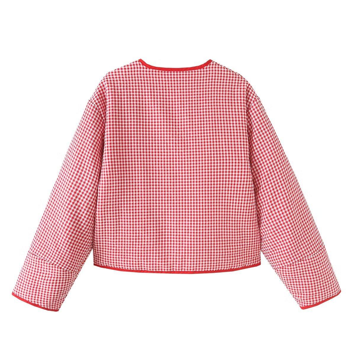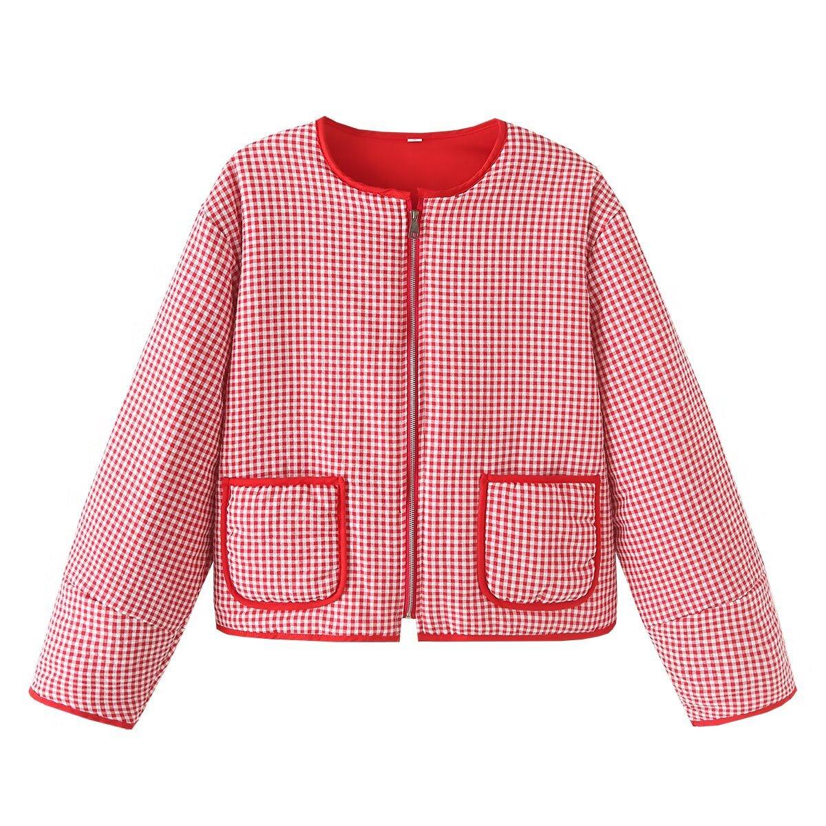 Chaqueta con cremallera en contraste a cuadros para mujer europea y americana, otoño e invierno 2024, nueva moda urbana de comercio exterior transfronterizo de Amazon