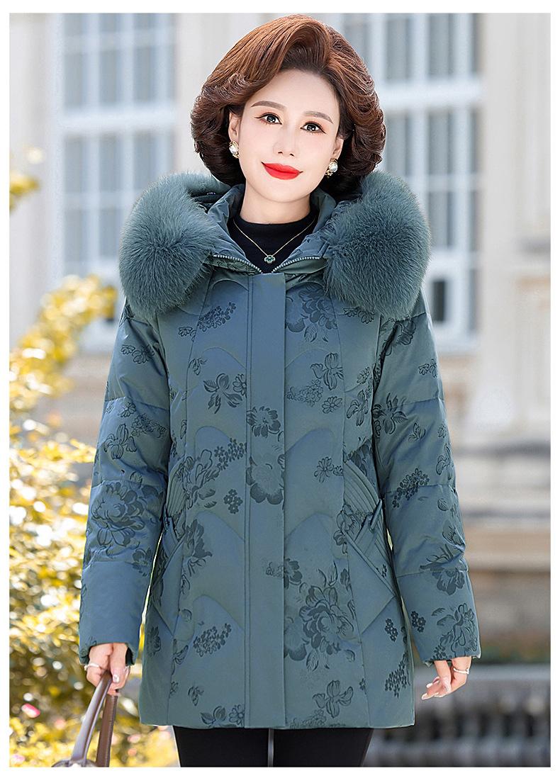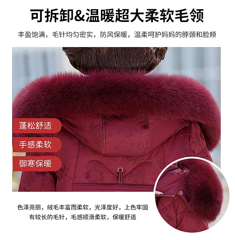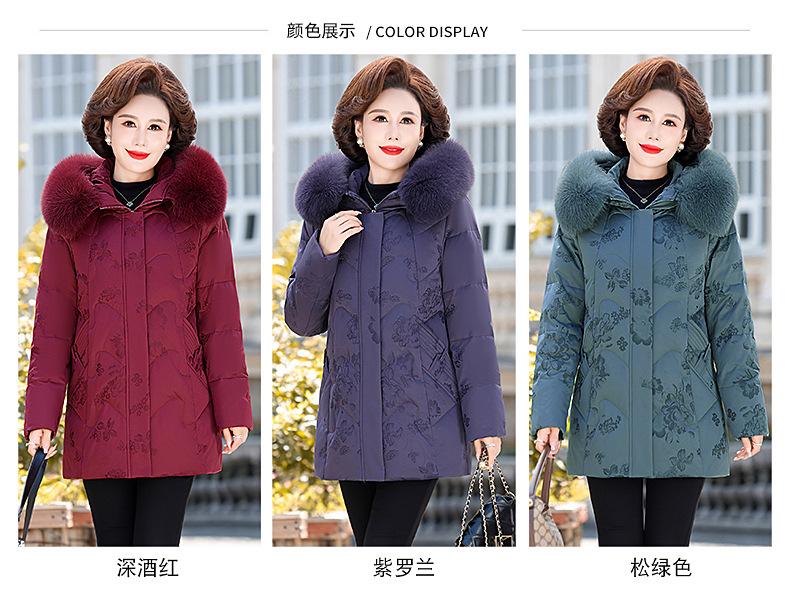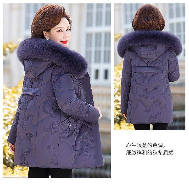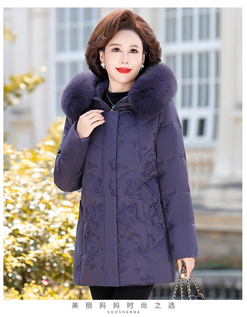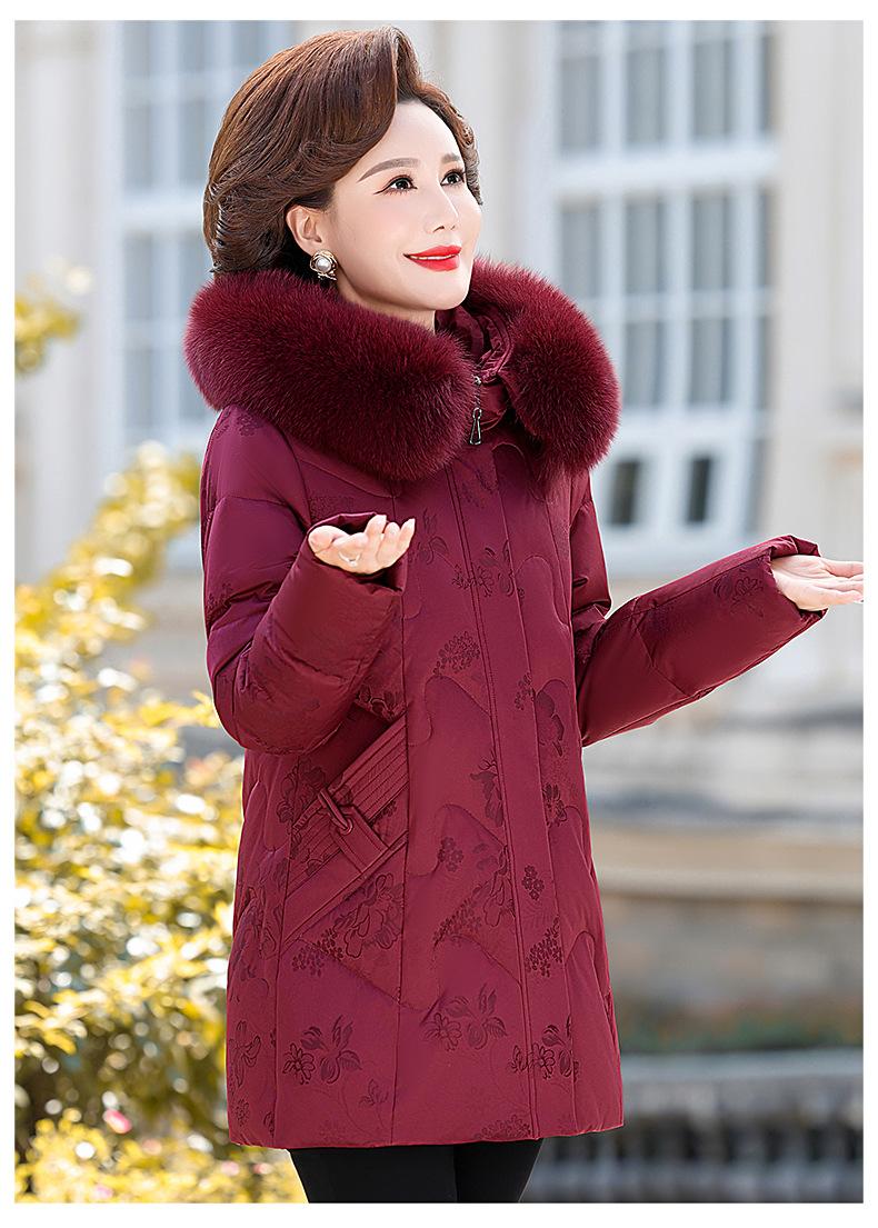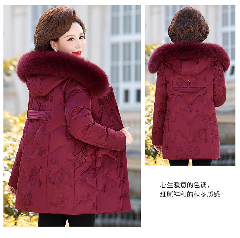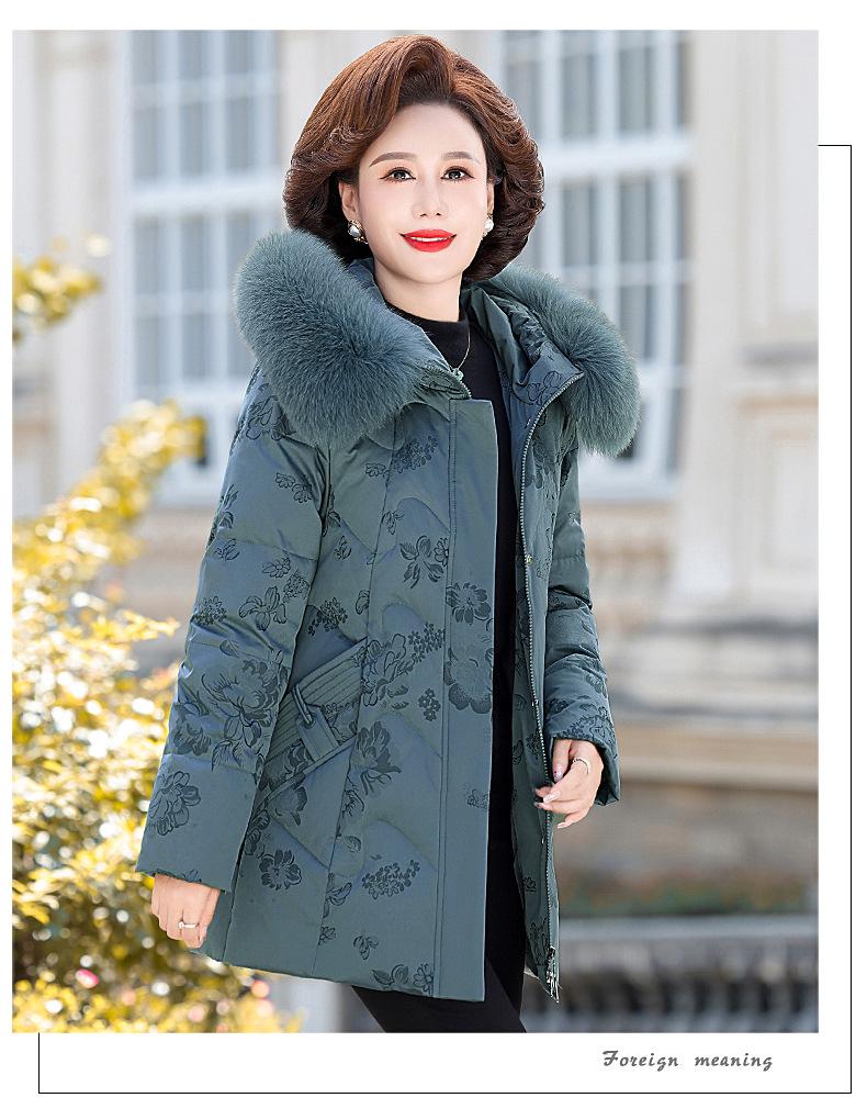Invierno Chaqueta de Plumón para Mujeres de Mediana Edad y Mayores Abrigo para Madre de Mediana Edad Largo de Plumón de Pato Blanco Cuello de Lana de Zorro Abrigo para Mujeres de 60-70 Años