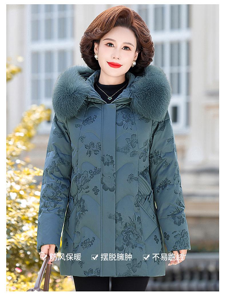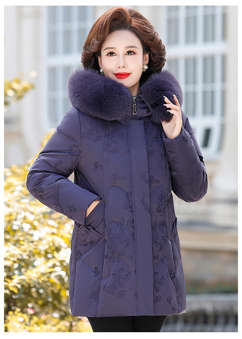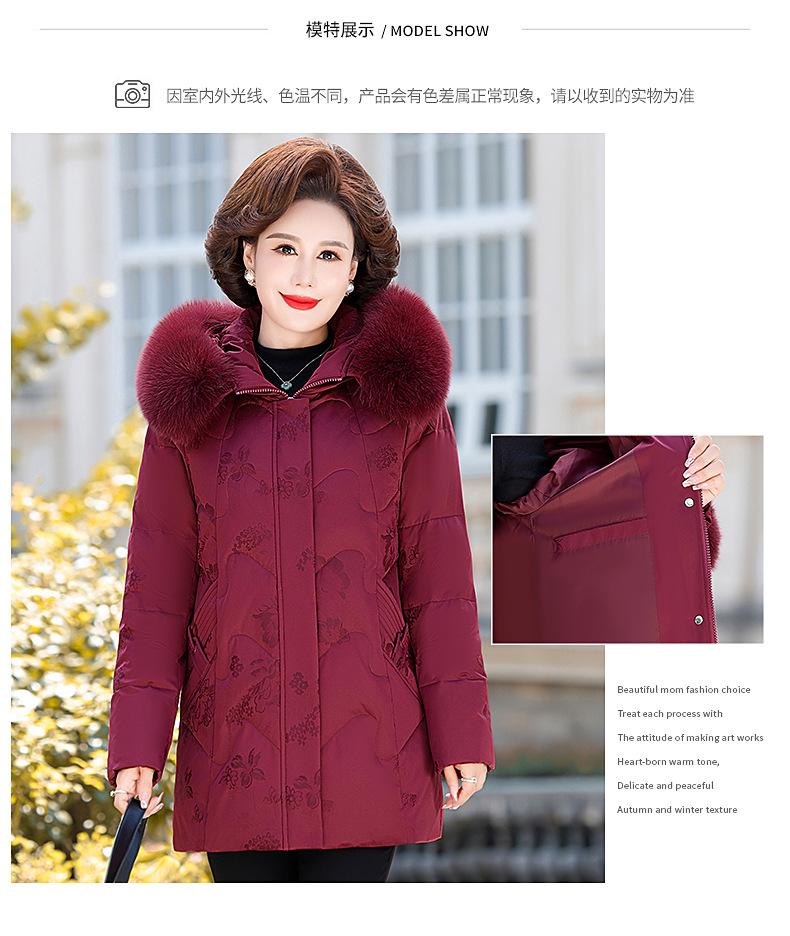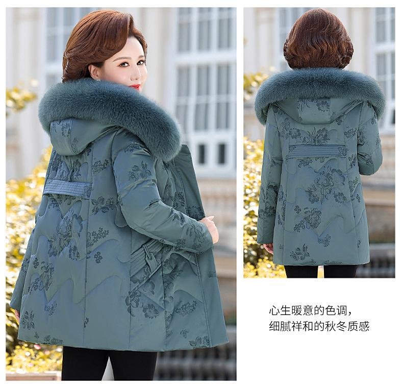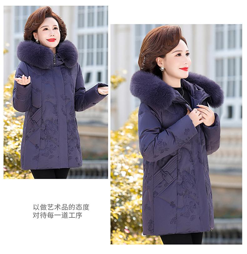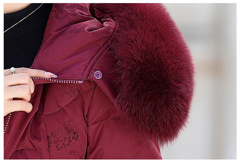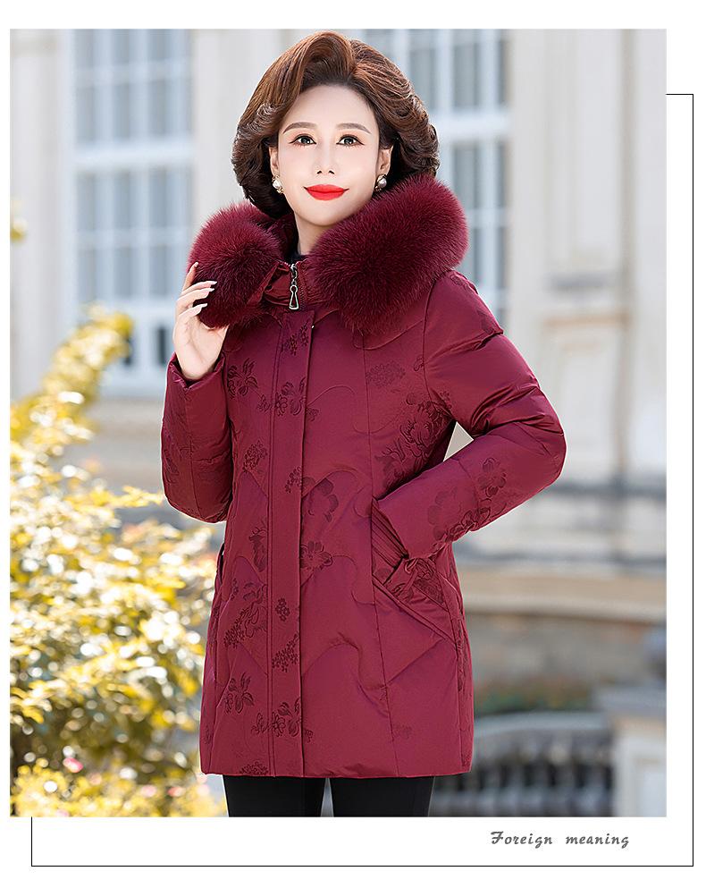 Invierno Chaqueta de Plumón para Mujeres de Mediana Edad y Mayores Abrigo para Madre de Mediana Edad Largo de Plumón de Pato Blanco Cuello de Lana de Zorro Abrigo para Mujeres de 60-70 Años