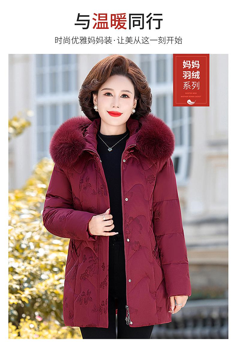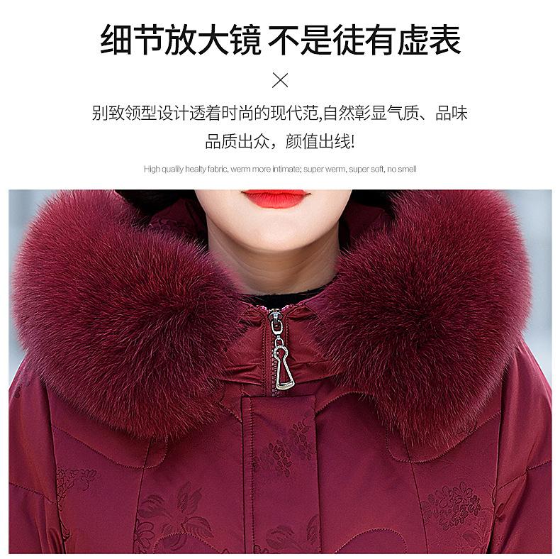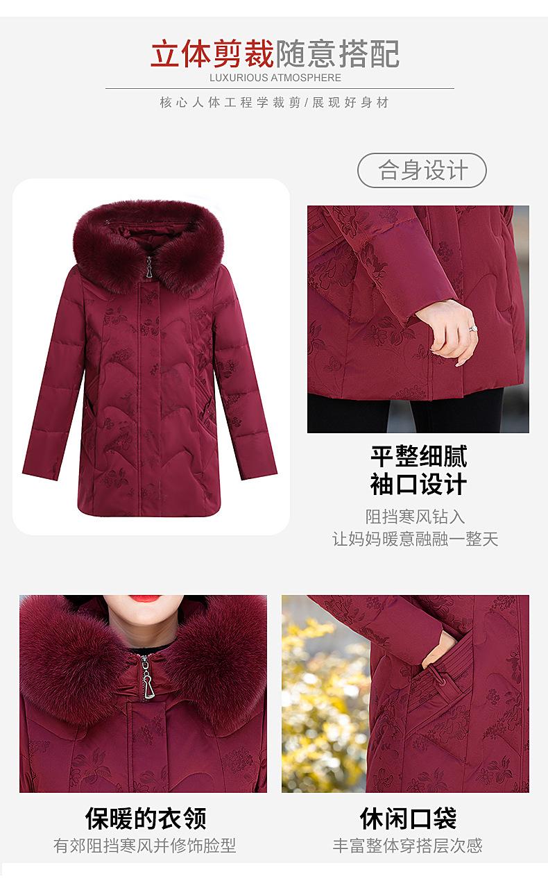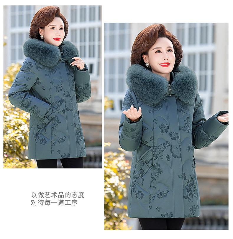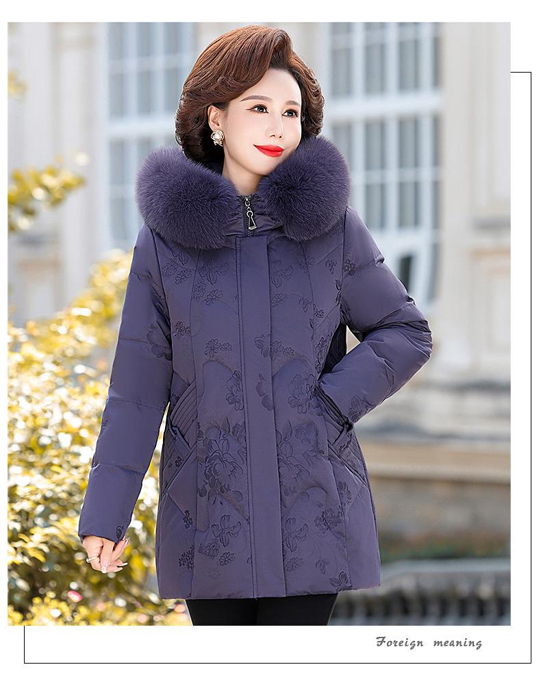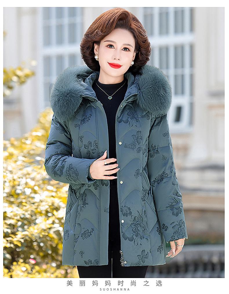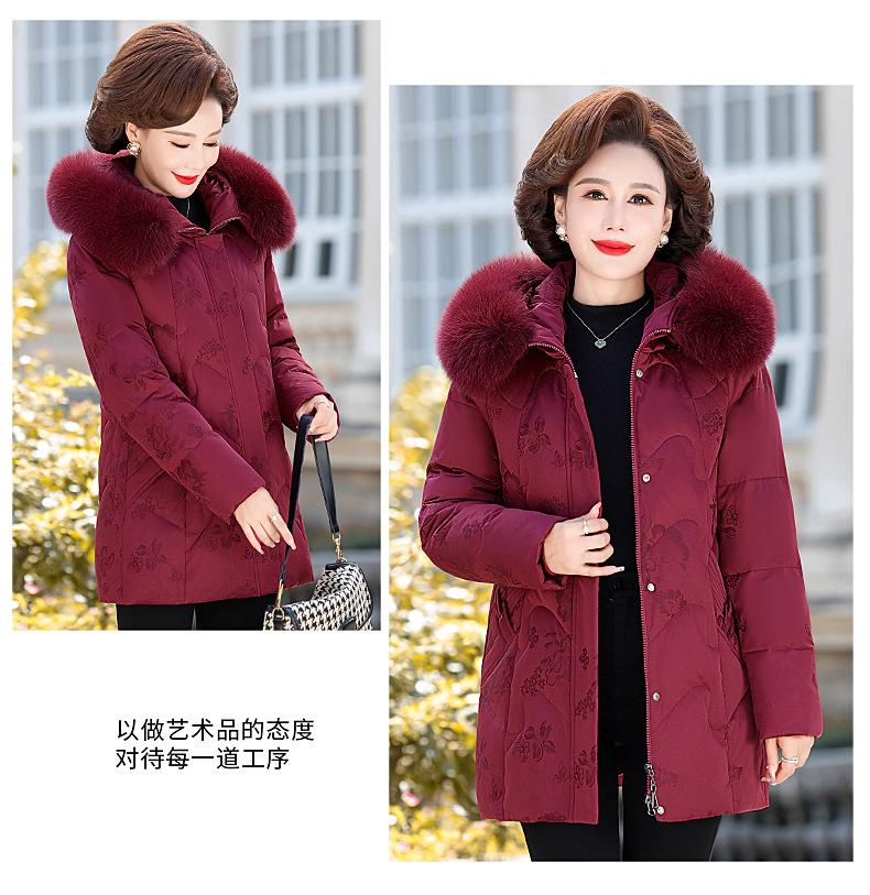 Invierno Chaqueta de Plumón para Mujeres de Mediana Edad y Mayores Abrigo para Madre de Mediana Edad Largo de Plumón de Pato Blanco Cuello de Lana de Zorro Abrigo para Mujeres de 60-70 Años