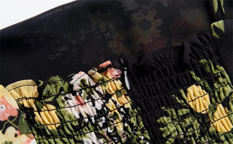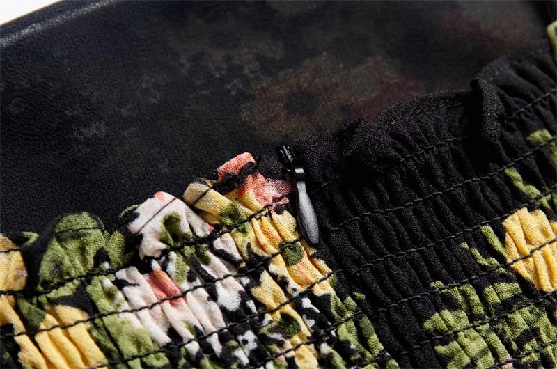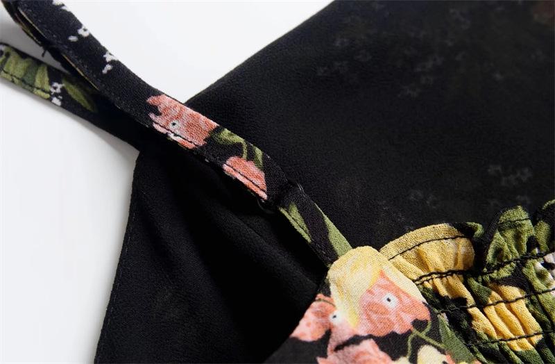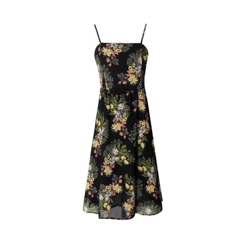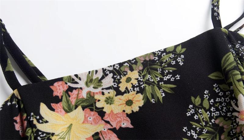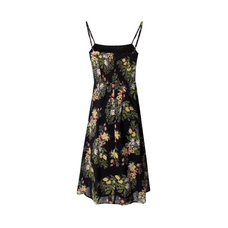 Vestido de verano estilo retro europeo y americano con tirantes, corte entallado, estampado grande, espalda descubierta, para vacaciones en la playa