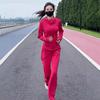 Traje deportivo casual popular de moda de este año, cárdigan rojo con cremallera de primavera, top de manga corta larga de dos piezas para mujer
