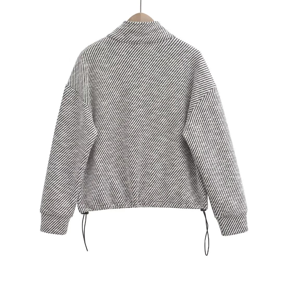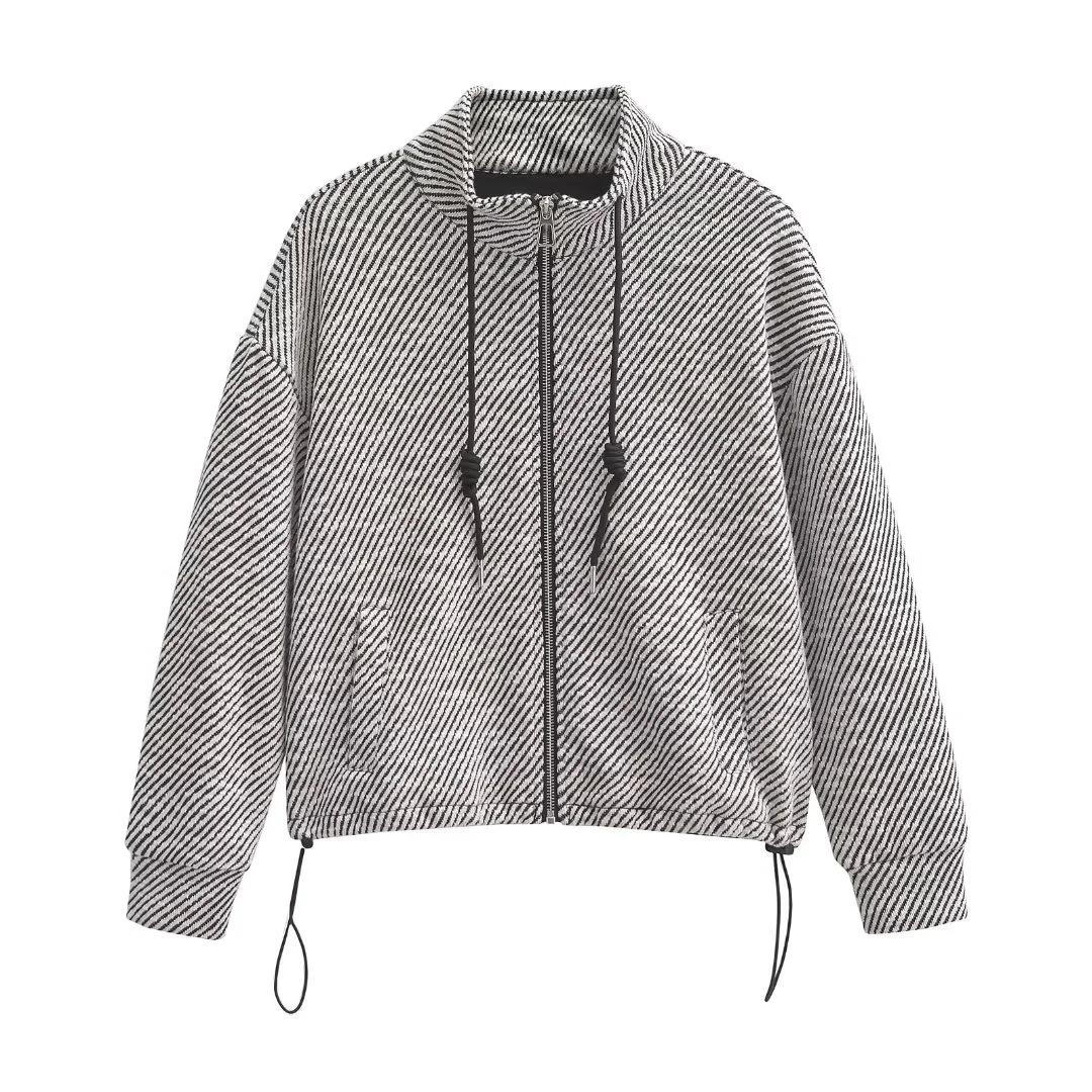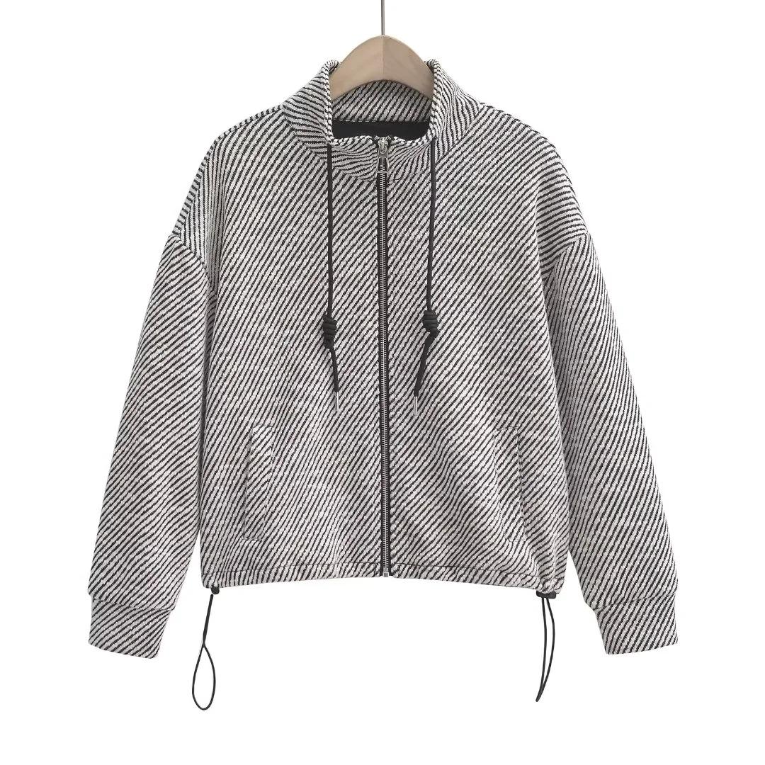 Chaqueta de rayas elegante y moderna de estilo europeo y americano para mujer, nueva chaqueta tipo cárdigan informal con cremallera y solapa que combina con todo para otoño e invierno.