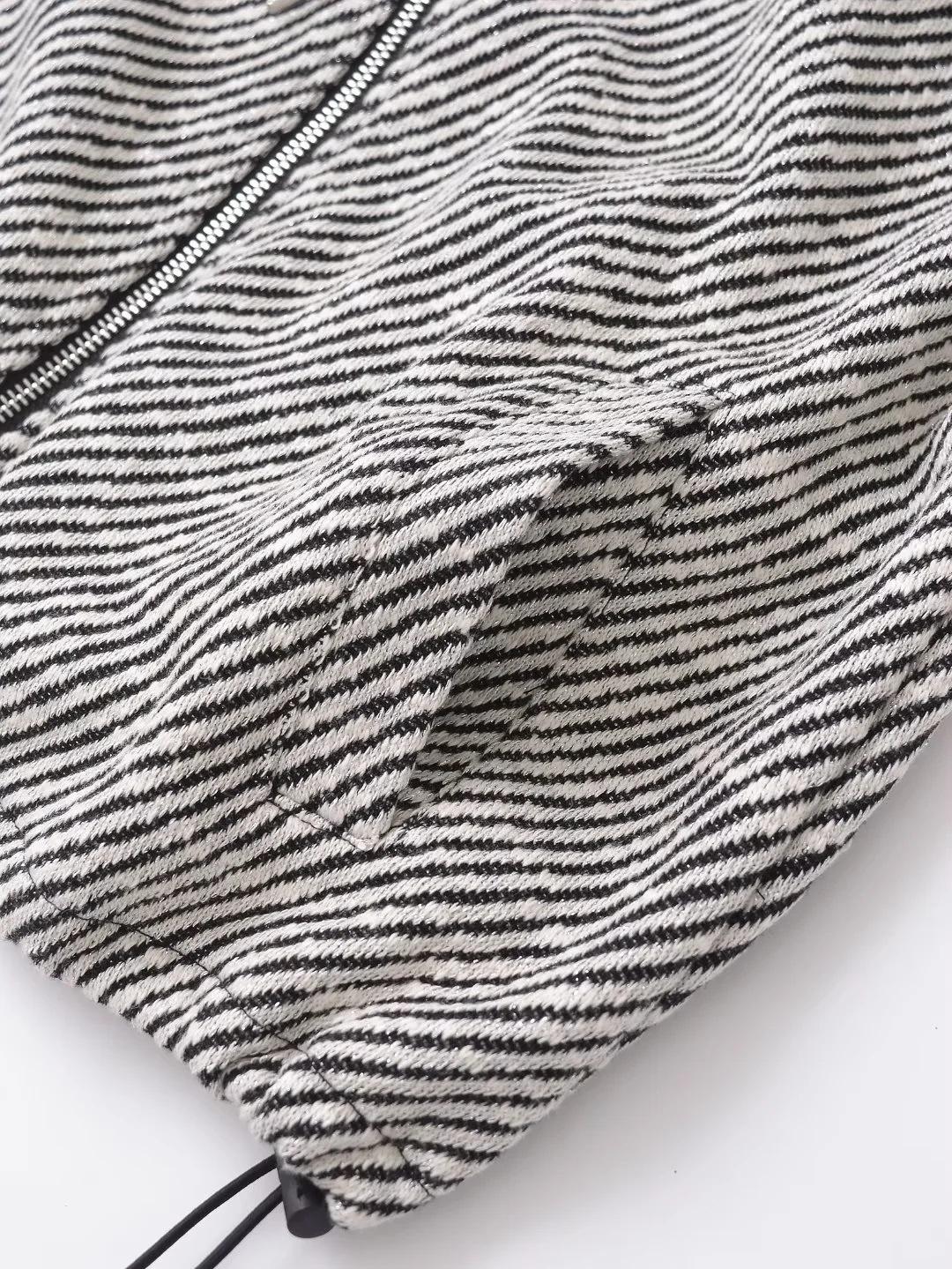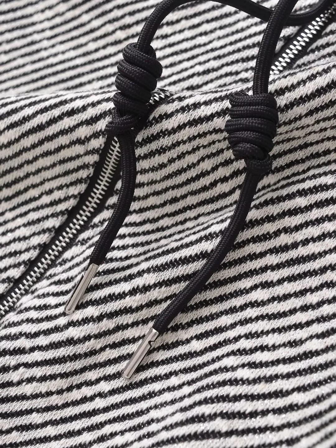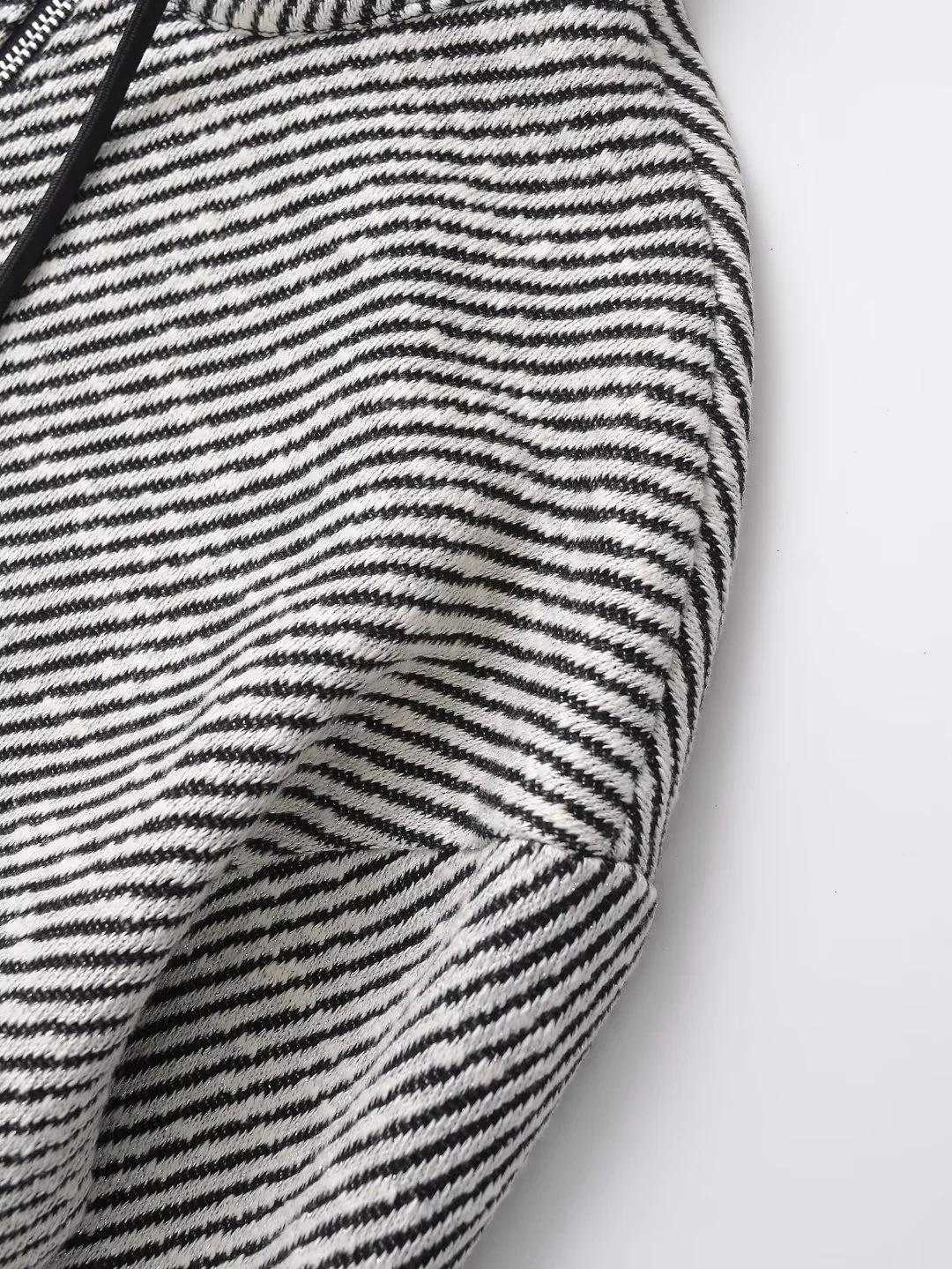 Chaqueta de rayas elegante y moderna de estilo europeo y americano para mujer, nueva chaqueta tipo cárdigan informal con cremallera y solapa que combina con todo para otoño e invierno.