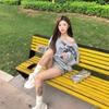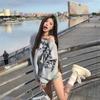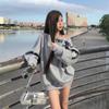 Suéter gris con estampado de letras de chica sexy estilo americano para mujer, diseño de principios de otoño, top holgado informal de gran tamaño con hombros descubiertos