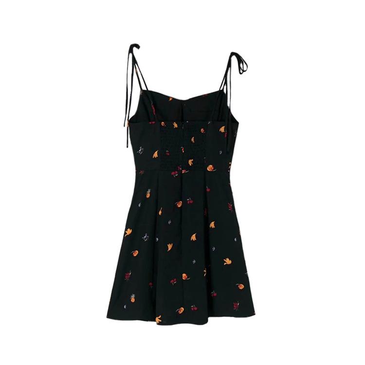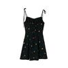 Vestido vintage ajustado de tirantes para vacaciones en la playa, estilo francés, estampado fresco y dulce, minifalda de corte A para verano.