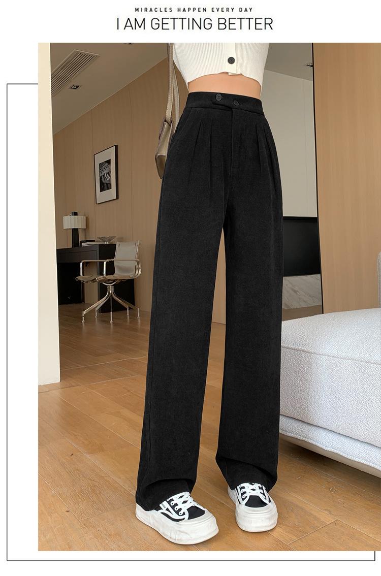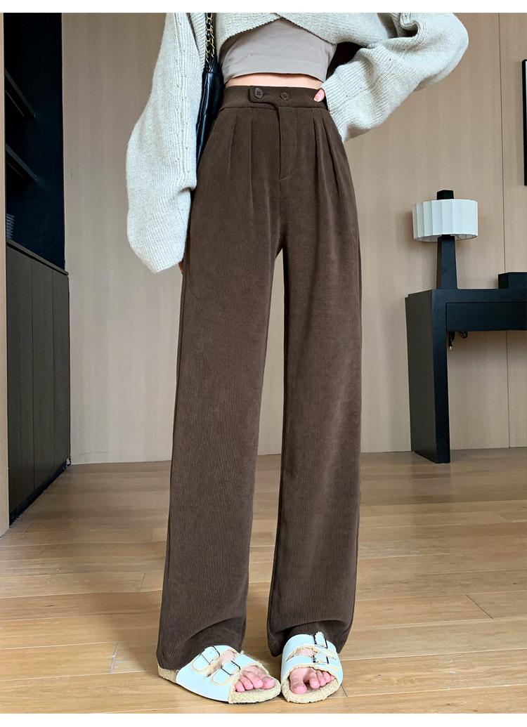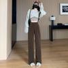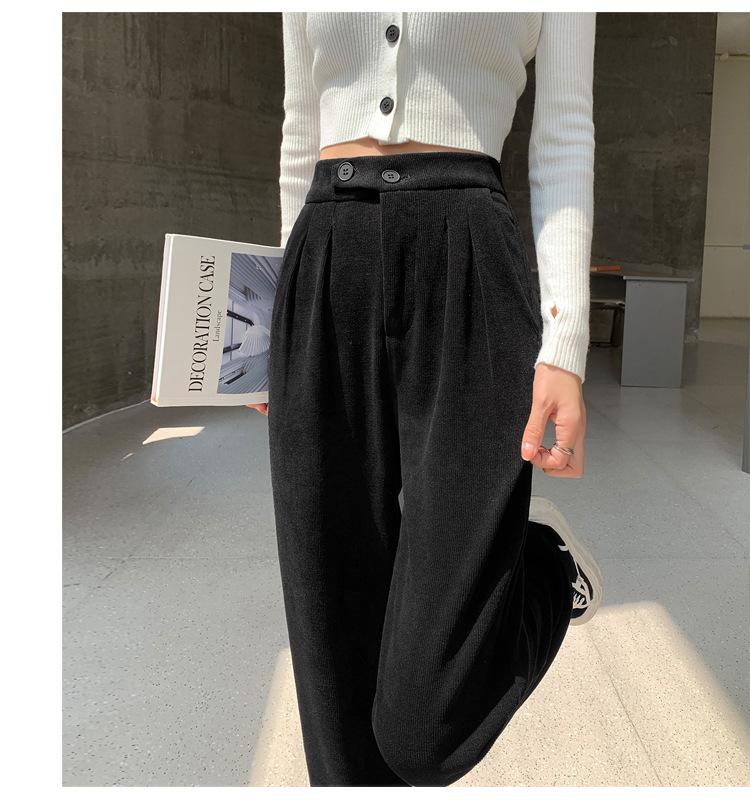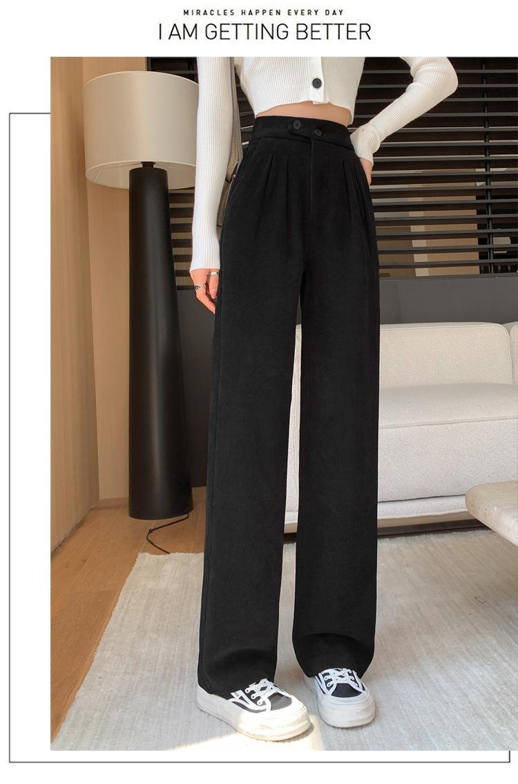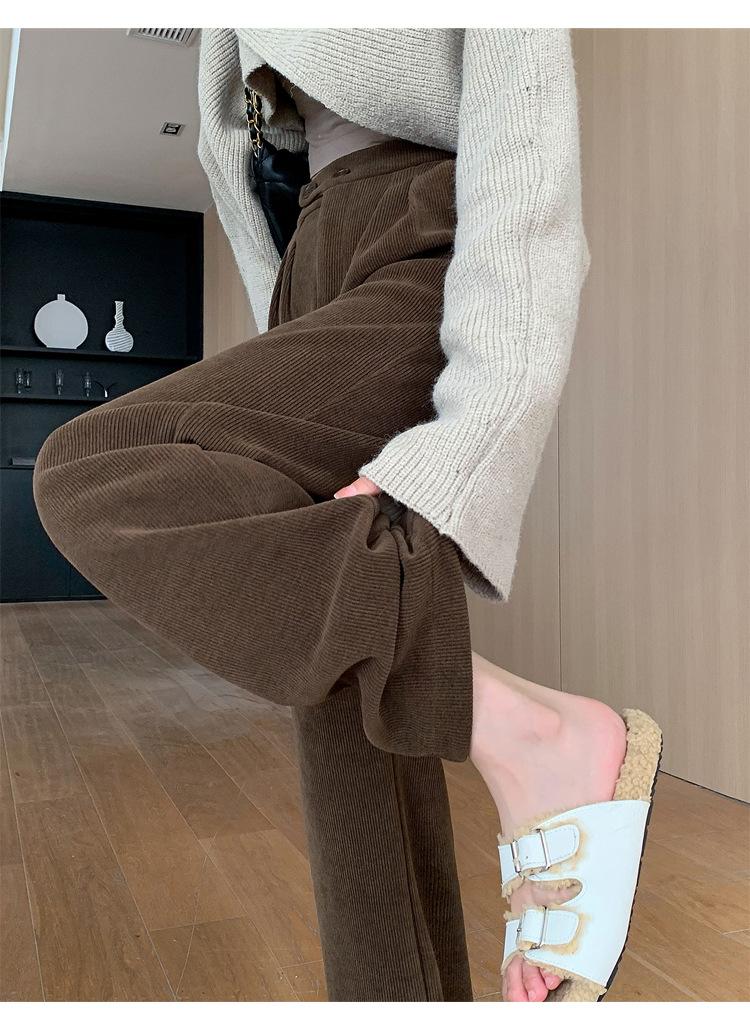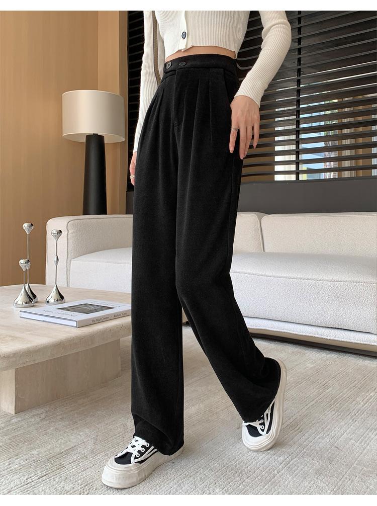 Pantalones anchos para mujer, novedad de invierno 2024, de algodón europeo, terciopelo, cintura alta, ajustados, forrados de polar, pantalones casuales pequeños y rectos.