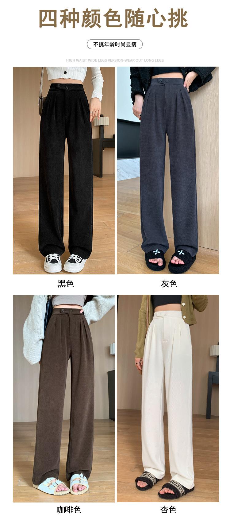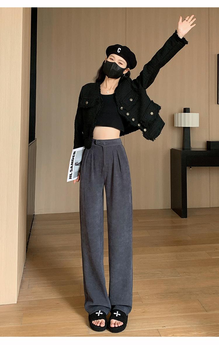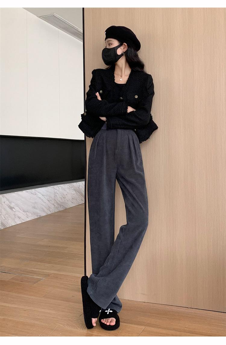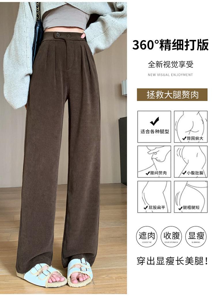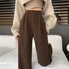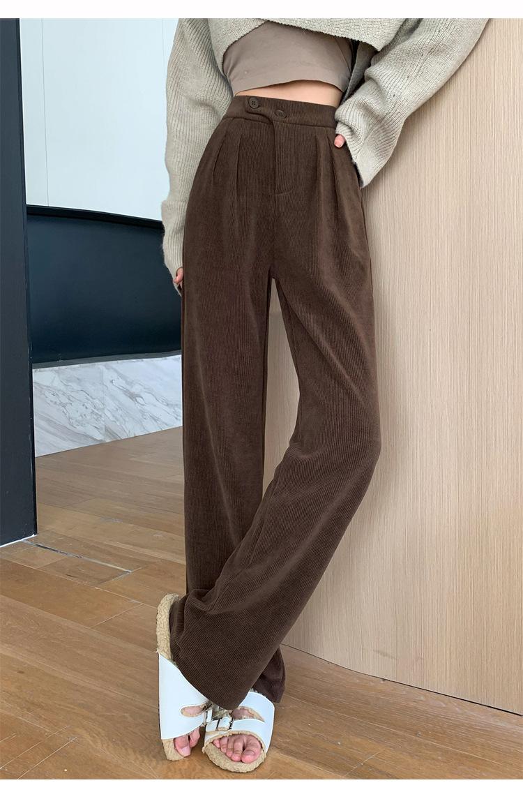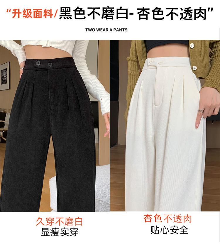 Pantalones anchos para mujer, novedad de invierno 2024, de algodón europeo, terciopelo, cintura alta, ajustados, forrados de polar, pantalones casuales pequeños y rectos.