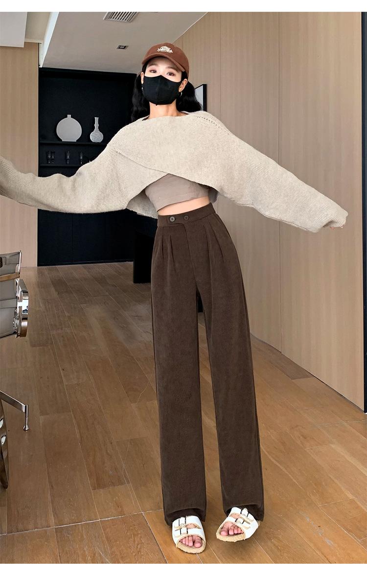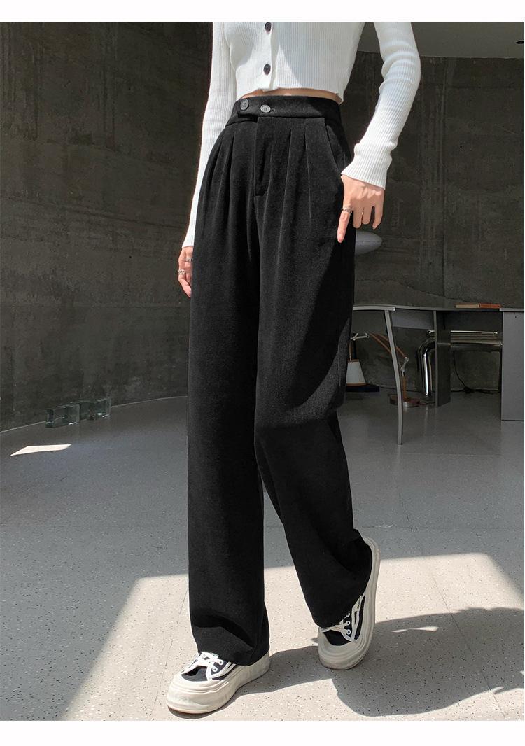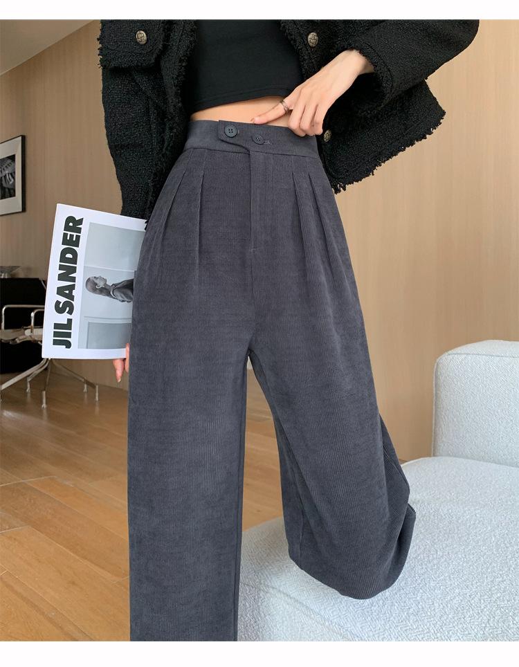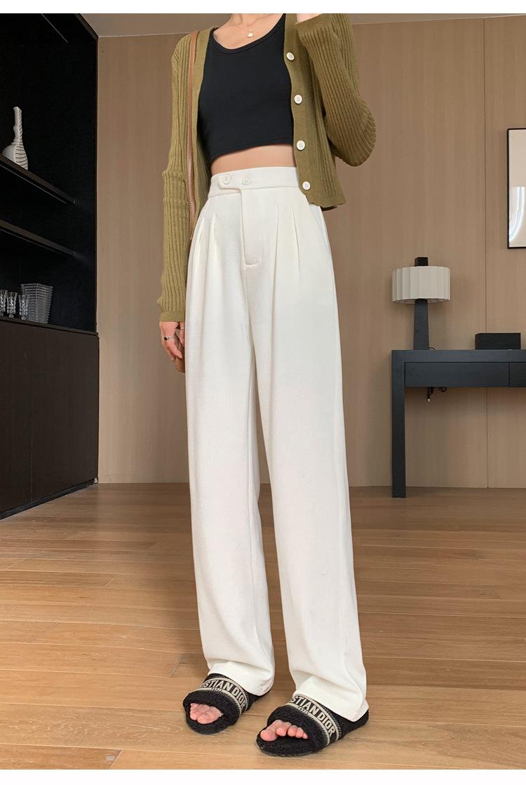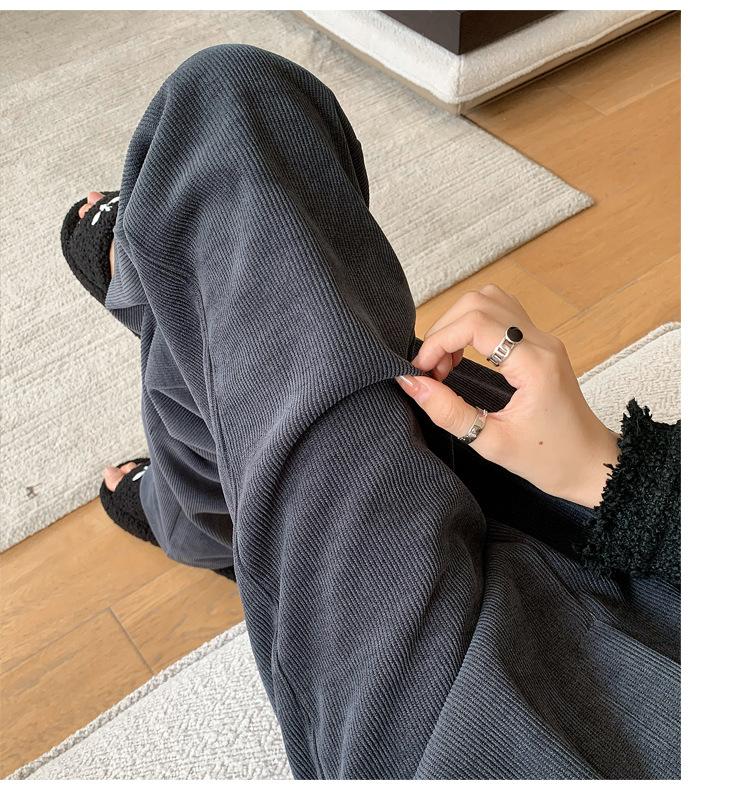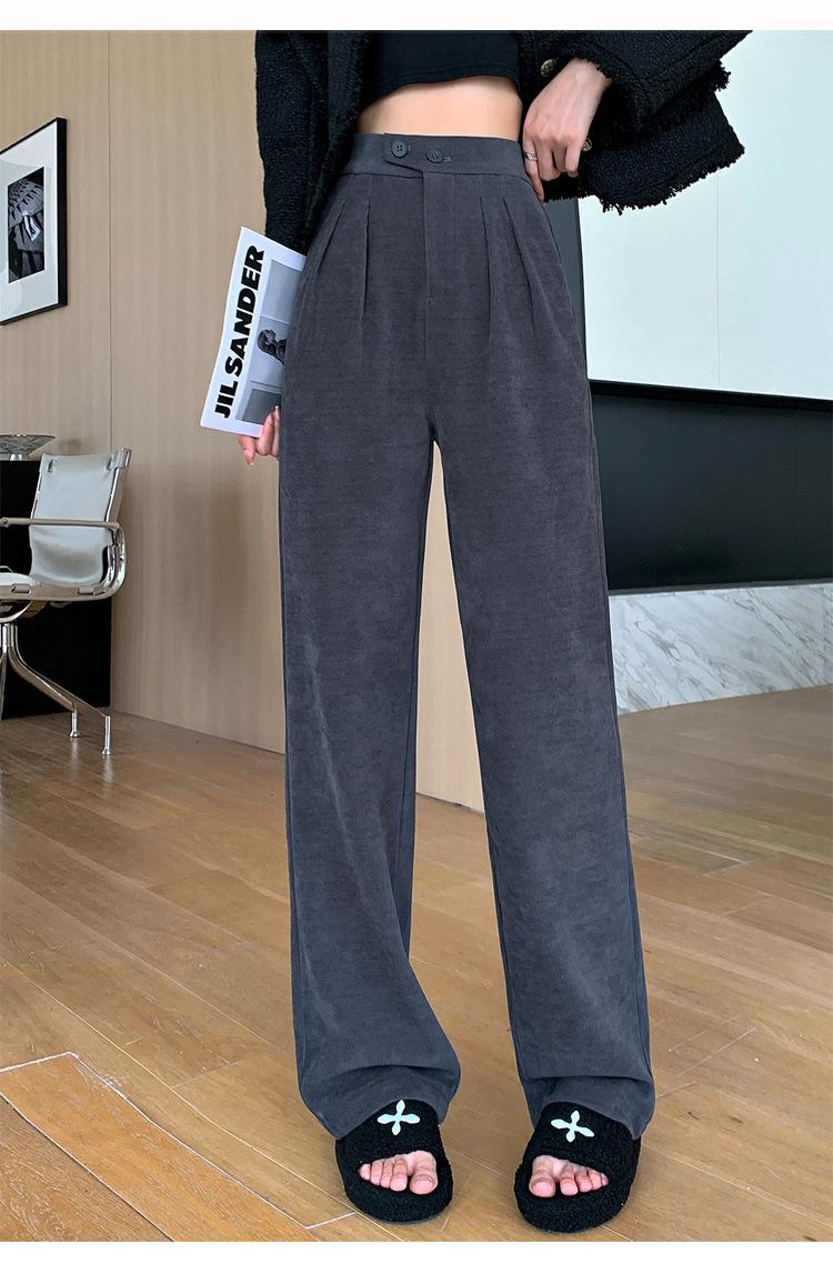 Pantalones anchos para mujer, novedad de invierno 2024, de algodón europeo, terciopelo, cintura alta, ajustados, forrados de polar, pantalones casuales pequeños y rectos.