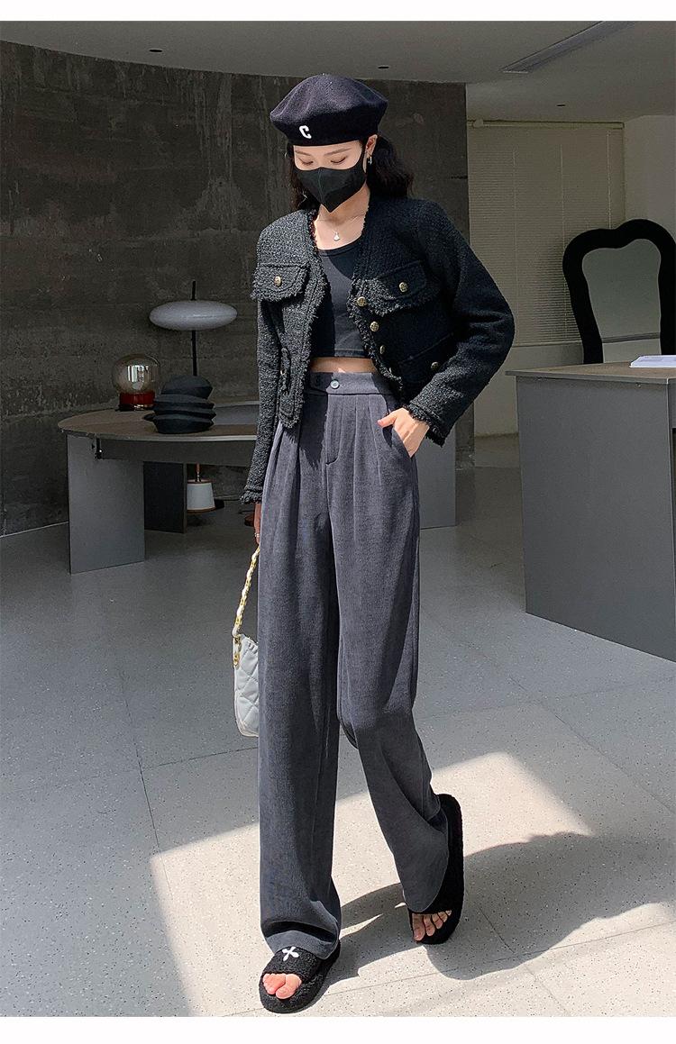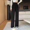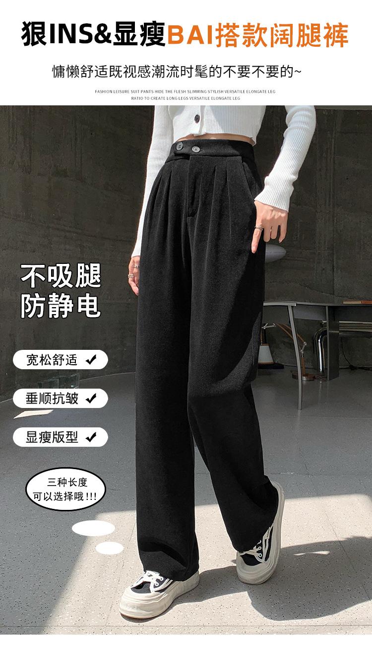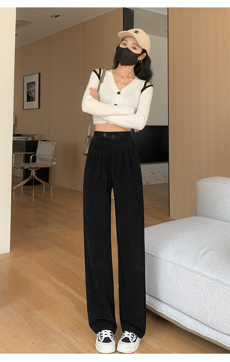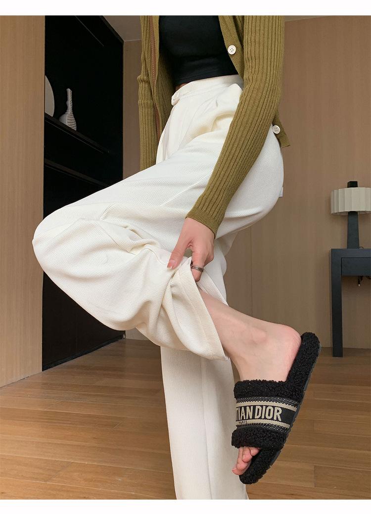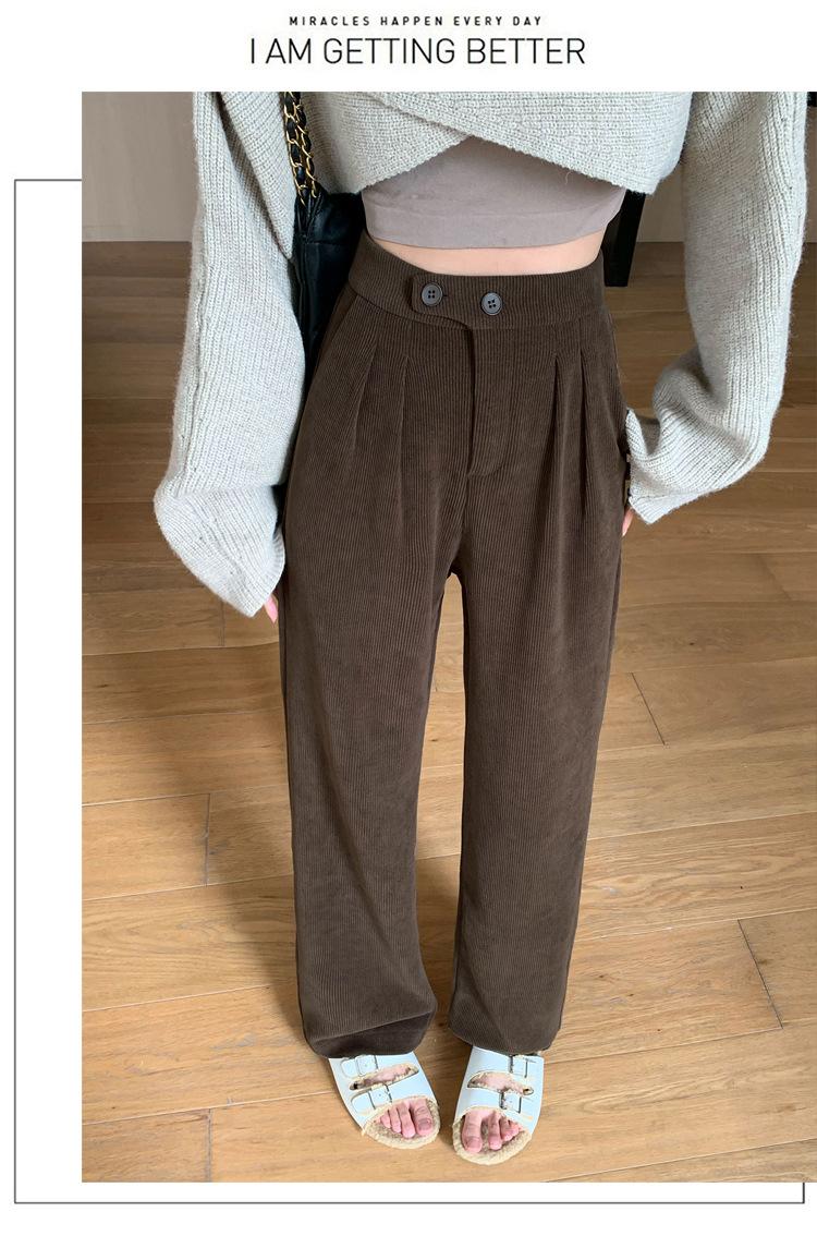 Pantalones anchos para mujer, novedad de invierno 2024, de algodón europeo, terciopelo, cintura alta, ajustados, forrados de polar, pantalones casuales pequeños y rectos.