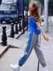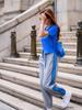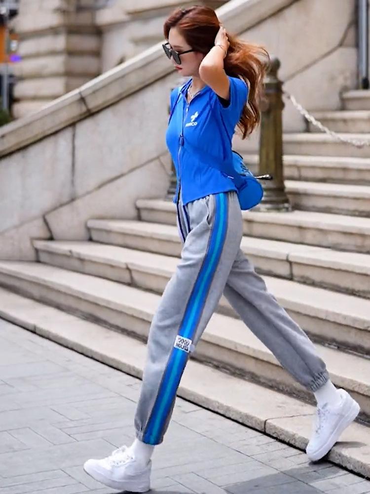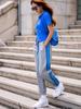 Cárdigan Azul Suéter Corto con Capucha Chaqueta para Mujer Verano Casual Deportivo Suéter de Manga Corta Traje de Dos Piezas a la Moda