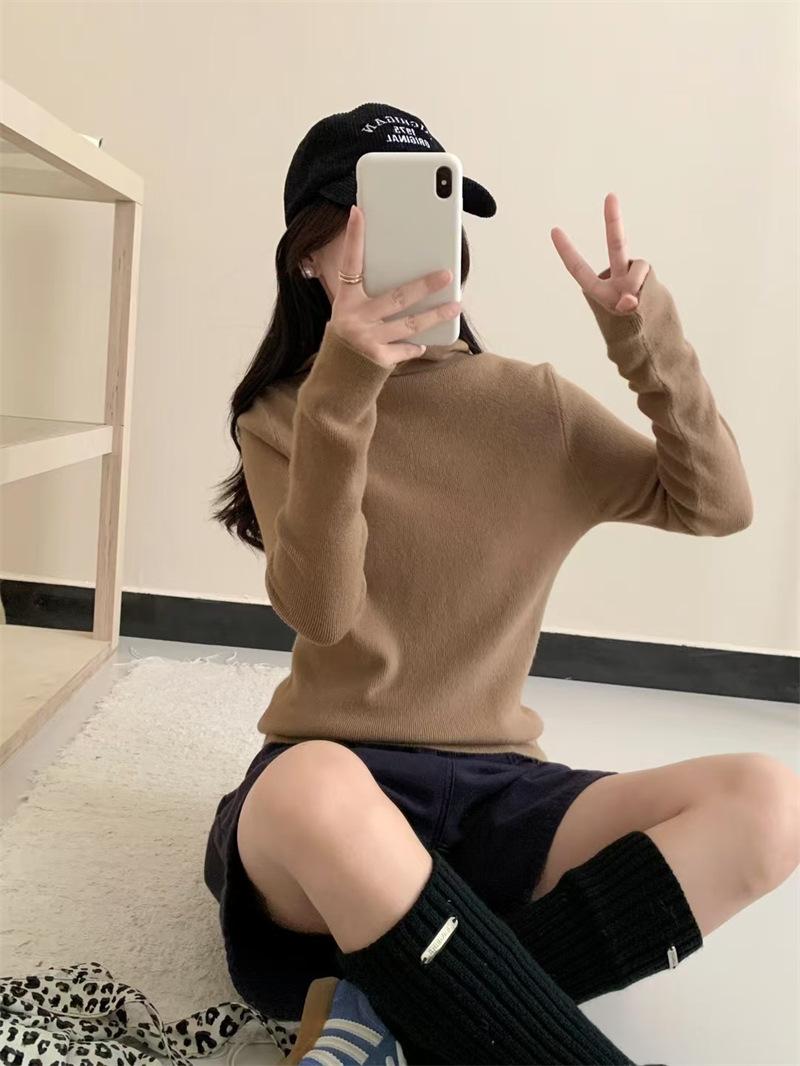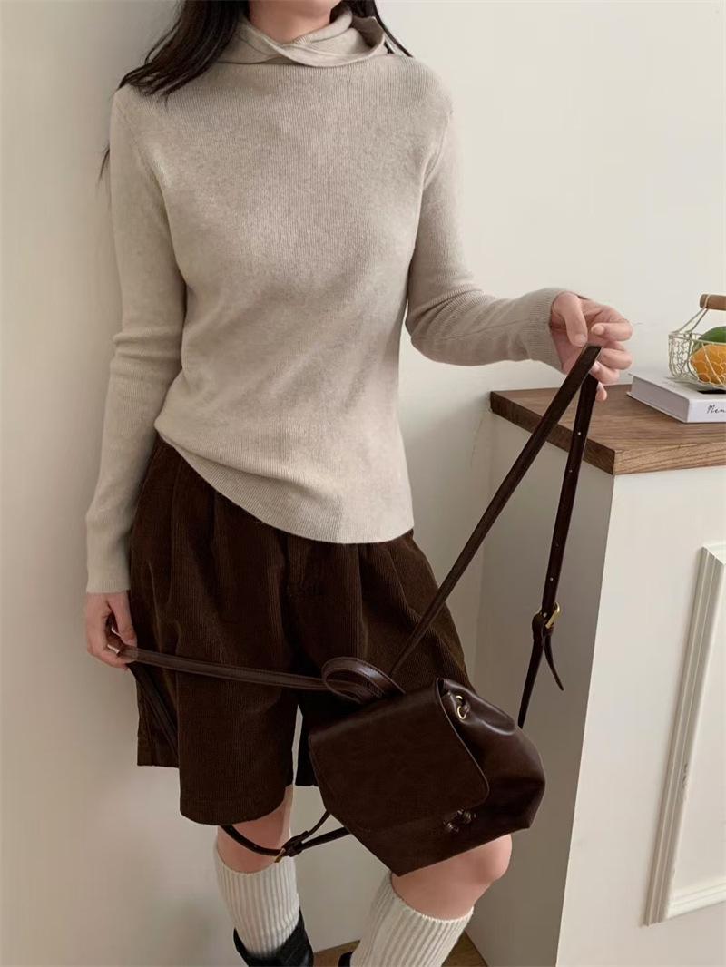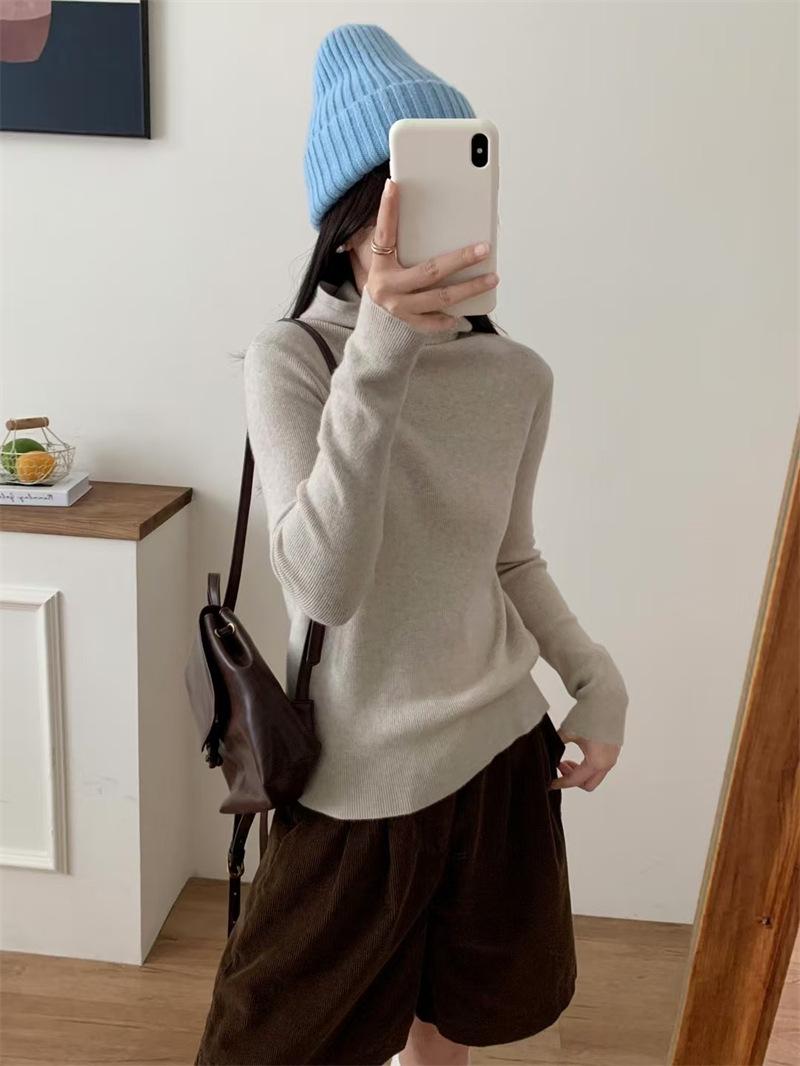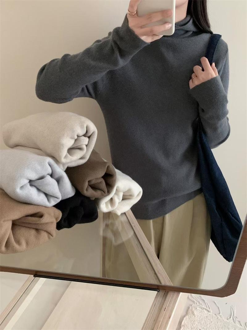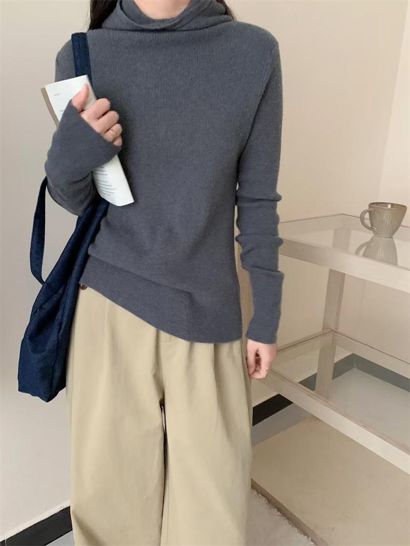 Camisa de punto con capucha informal de Design Sense para mujer, otoño e invierno, nuevo estilo perezoso, suéter interior adelgazante de estilo occidental a la moda.