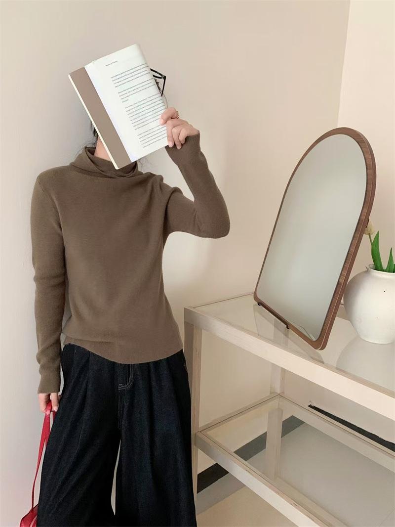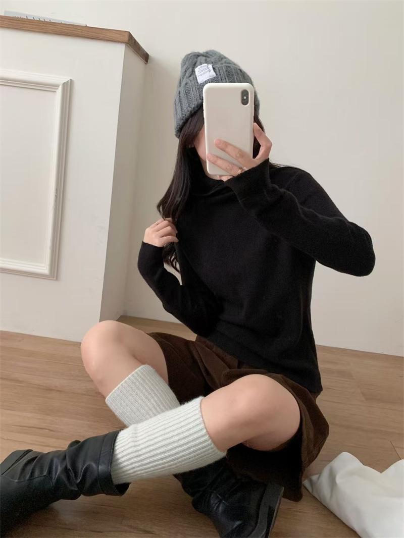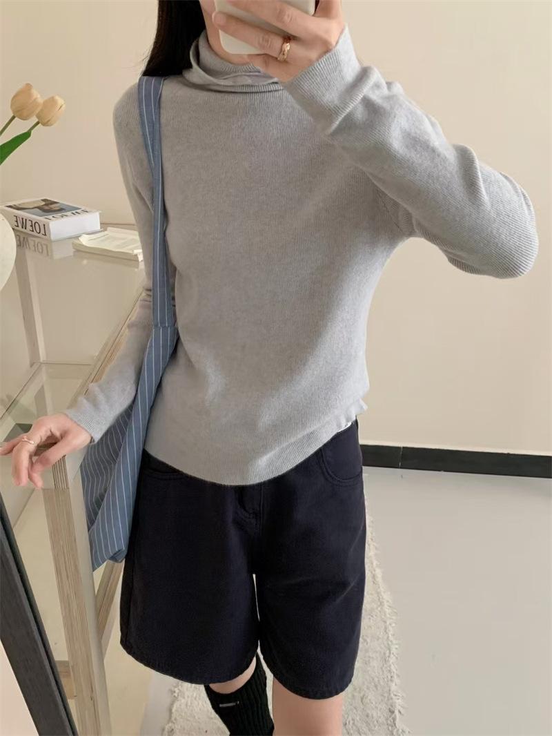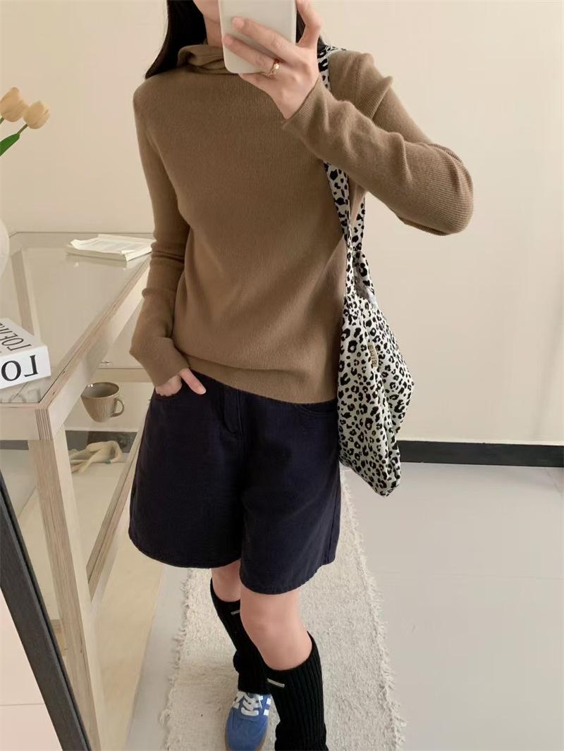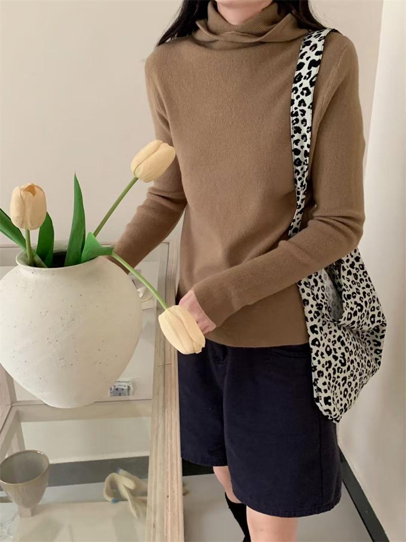 Camisa de punto con capucha informal de Design Sense para mujer, otoño e invierno, nuevo estilo perezoso, suéter interior adelgazante de estilo occidental a la moda.
