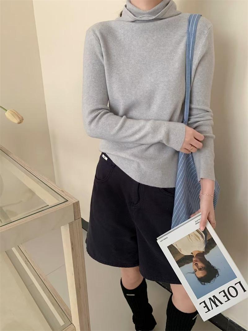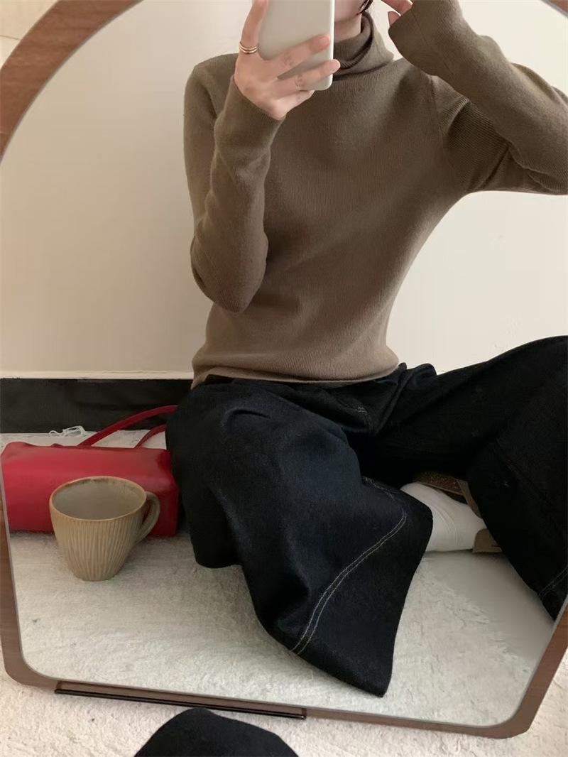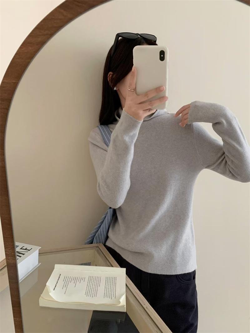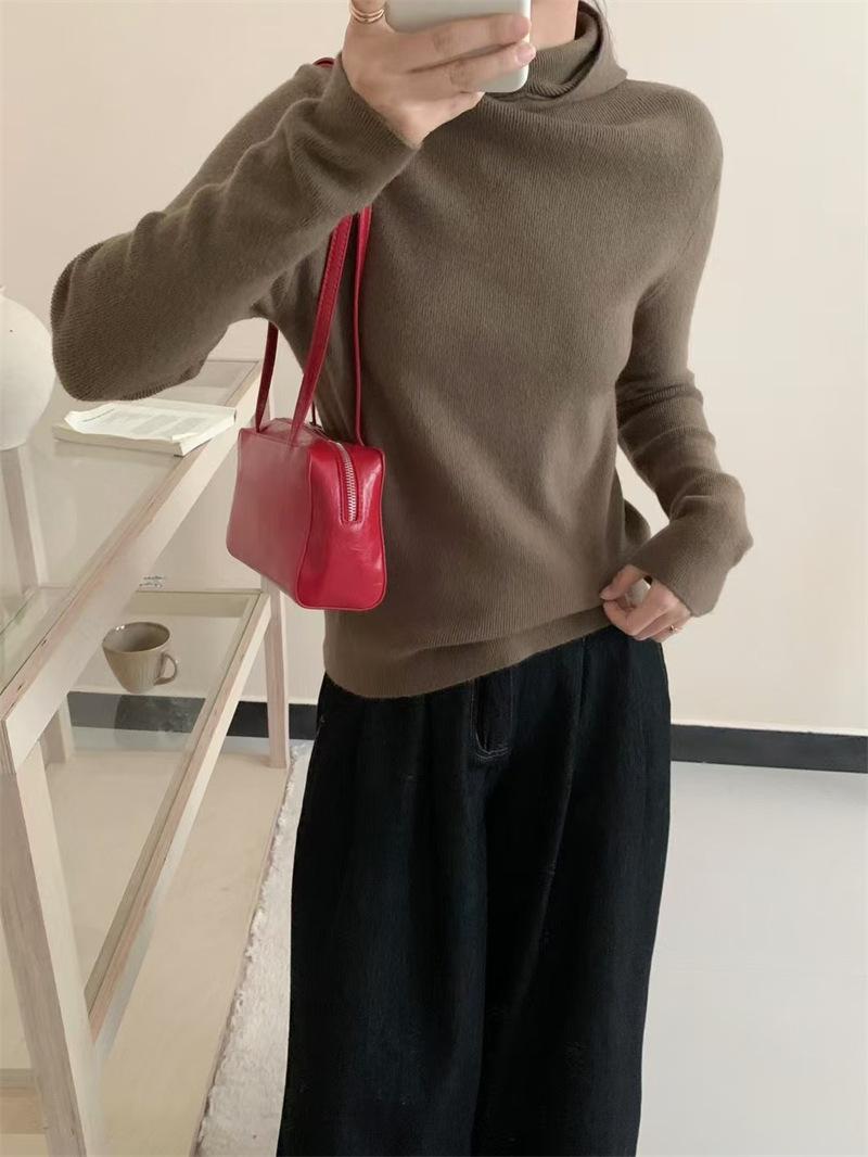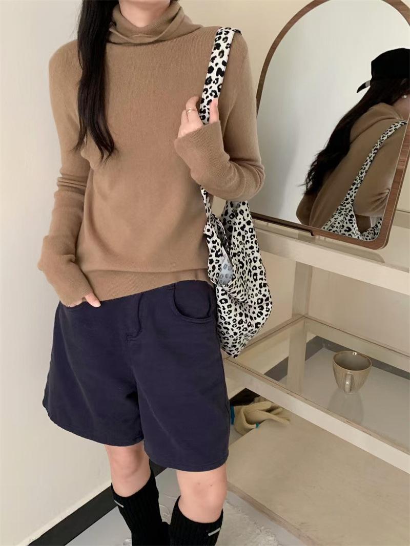 Camisa de punto con capucha informal de Design Sense para mujer, otoño e invierno, nuevo estilo perezoso, suéter interior adelgazante de estilo occidental a la moda.