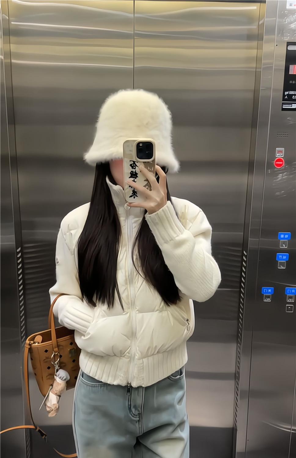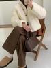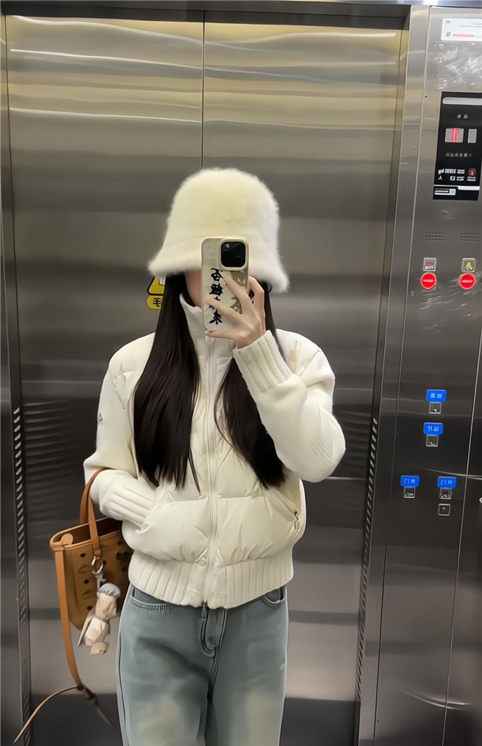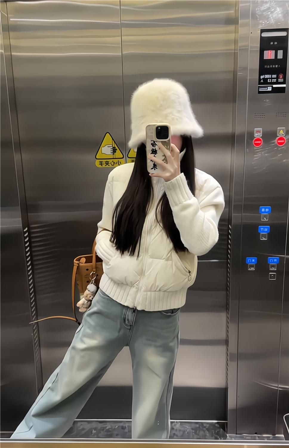 Abrigo de Algodón Tejido con Empalme de Bocanada de Crema para Mujer Primavera 2025 Nuevo Diseño de Estilo Coreano Chaqueta Cálida de Alta Gama
