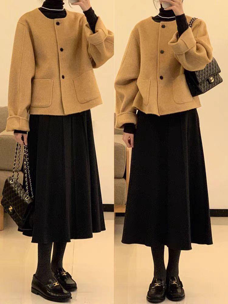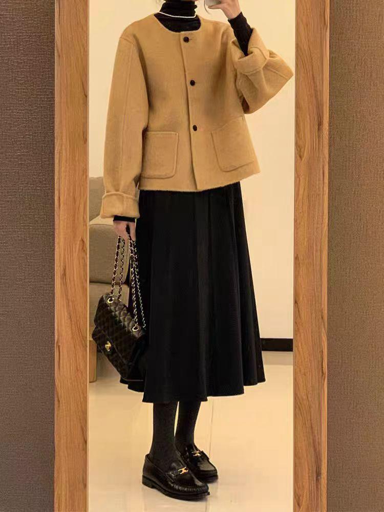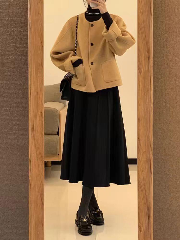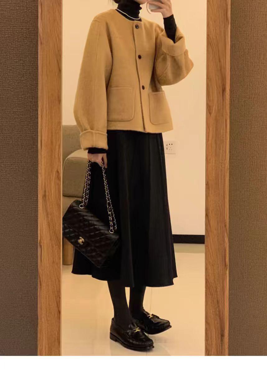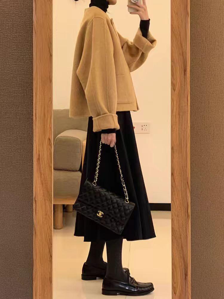 Falda de traje de talla grande para mujer Otoño/Invierno 2024 Nueva falda gordita plisada de cintura alta que adelgaza la cadera con forma de A Falda larga de moda