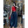Pantalones vaqueros retro de pierna ancha en azul tanino para mujer, otoño 2024, nuevos pantalones holgados de cintura alta.