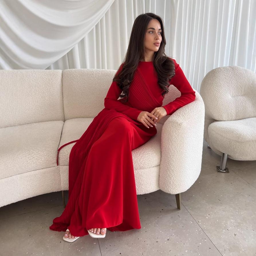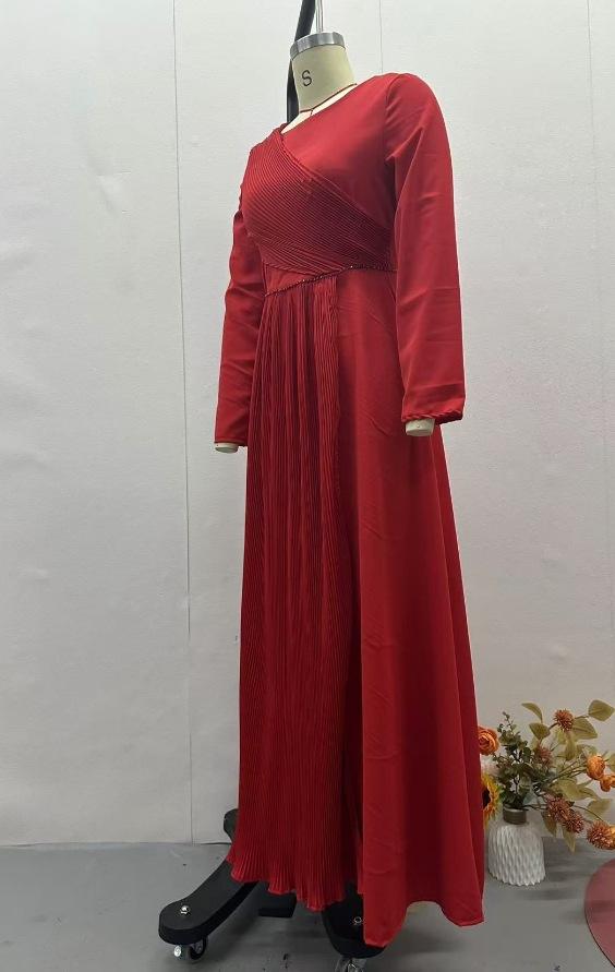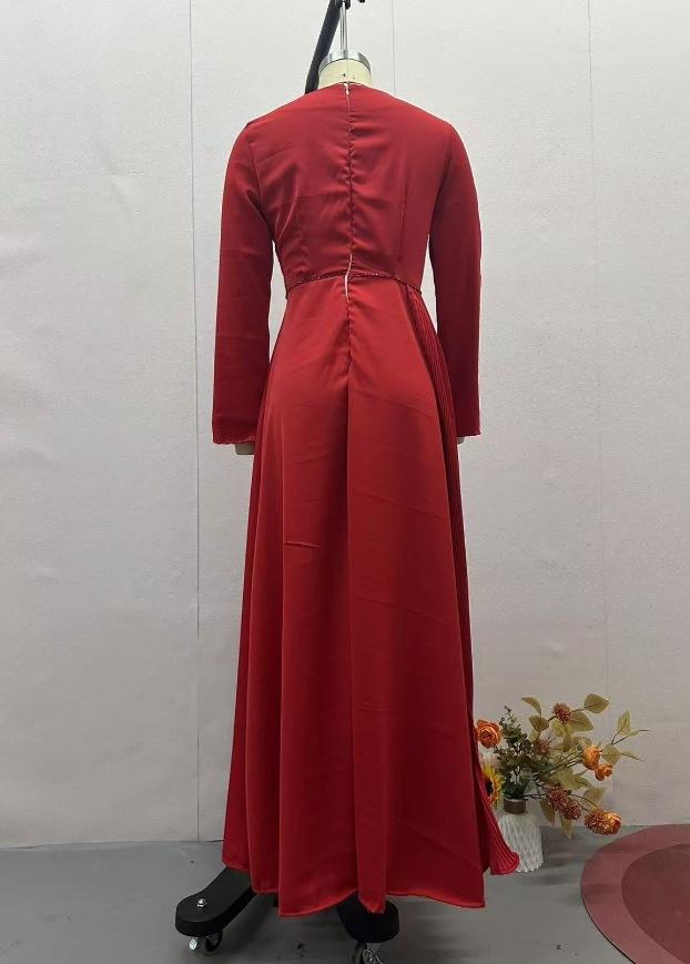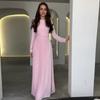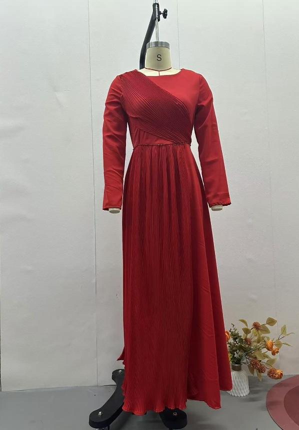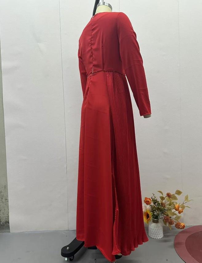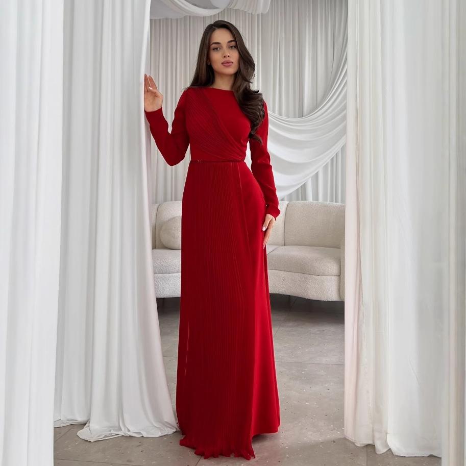 Otoño 2024 Nuevo Europeo y Americano Transfronterizo Amazon Transfronterizo Vestido de Manga Larga con Cuello Redondo de Color Sólido para Mujer con Costuras en la Cintura Alta