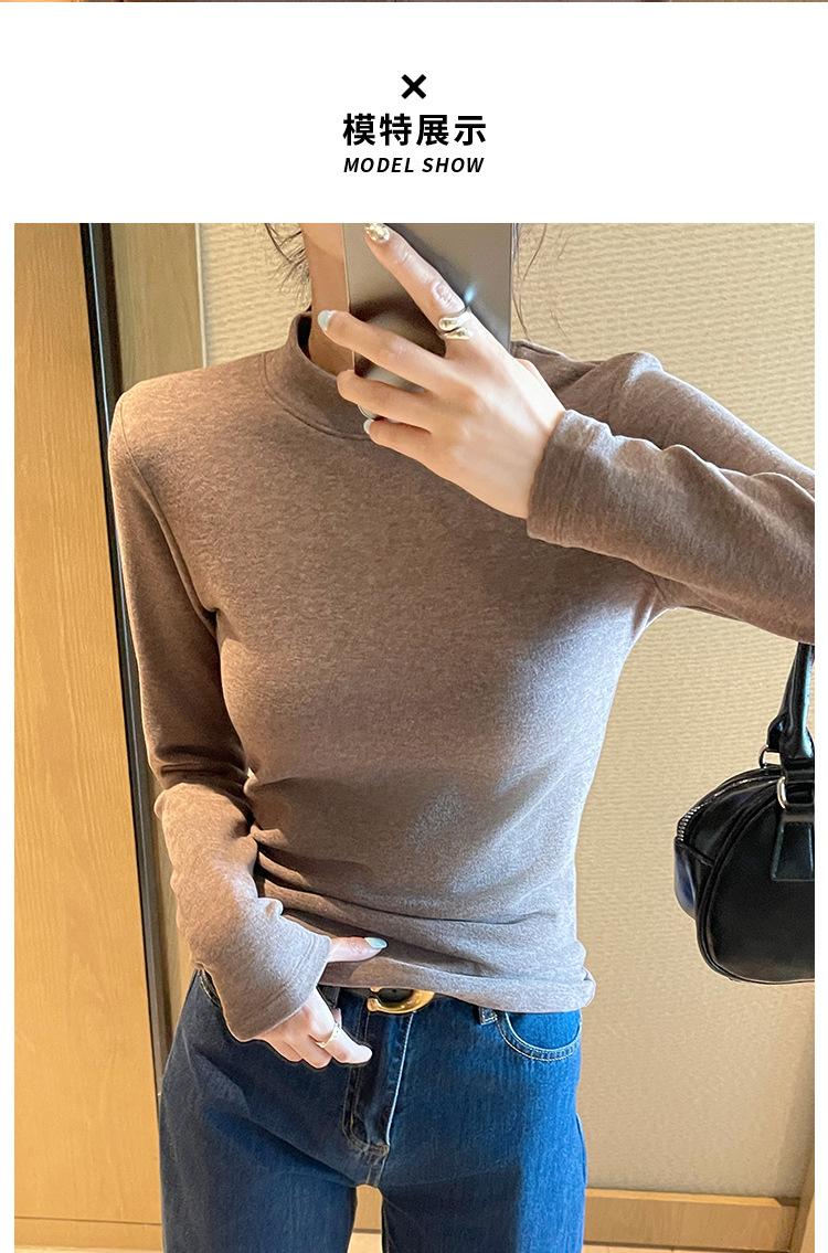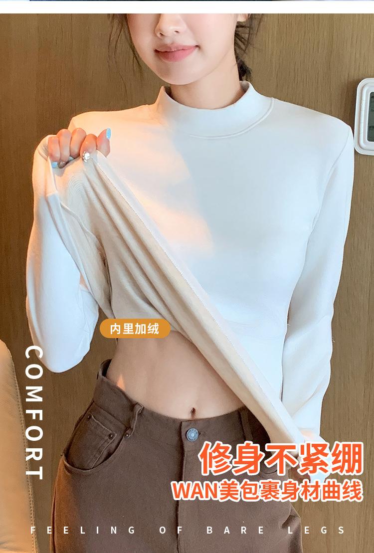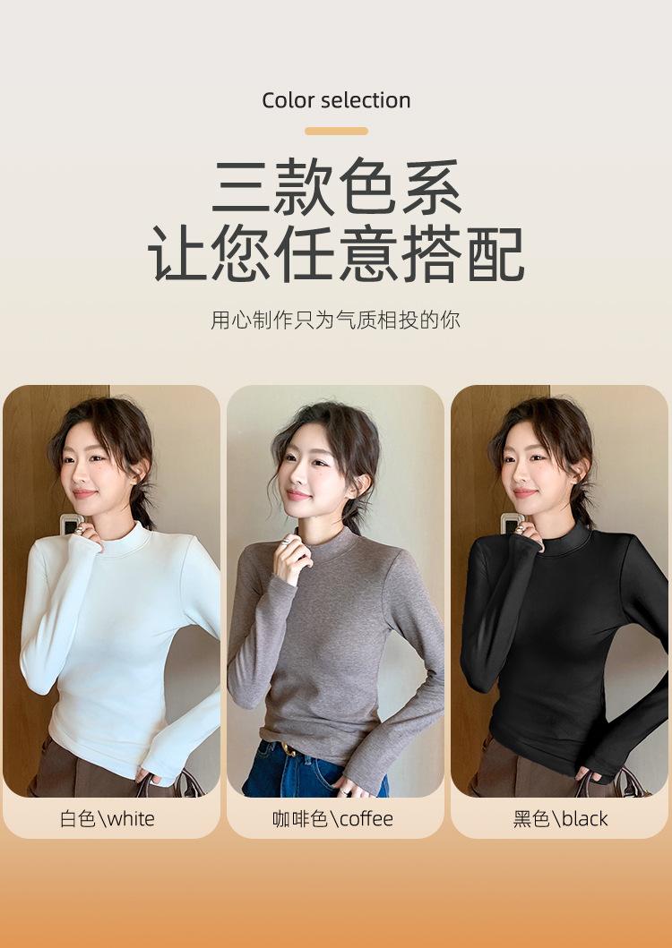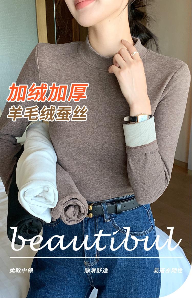 Camiseta Interior de Seda Cachemira para Mujer Cuello Medio Otoño e Invierno Forrada de Vellón Engrosada Terciopelo Alemán Cepillado a Doble Cara Versátil Top Cálido
