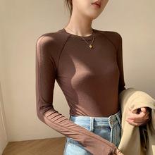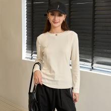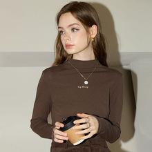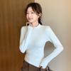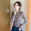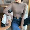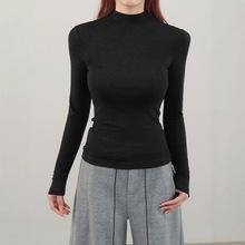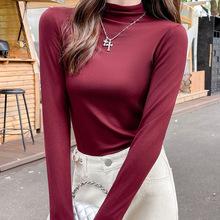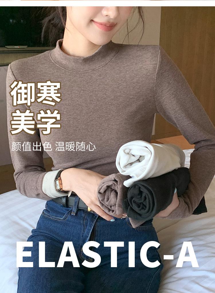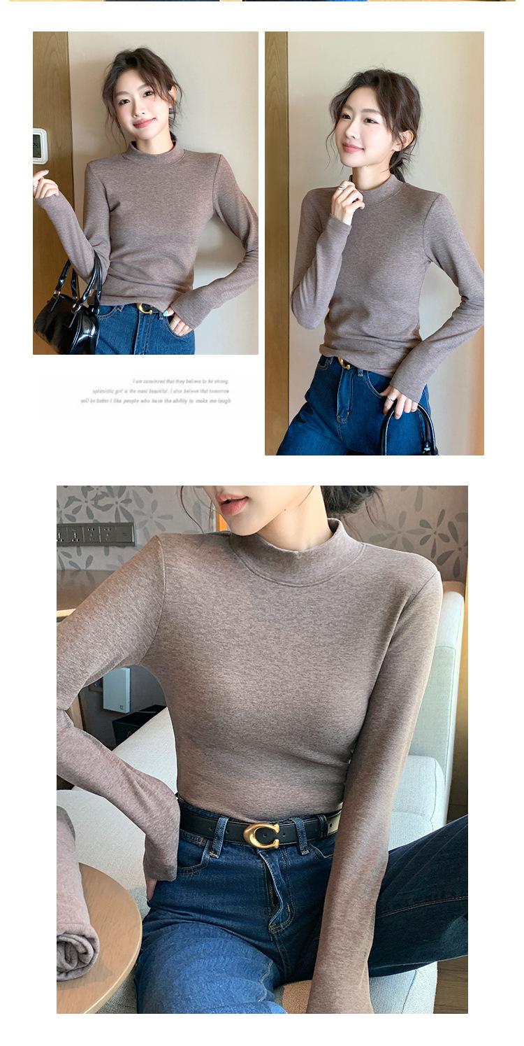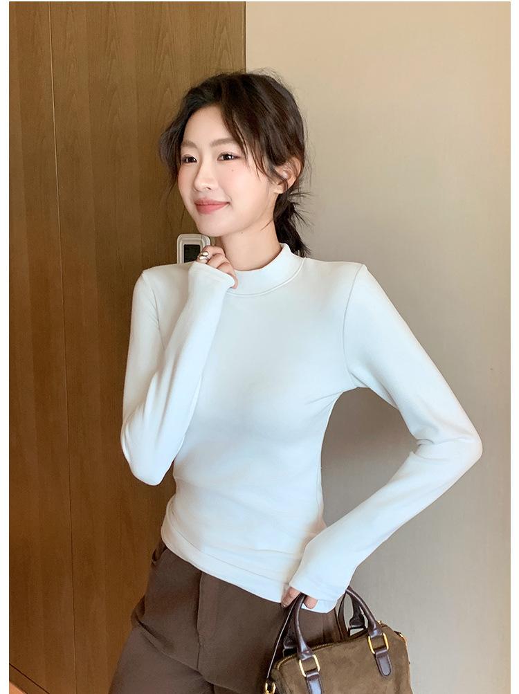 Camiseta Interior de Seda Cachemira para Mujer Cuello Medio Otoño e Invierno Forrada de Vellón Engrosada Terciopelo Alemán Cepillado a Doble Cara Versátil Top Cálido