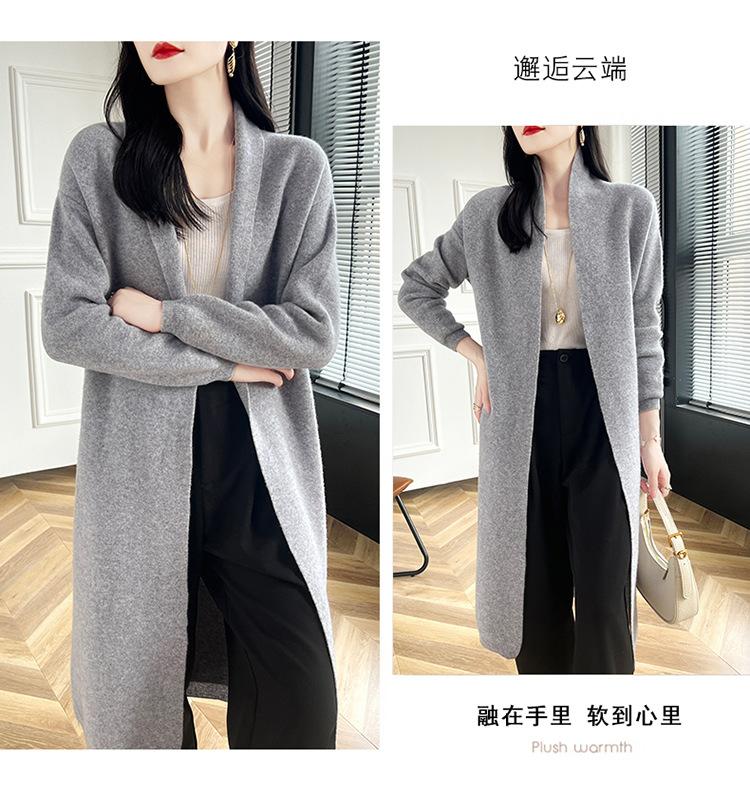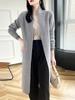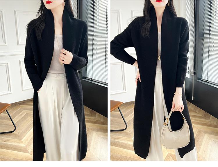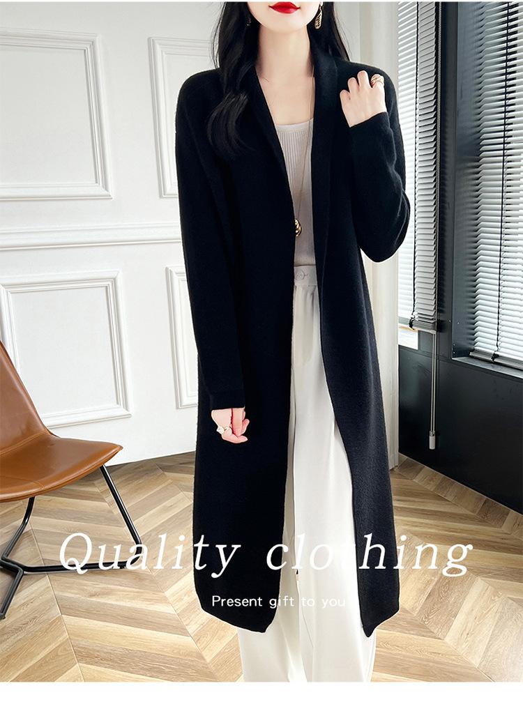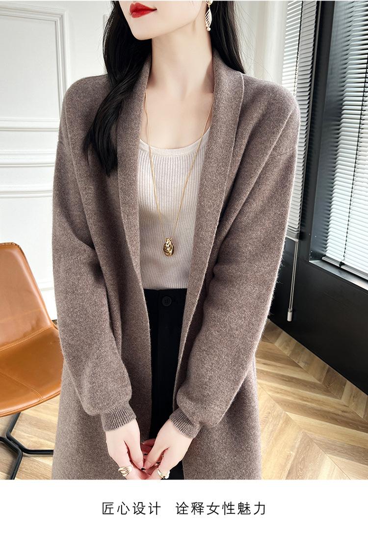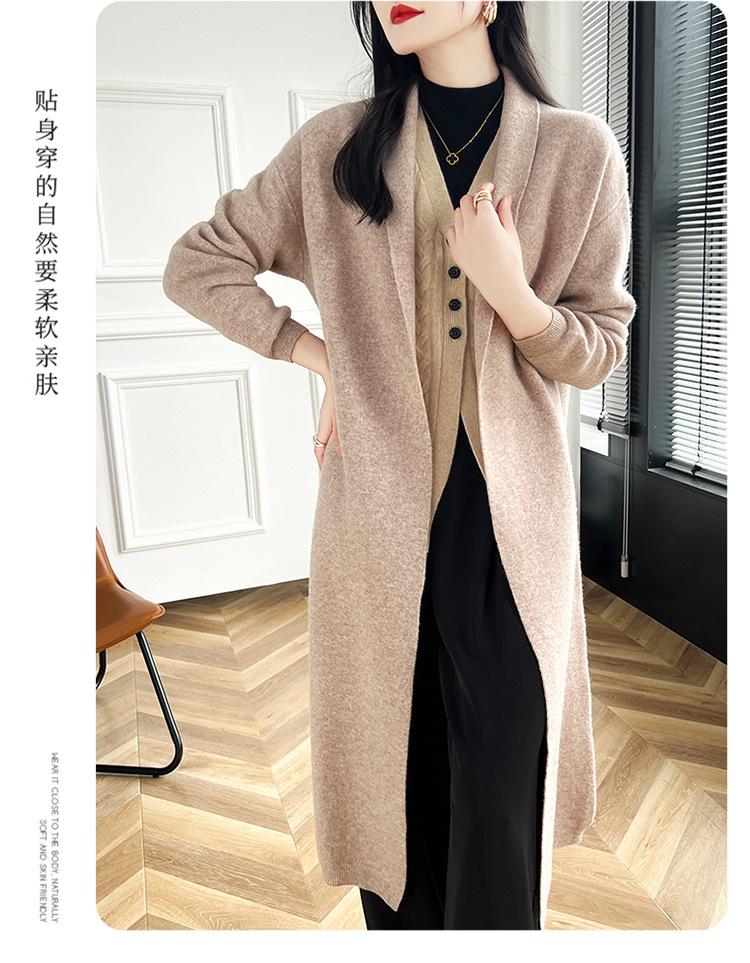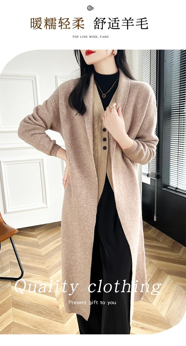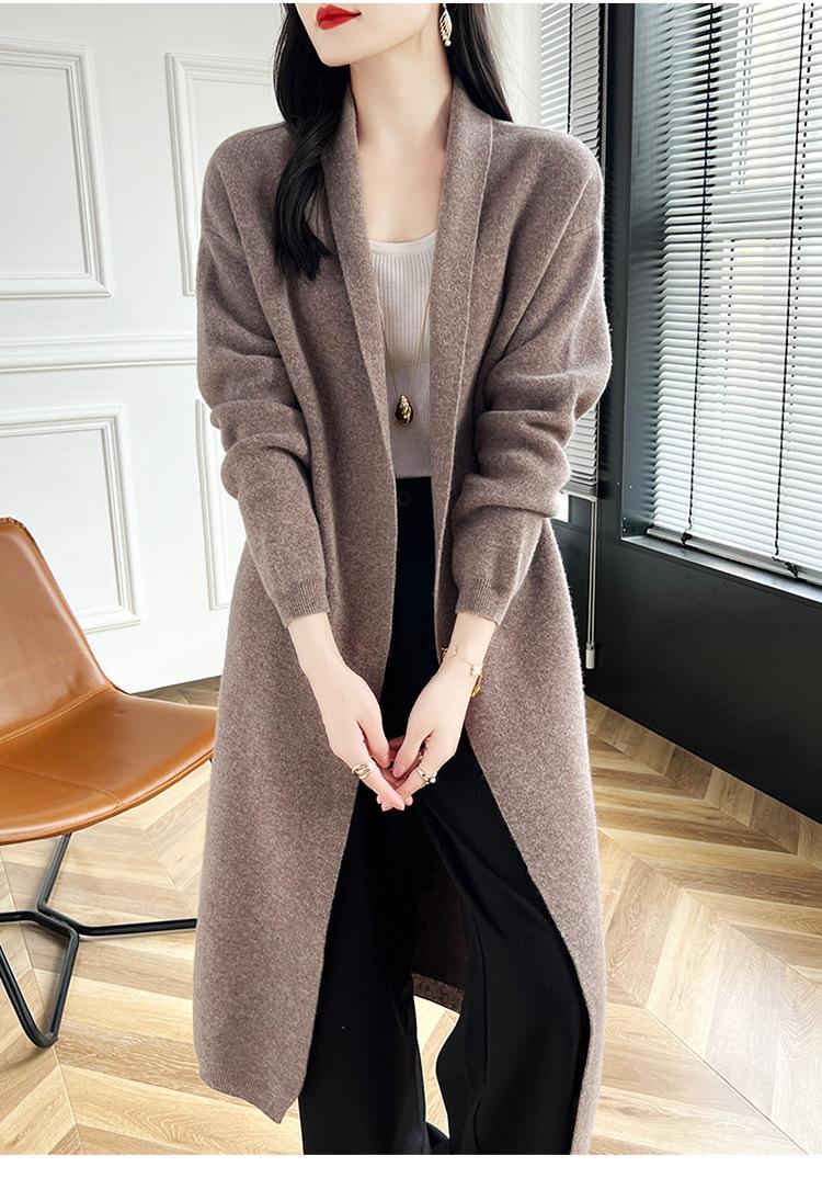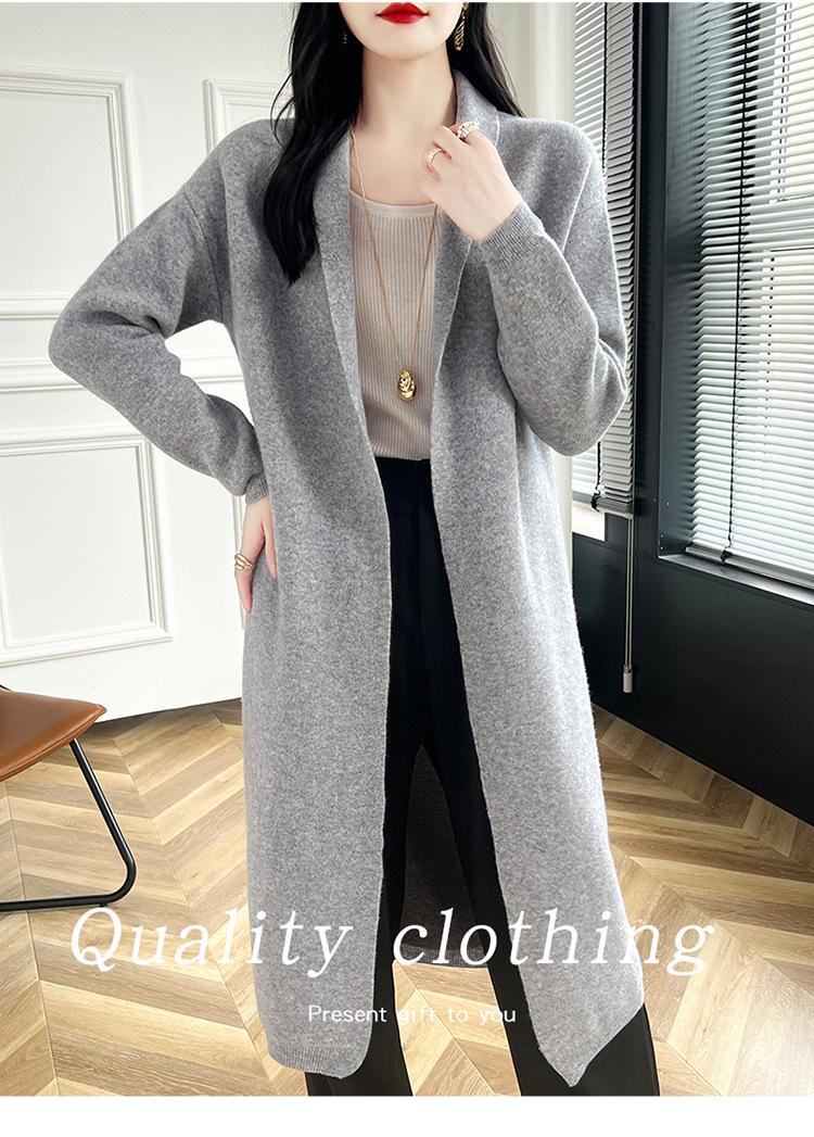 Cárdigan de punto de lana con cuello de vestir para mujer, suelto, de color liso, de manga larga, informal, elegante y sencillo, abrigo chaqueta