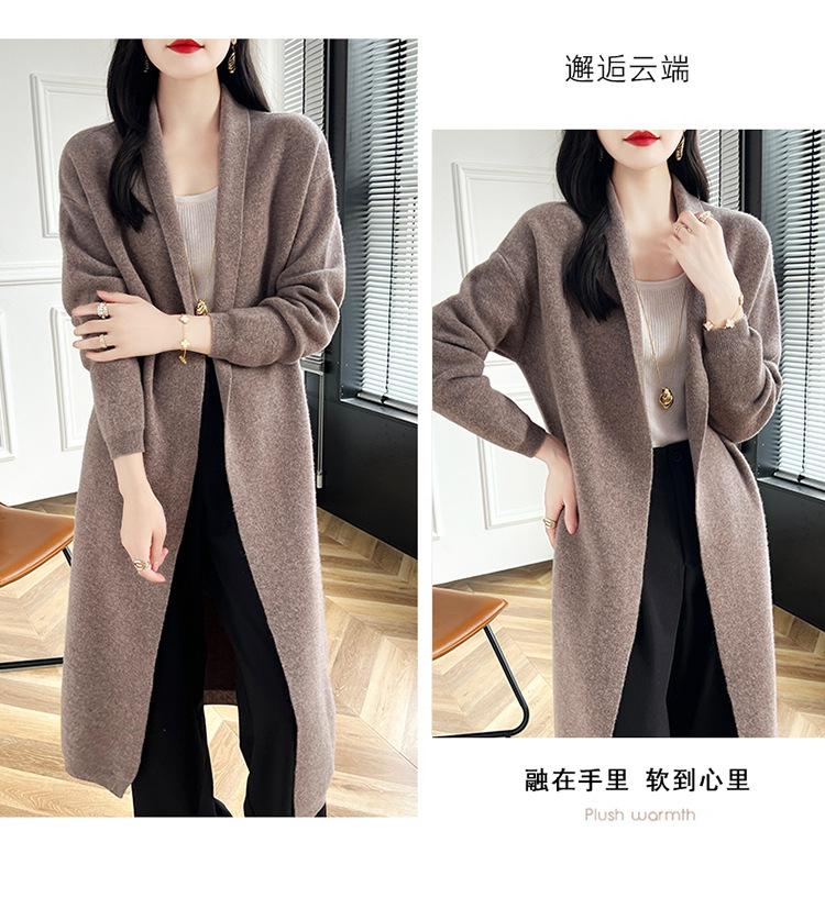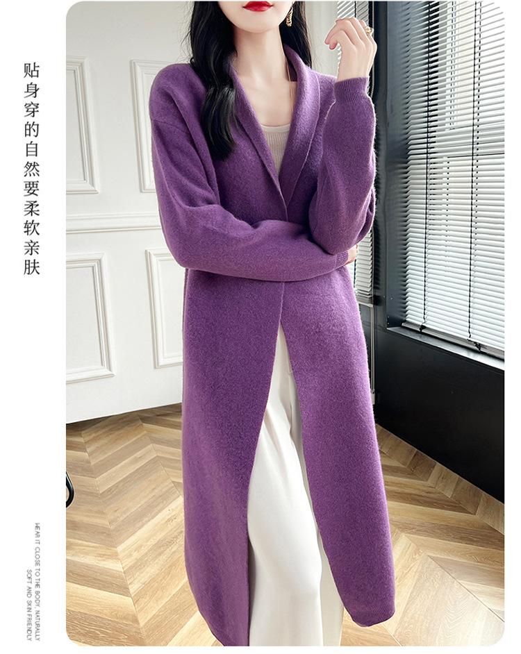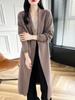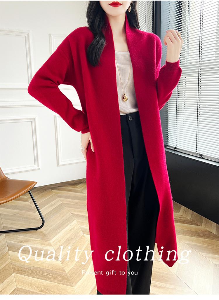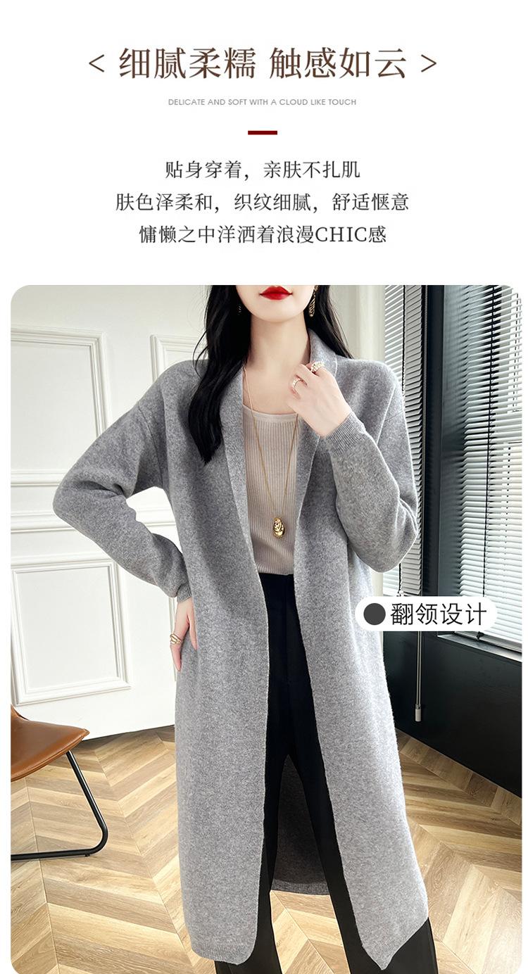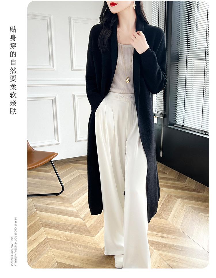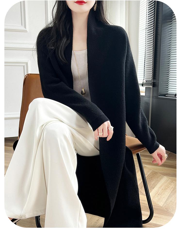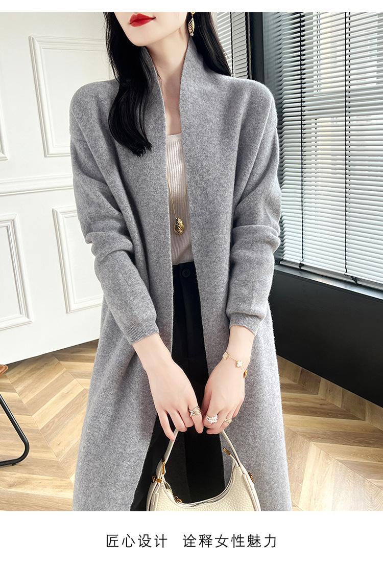Cárdigan de punto de lana con cuello de vestir para mujer, suelto, de color liso, de manga larga, informal, elegante y sencillo, abrigo chaqueta