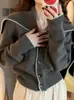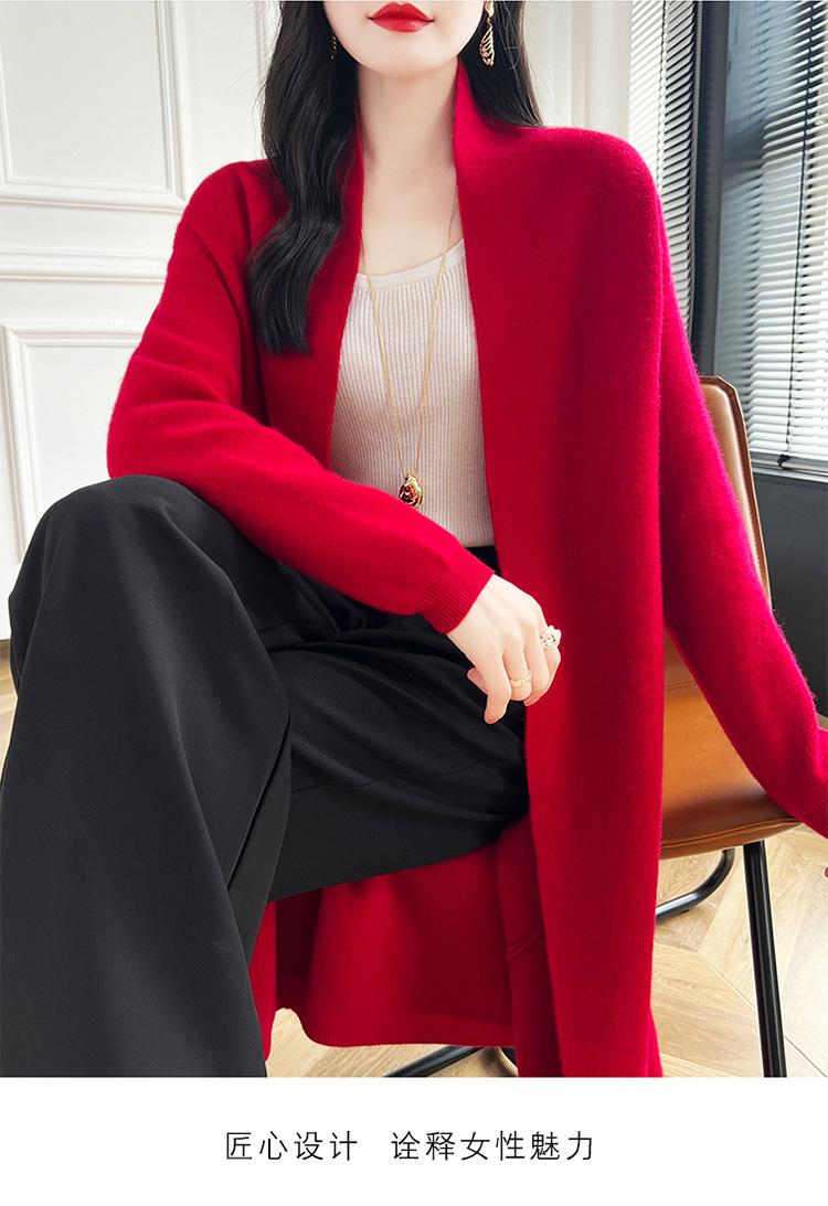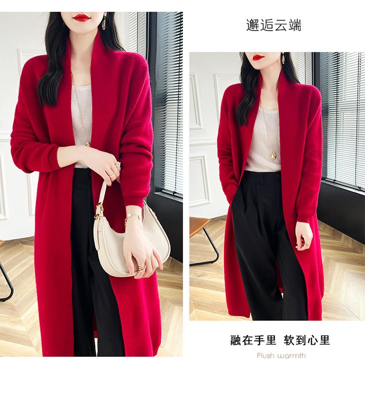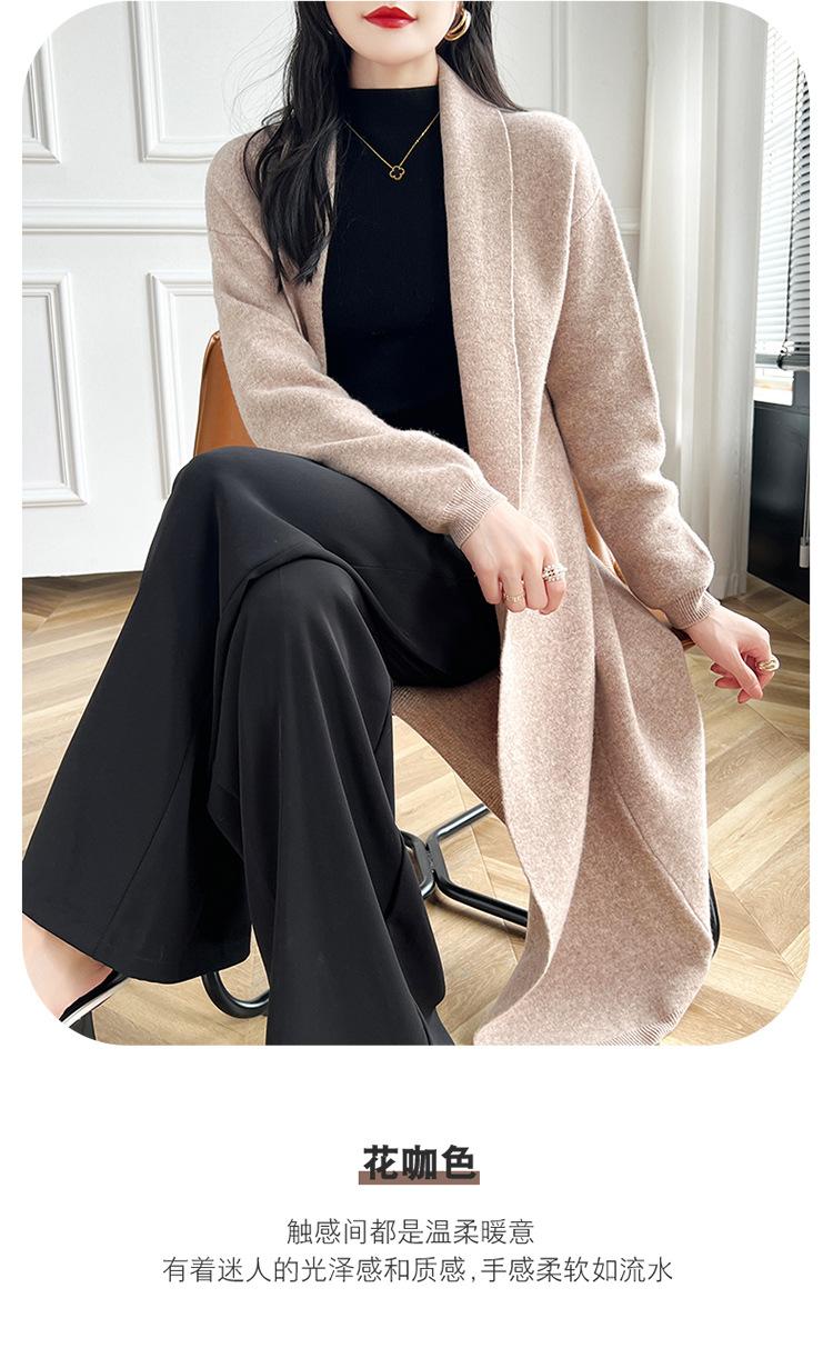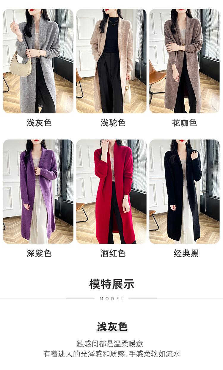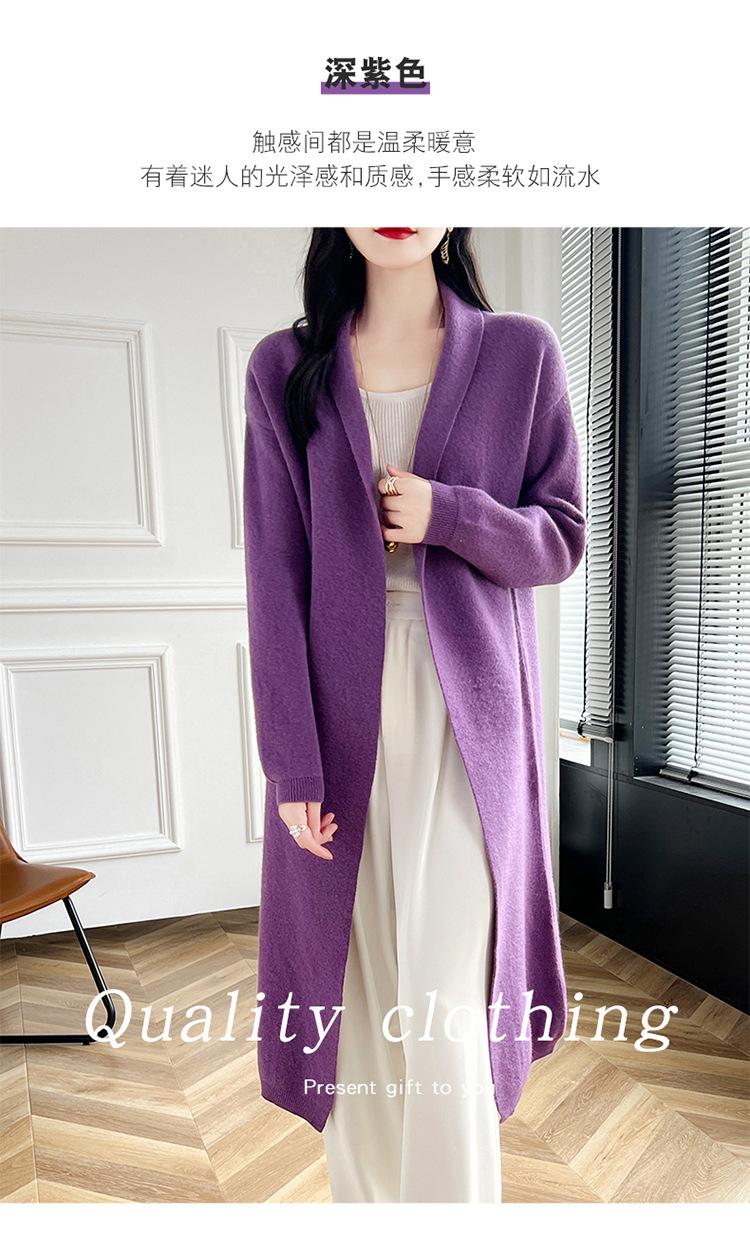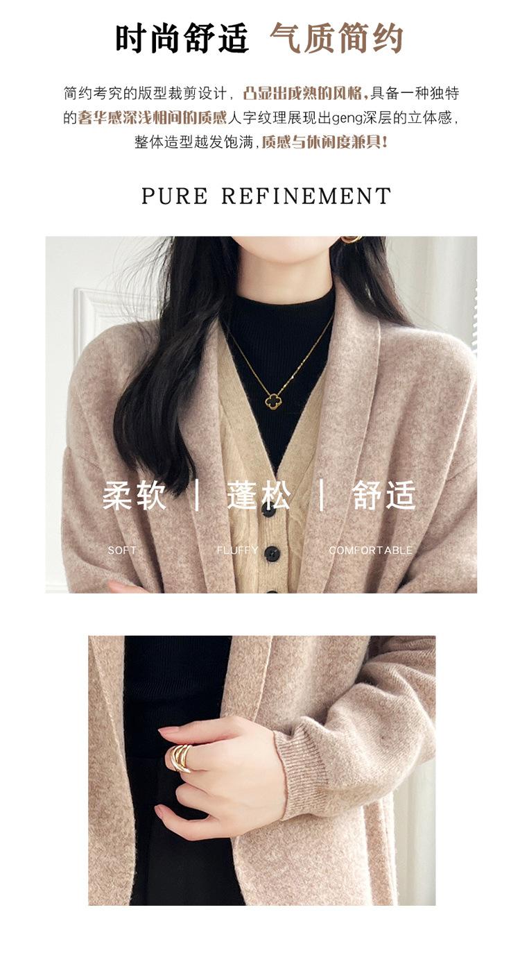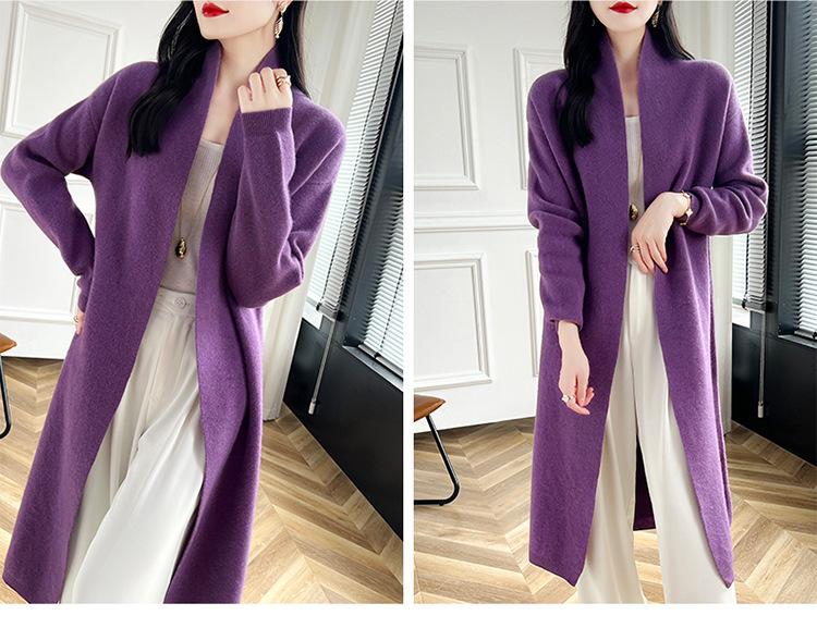 Cárdigan de punto de lana con cuello de vestir para mujer, suelto, de color liso, de manga larga, informal, elegante y sencillo, abrigo chaqueta