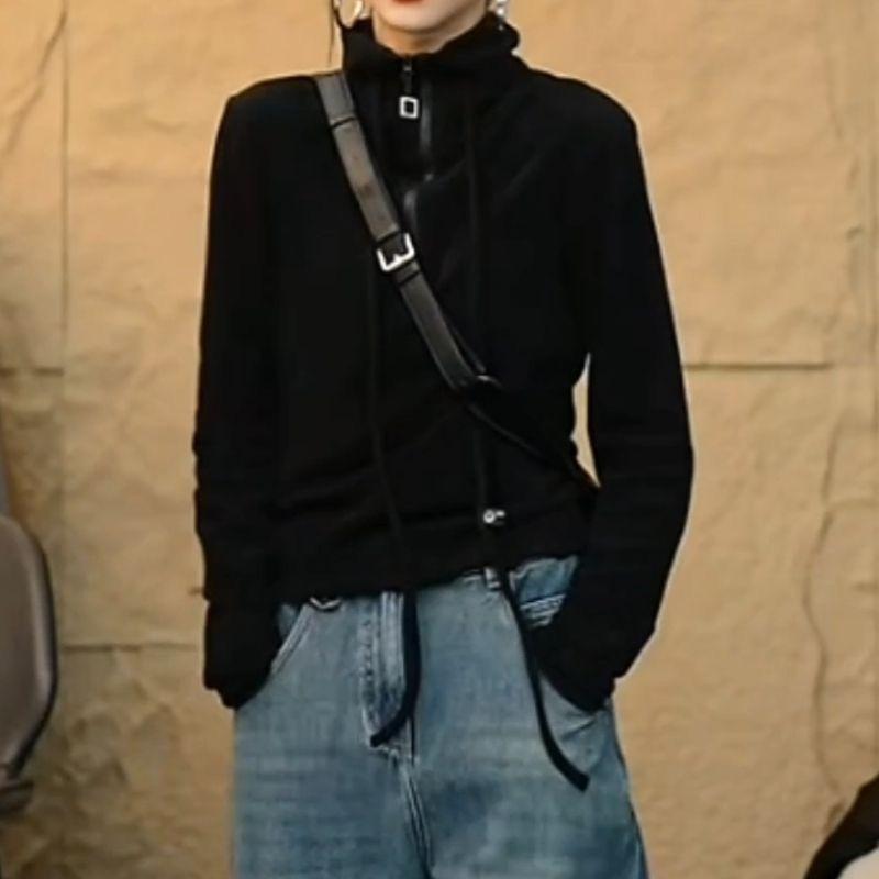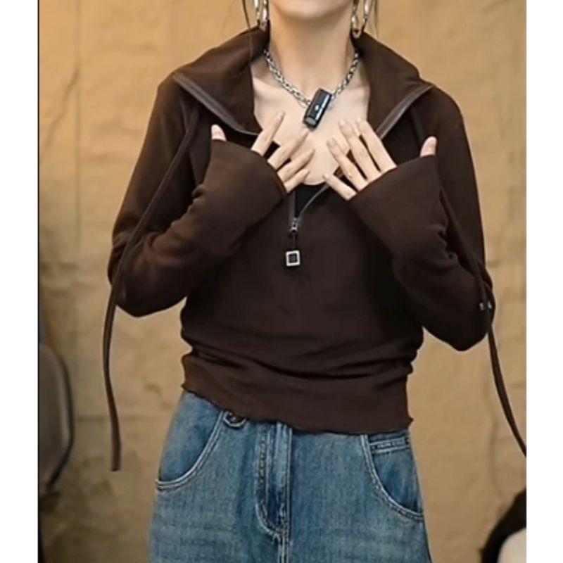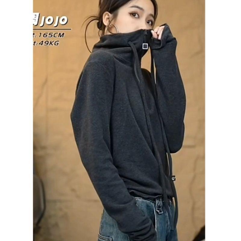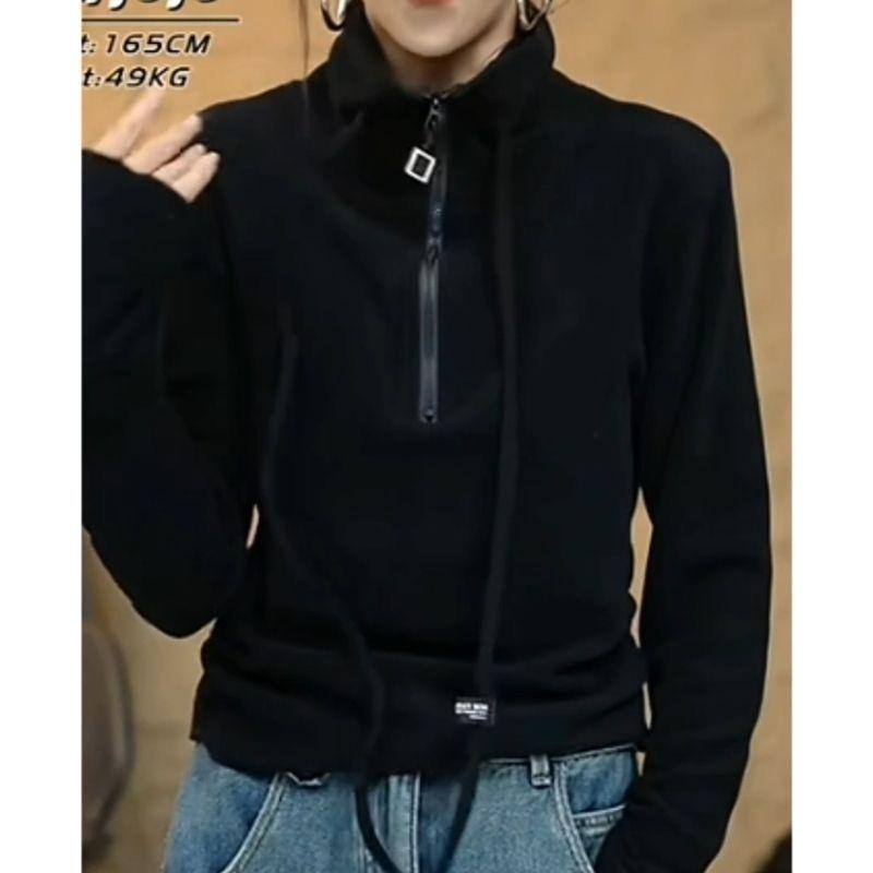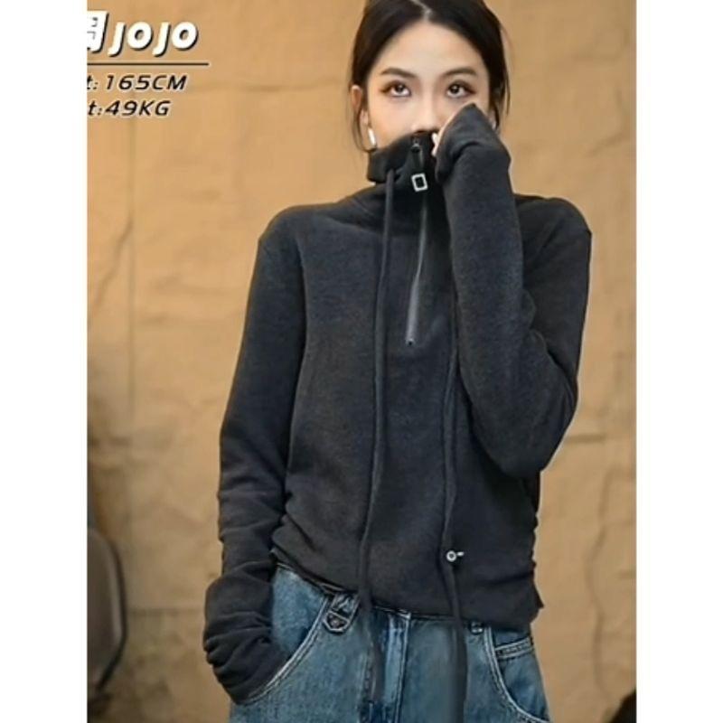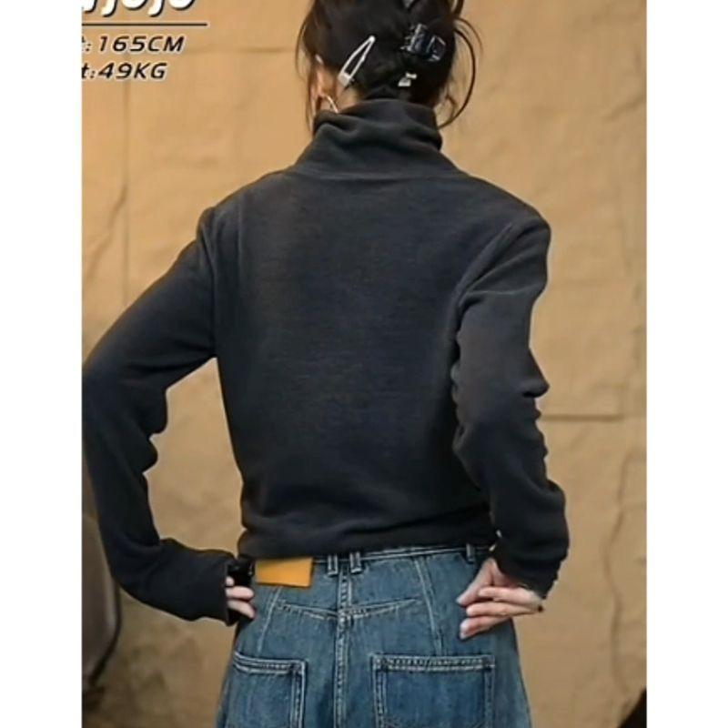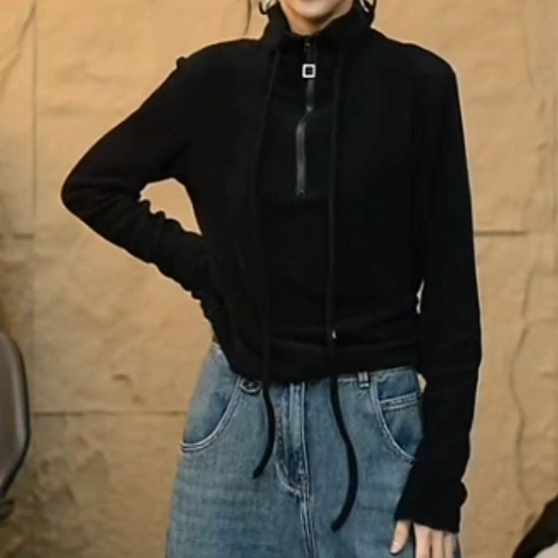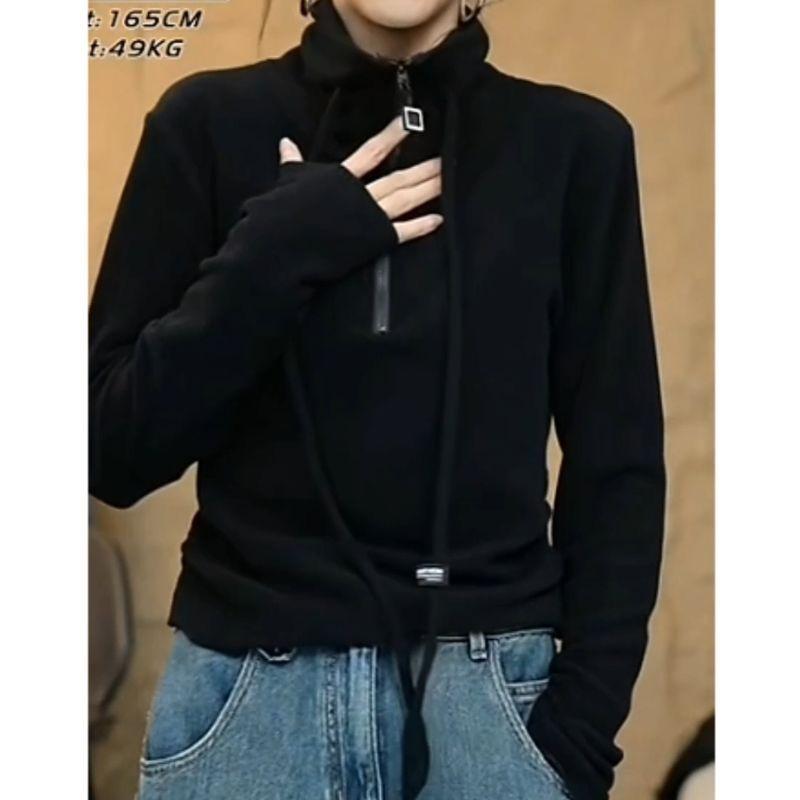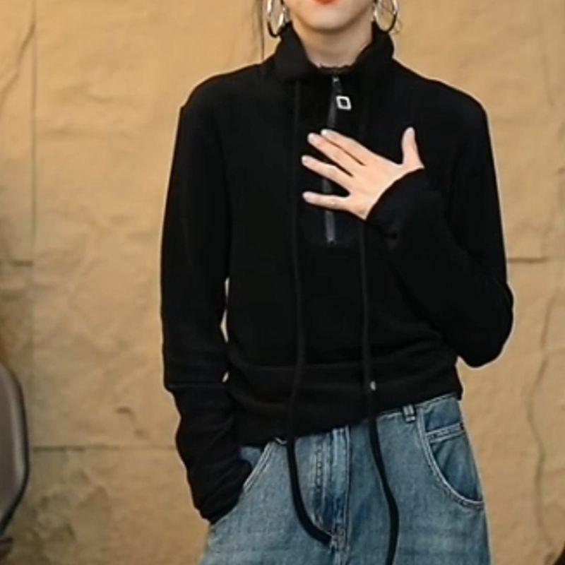 Ropa de Mujer Americana Europea con Cremallera de Cuello Alto Medio de Manga Larga 2025 Otoño e Invierno Nuevo Estilo Terciopelo Alemán Cálido Moda Versátil Top