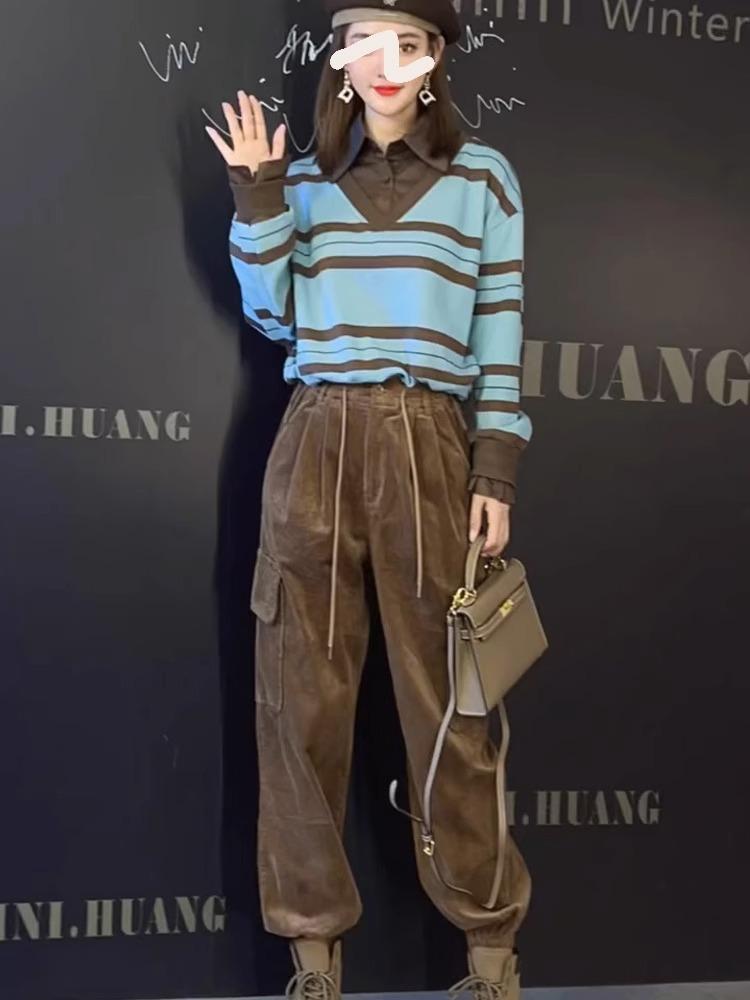 Mono casual deportivo para mujer Primavera y Otoño 2023 nueva moda que reduce la edad celebridad de internet manga larga traje de dos piezas moda