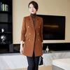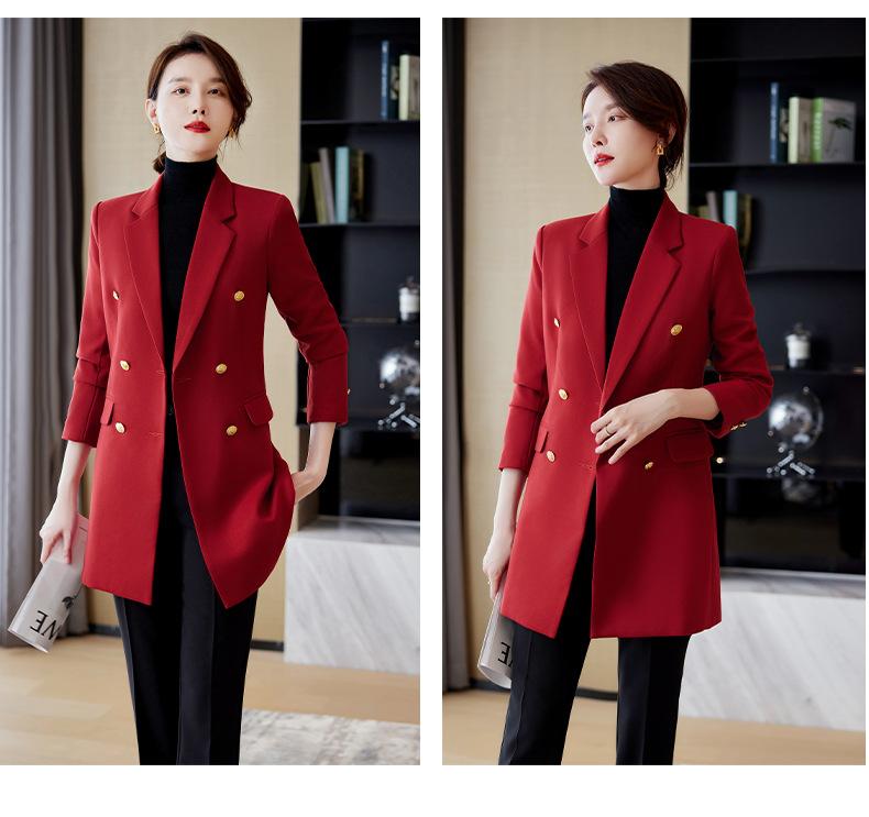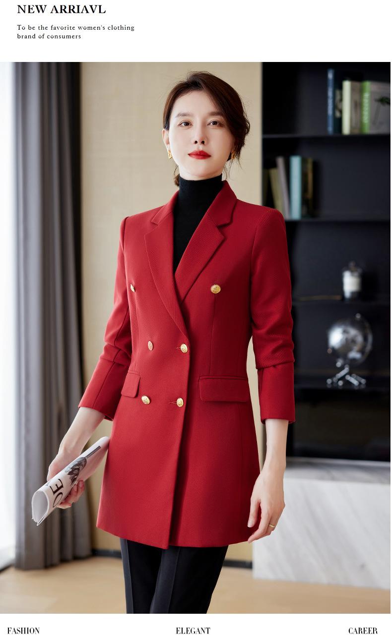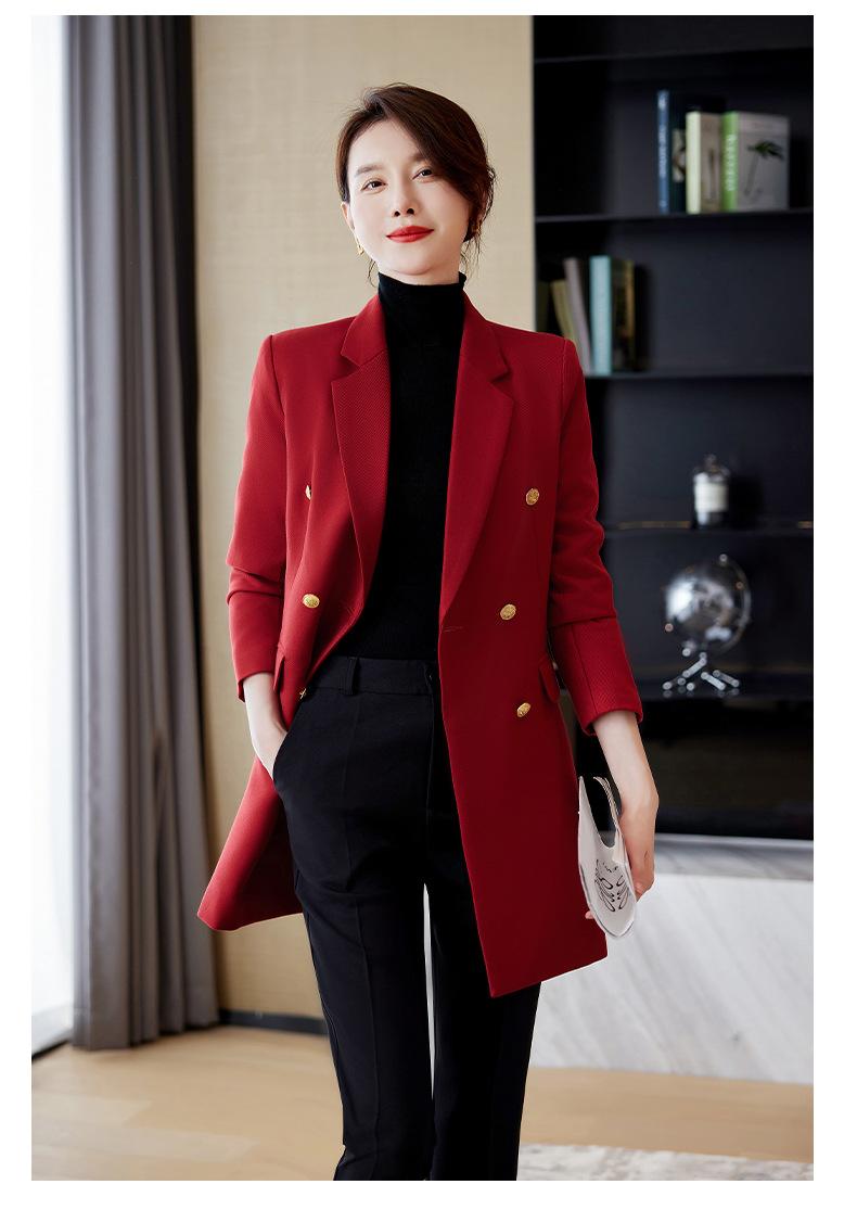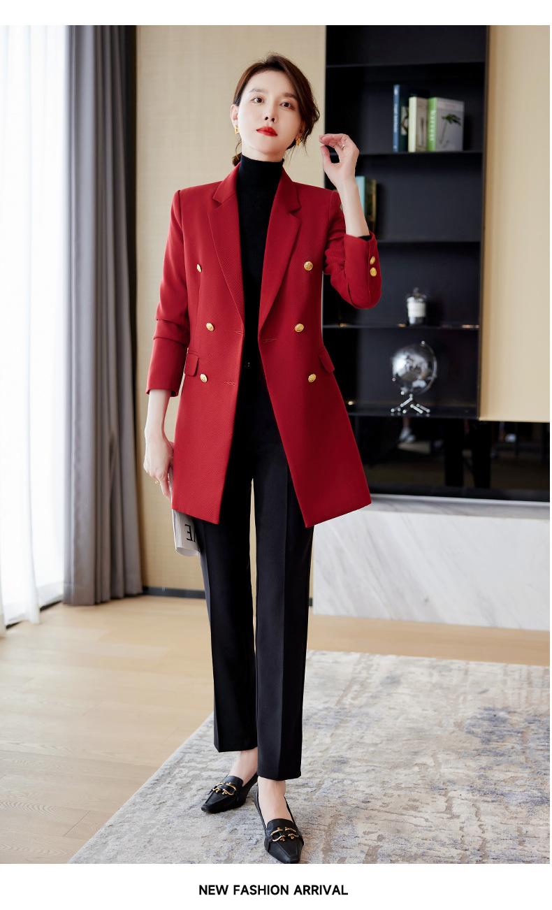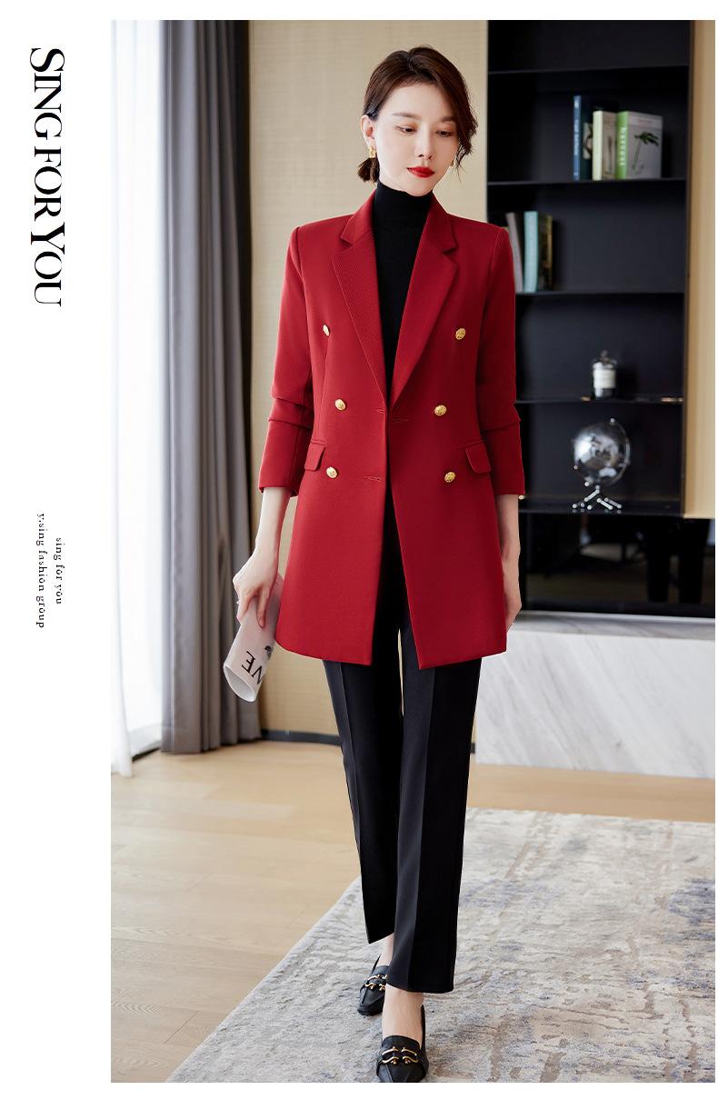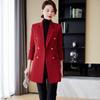 Abrigo de otoño e invierno 2023 con cuello de traje pequeño, manga larga roja, elegante y a la moda para mujer