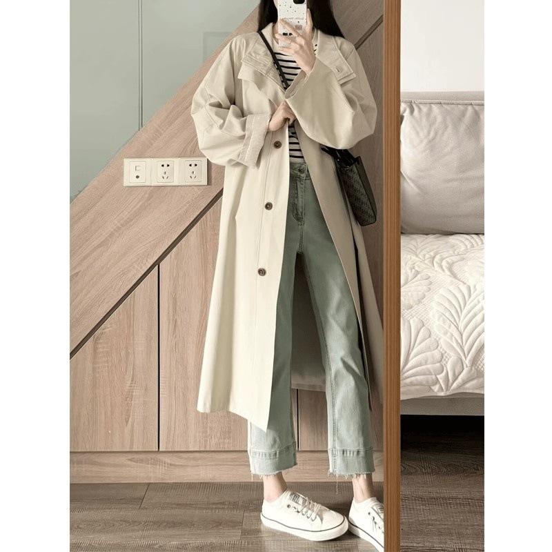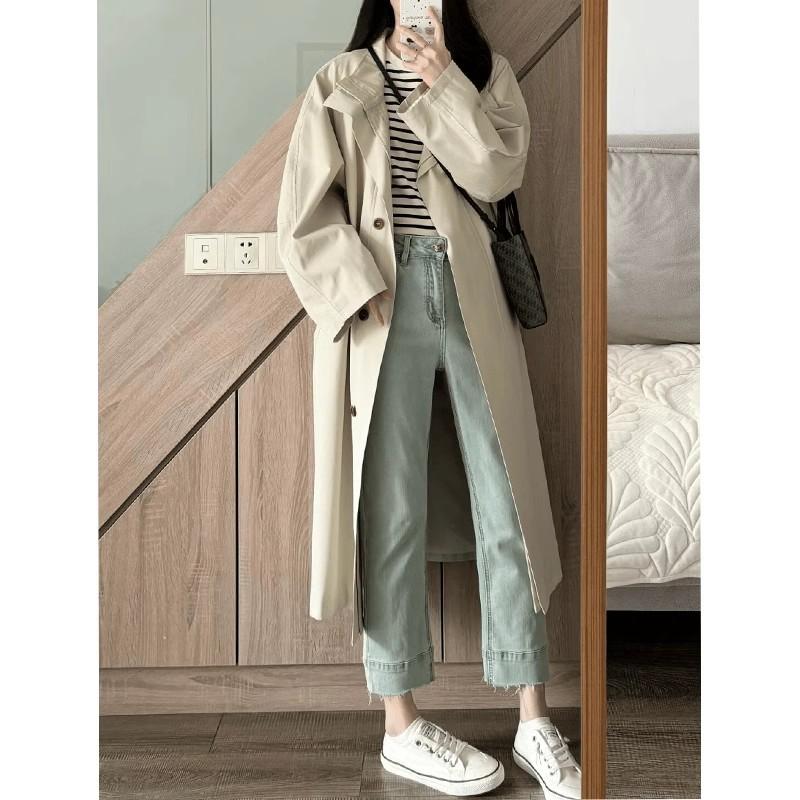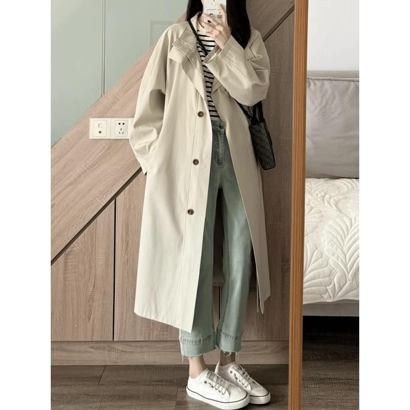 Abrigo blanco de longitud media para mujer, otoño 2024, nuevo estilo, abrigo pequeño, estilo británico, estilo coreano.