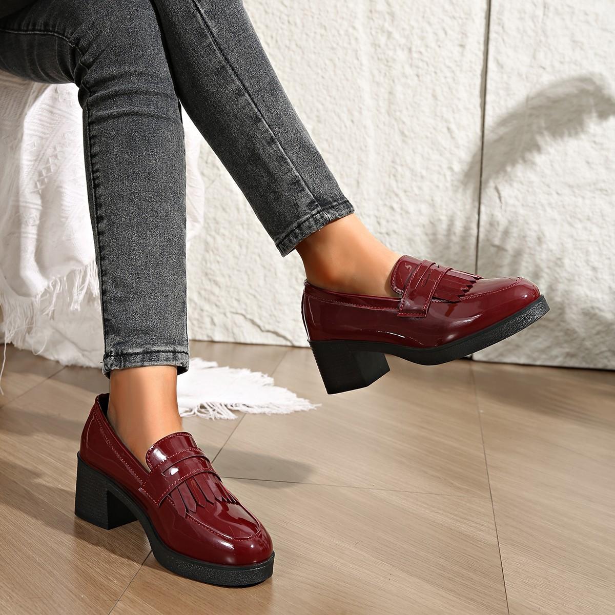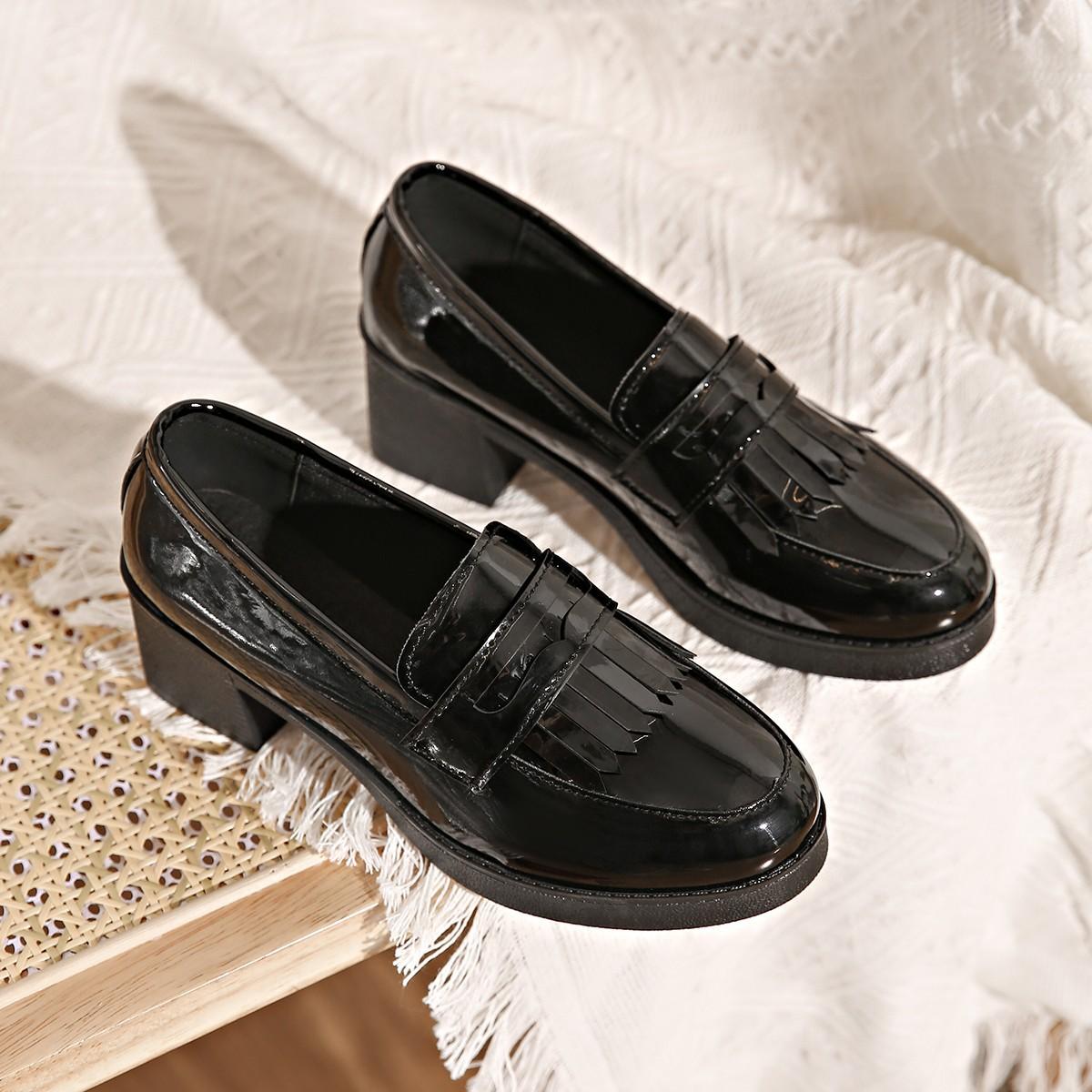2024 Nuevos zapatos de primavera y otoño de suela blanda de una sola capa, mocasines de suela gruesa con borlas para mujer, zapatos de cuero estilo británico, tacón grueso para mujer