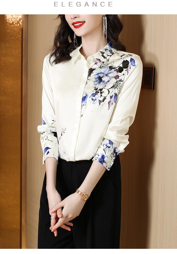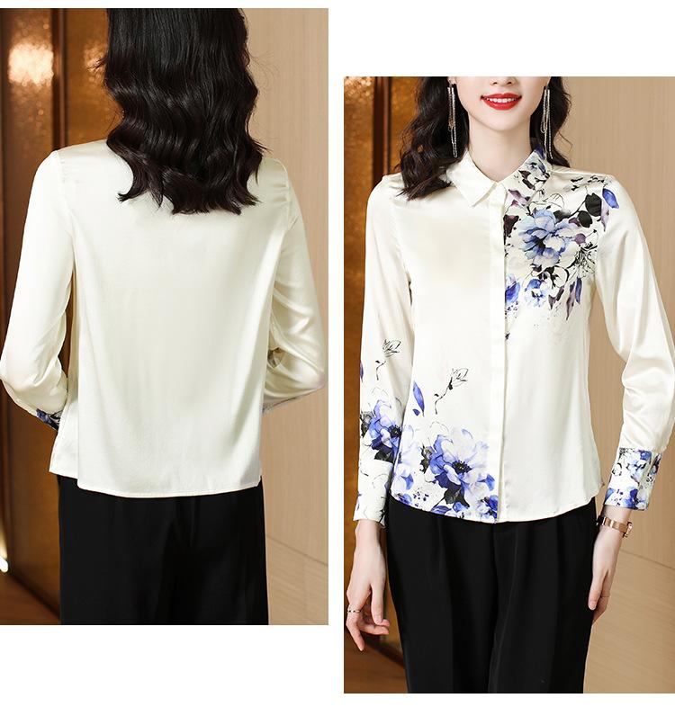 Camisa de seda para mujer, de manga larga, de seda morera pesada, otoño 2024, diseño Sense Niche, estilo occidental.