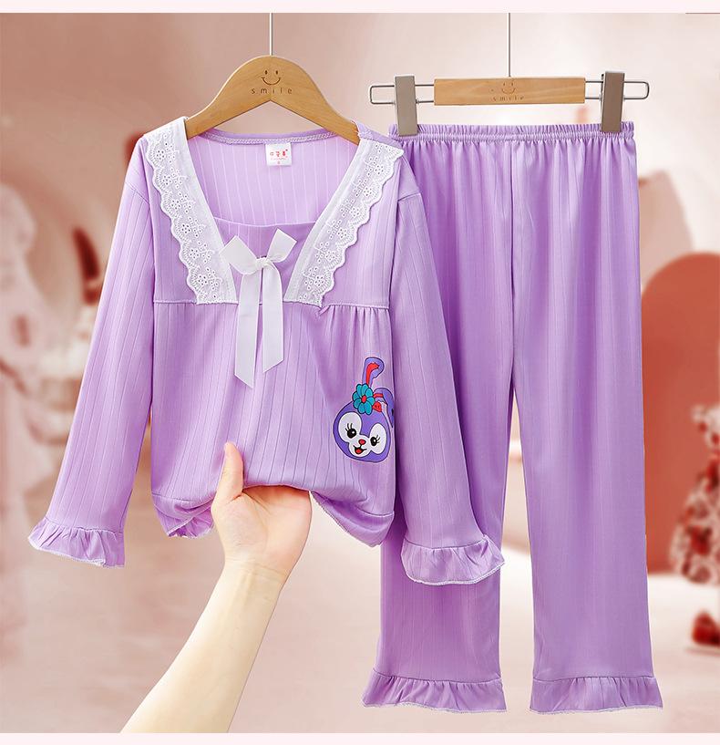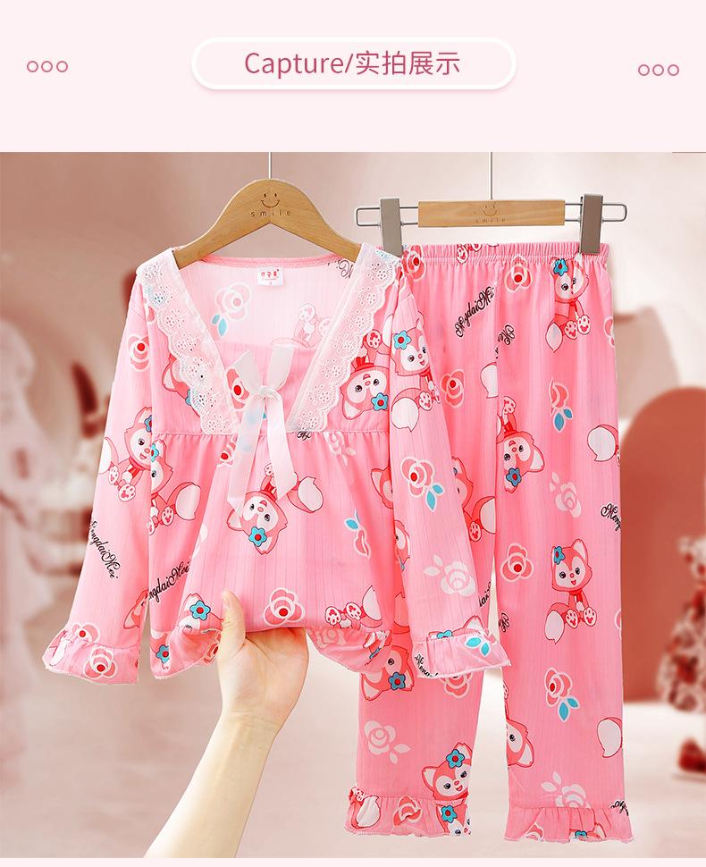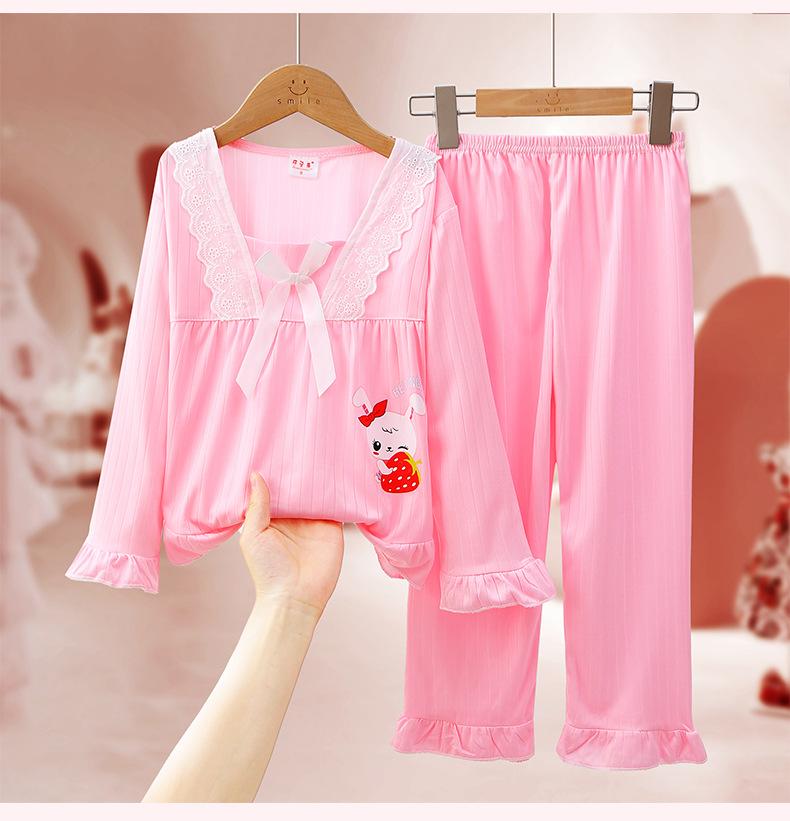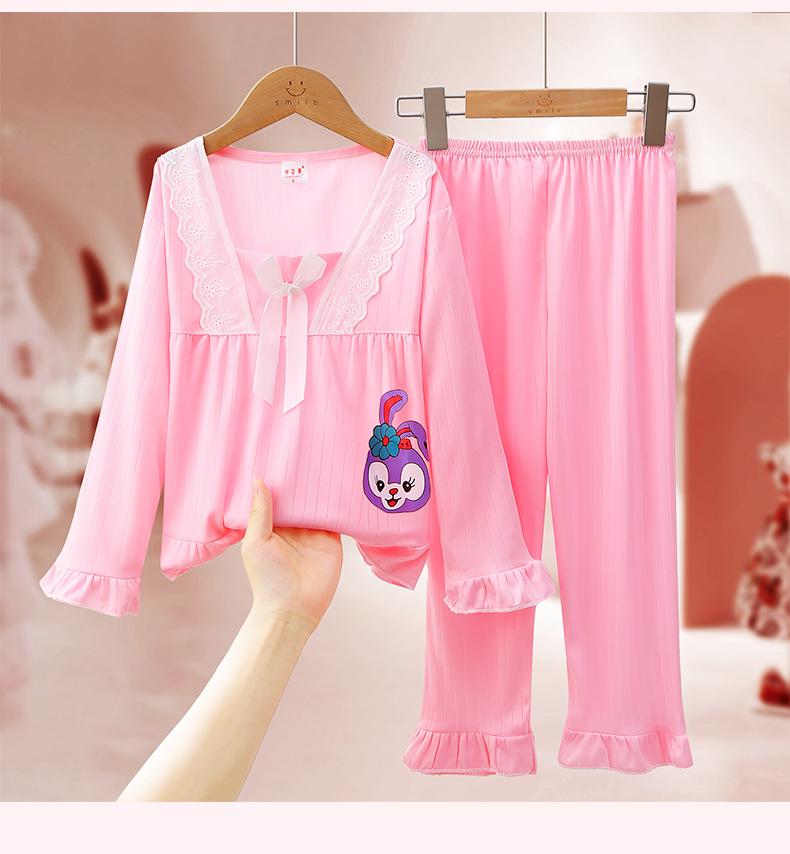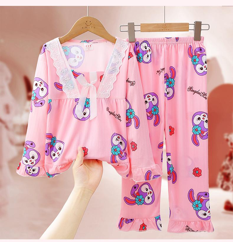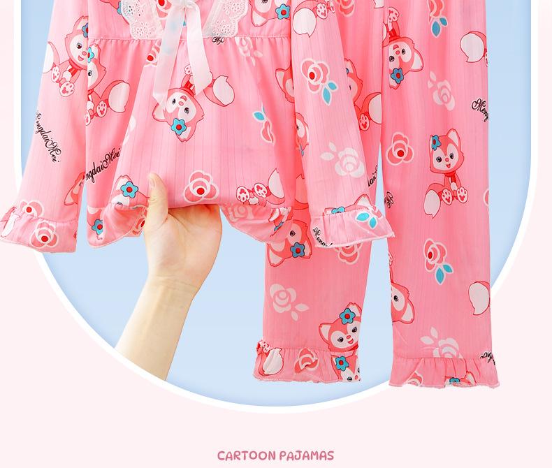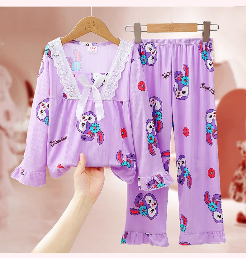 Pijamas de niña Primavera y Otoño de manga larga finos de princesa para niñas medianas y grandes, ropa de hogar para niños, ropa de aire acondicionado de verano, traje