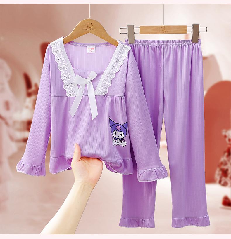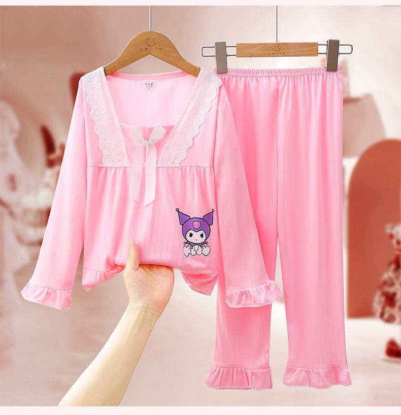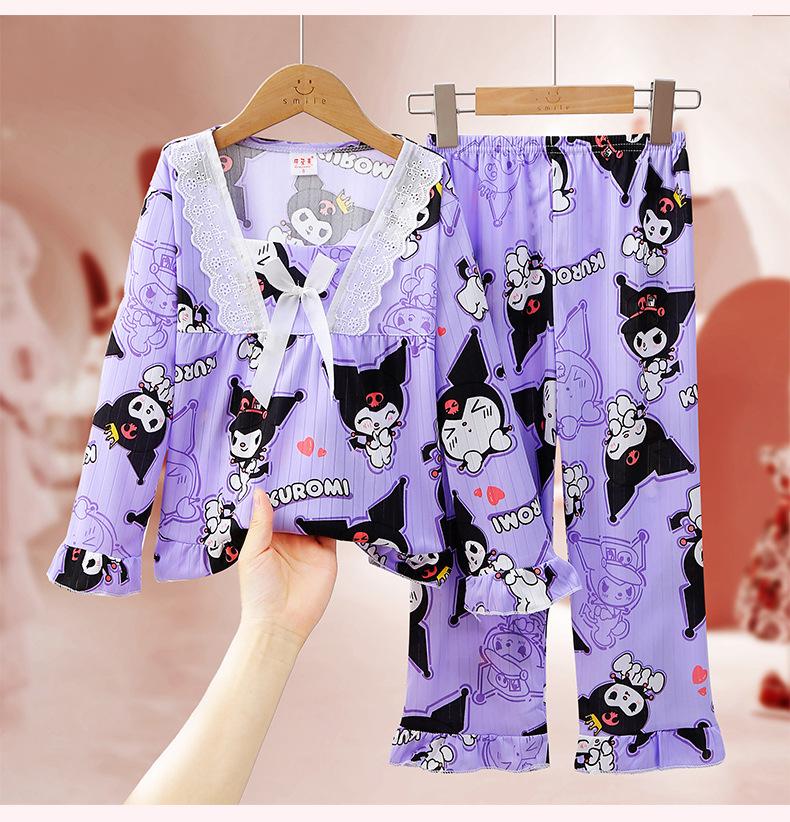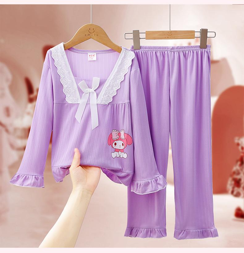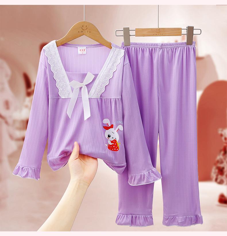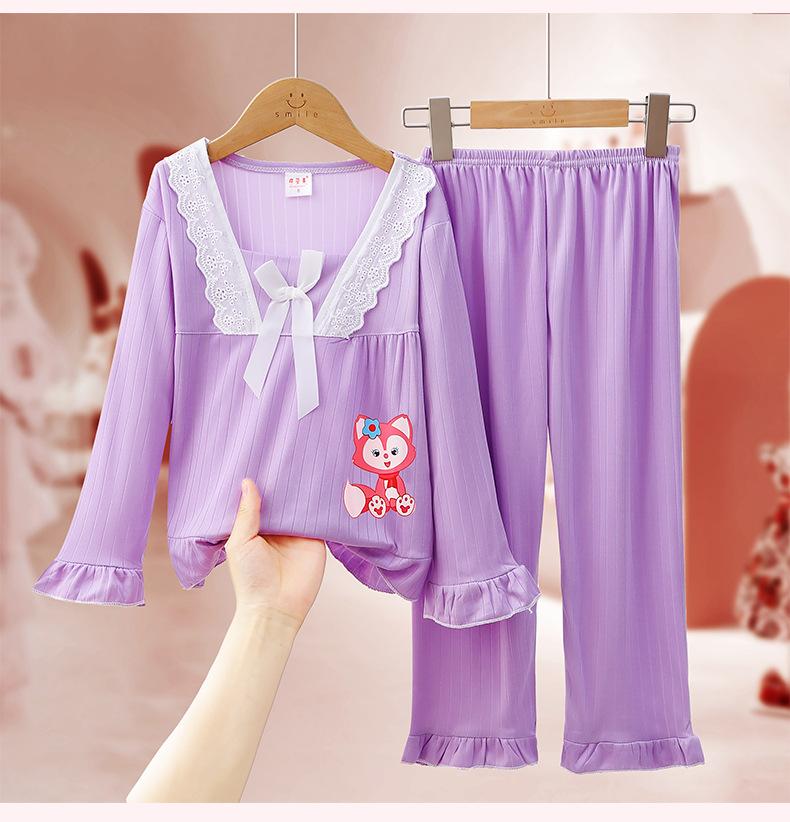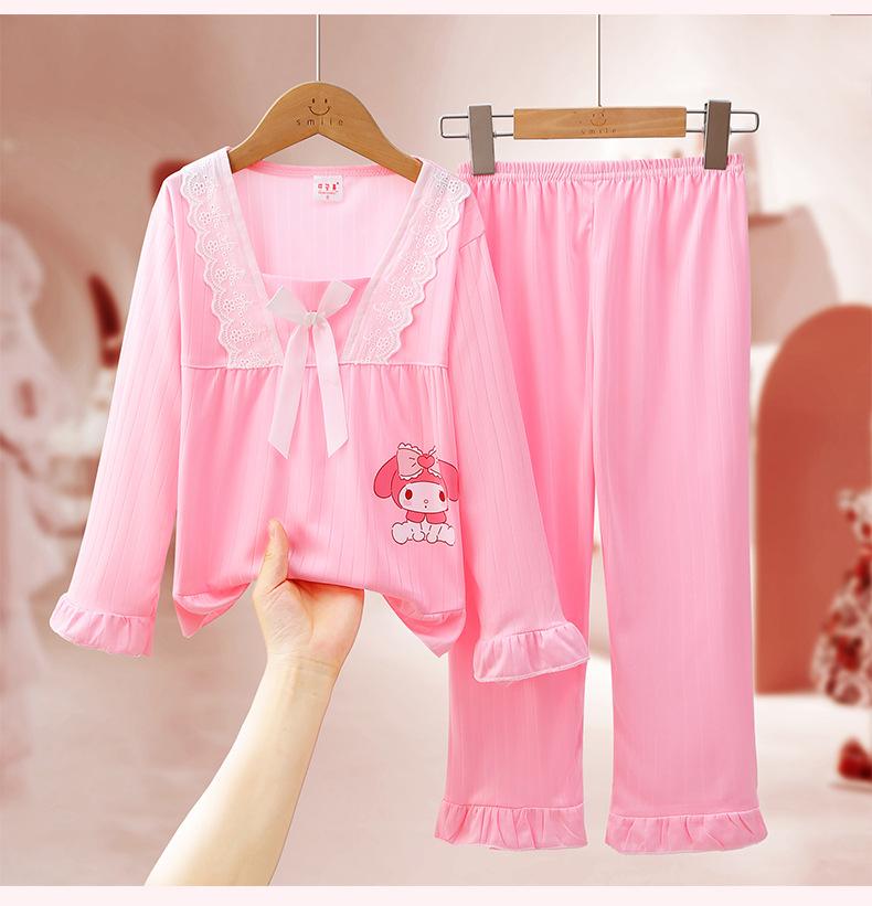 Pijamas de niña Primavera y Otoño de manga larga finos de princesa para niñas medianas y grandes, ropa de hogar para niños, ropa de aire acondicionado de verano, traje