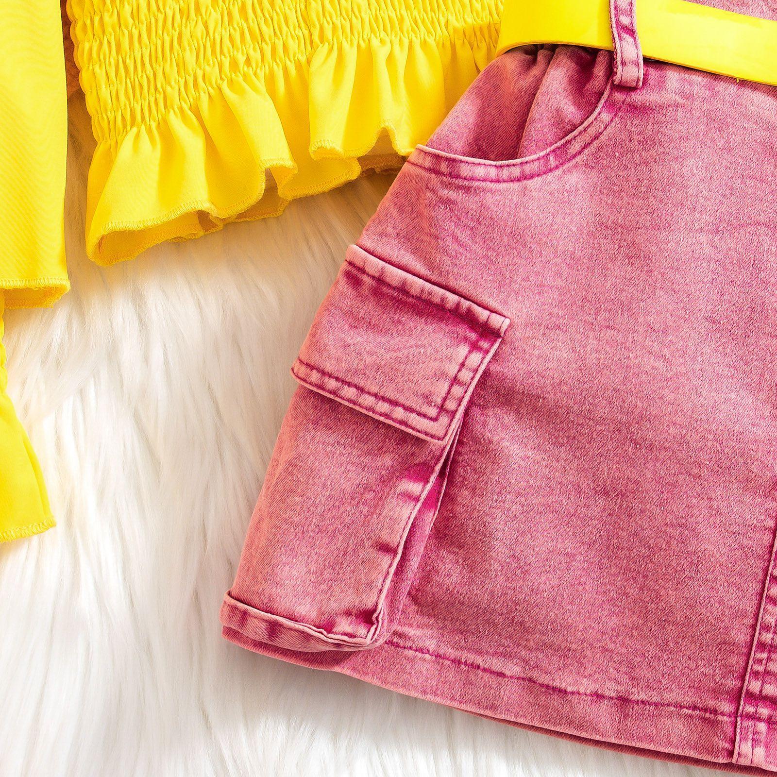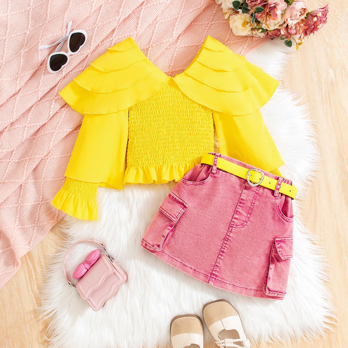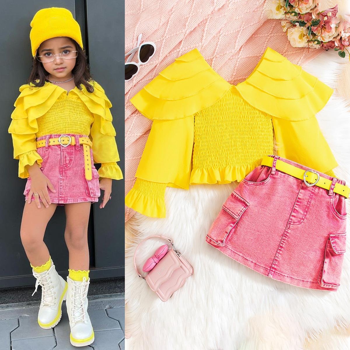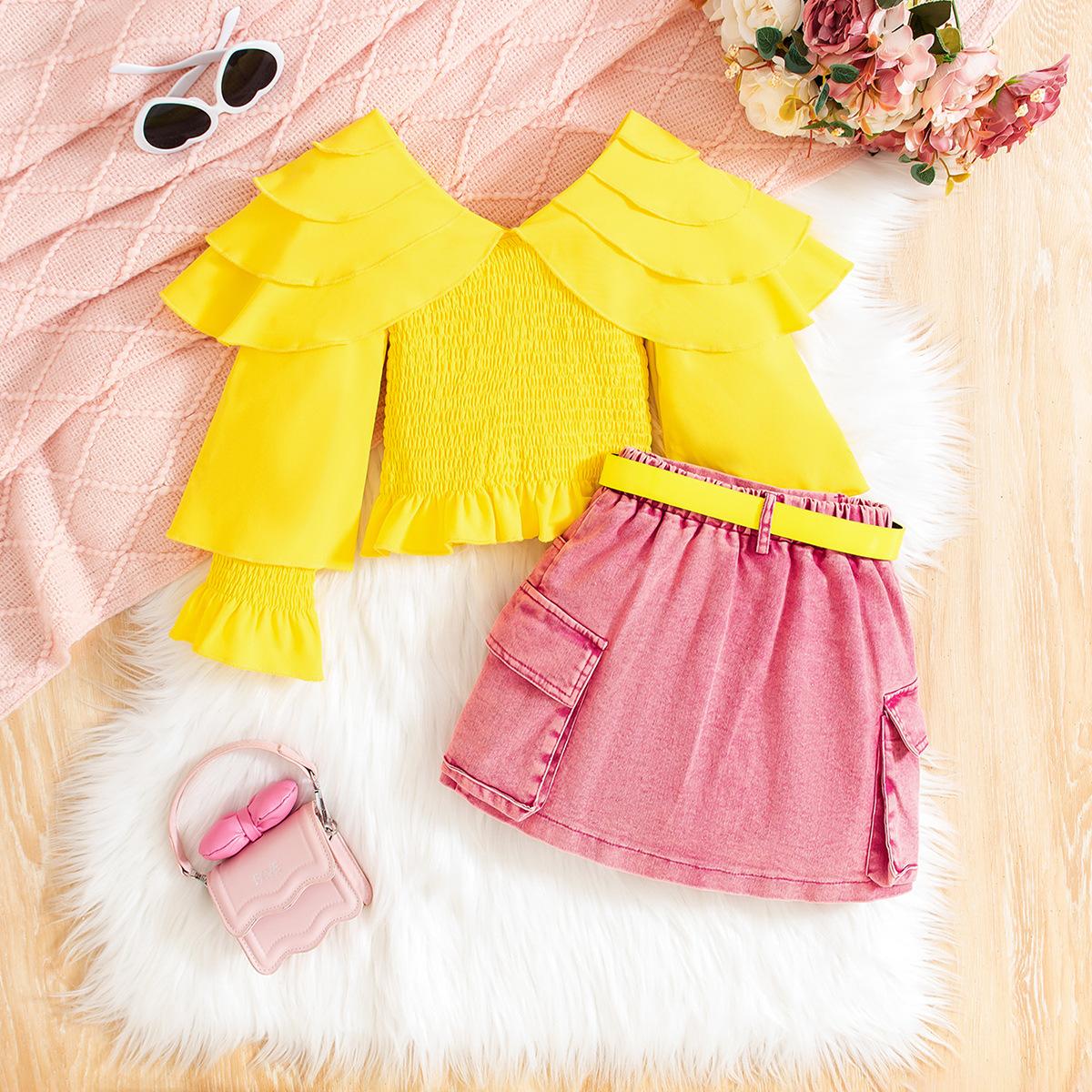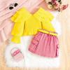 Comercio exterior transfronterizo para Europa y Estados Unidos, marea de primavera y otoño, traje de niñas con cuello en V para obtener una falda rosa de manga larga