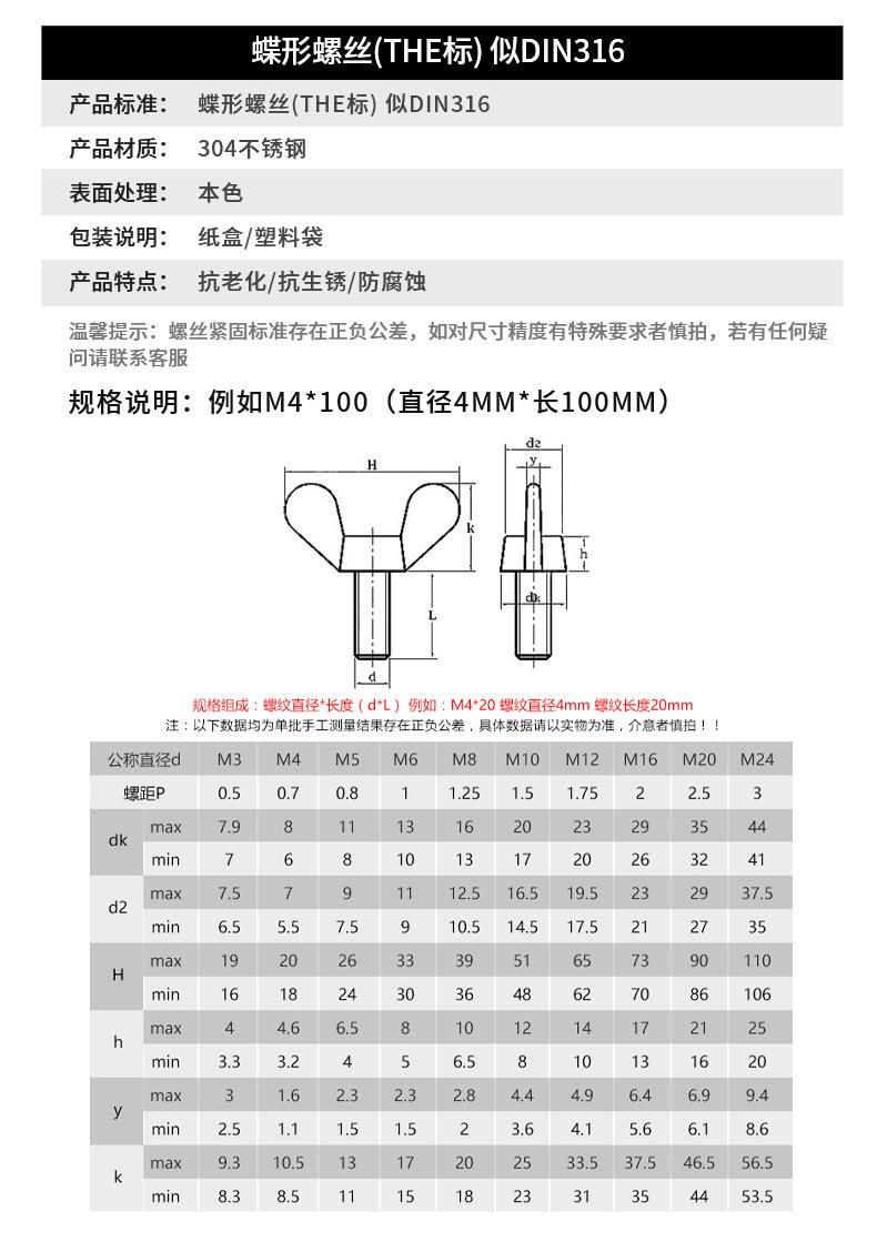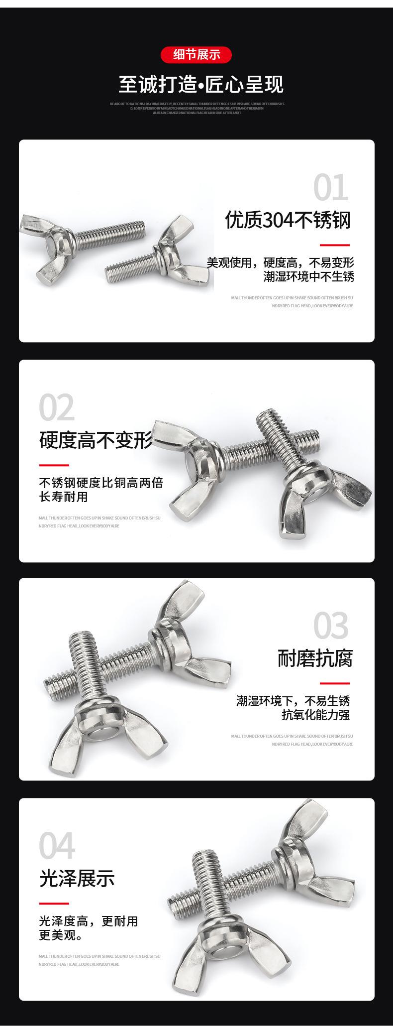 Tornillo de mariposa de acero inoxidable 304, perno de mariposa, lingote, disco de garra, tornillo de mano M3M4M5M6M8M10