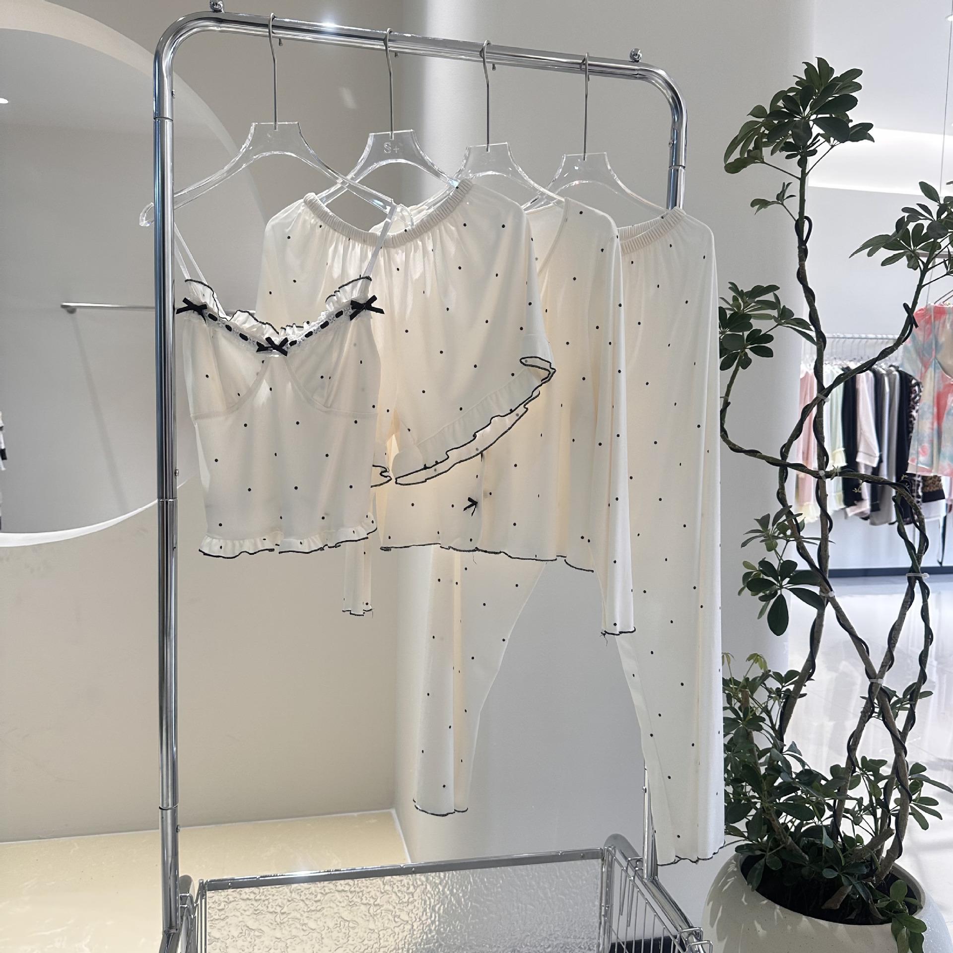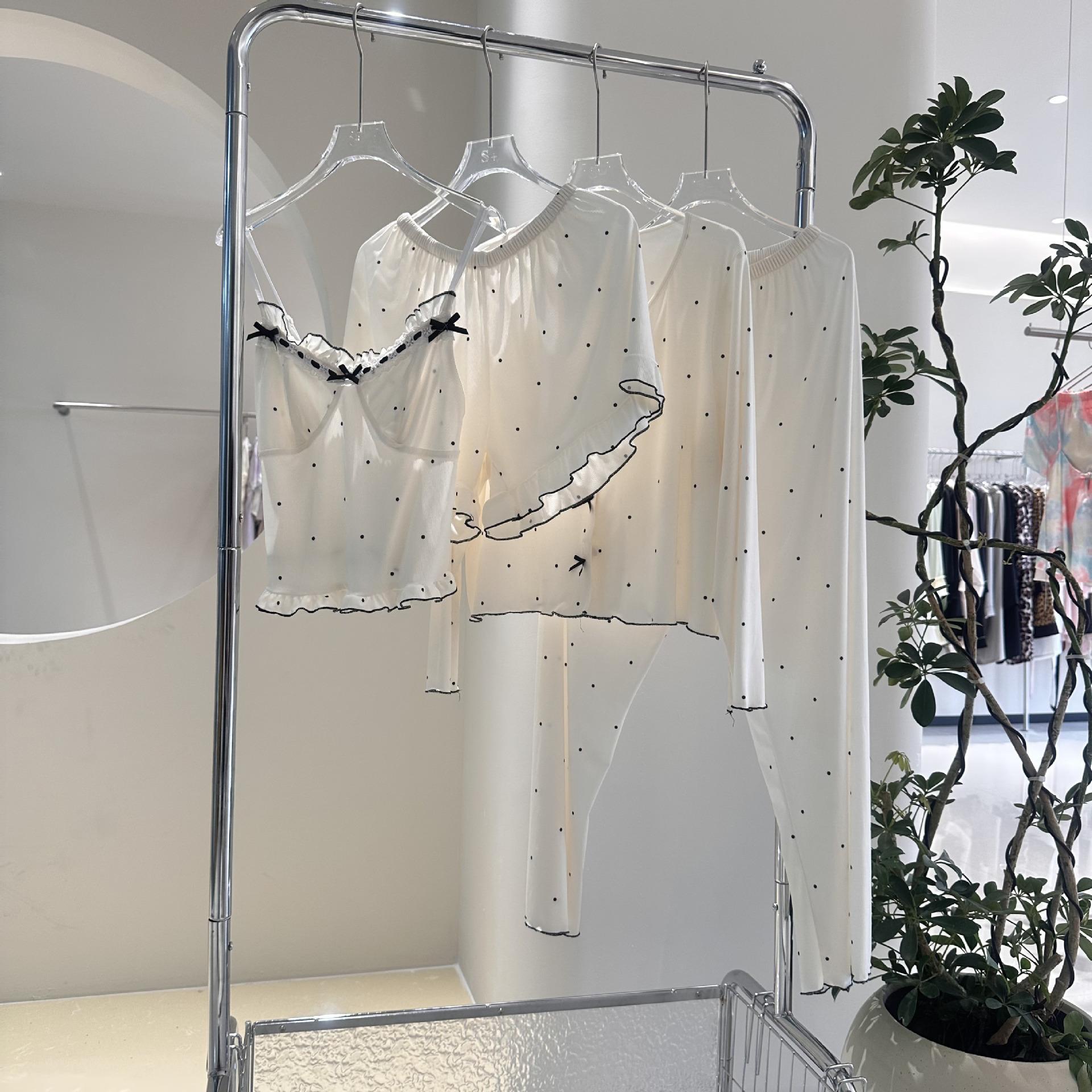 Conjunto de pijama de cuatro piezas de modal estilo femenino para mujer, pantalones cortos con tirantes, pantalones de manga larga frescos de verano, ropa para el hogar dulce