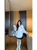 [Calidad original] Camiseta de rayas con cuello en V y contraste de colores para mujer, estilo holgado, con lazo de otoño