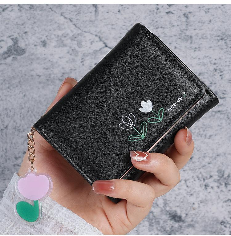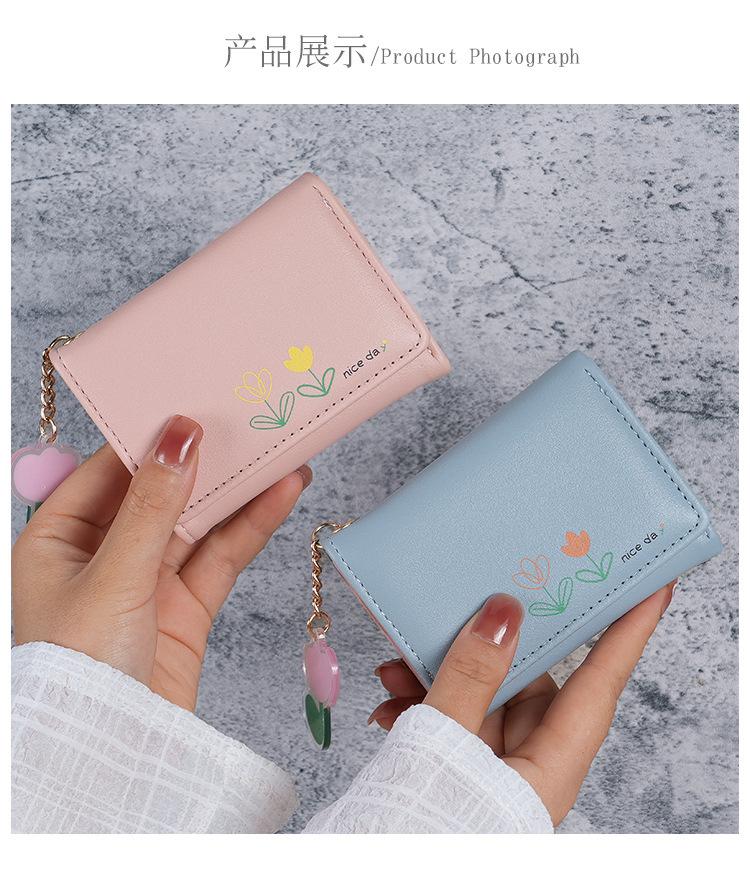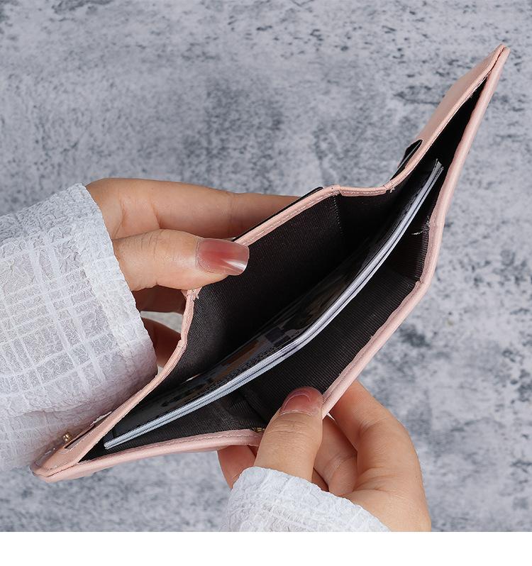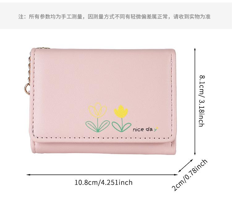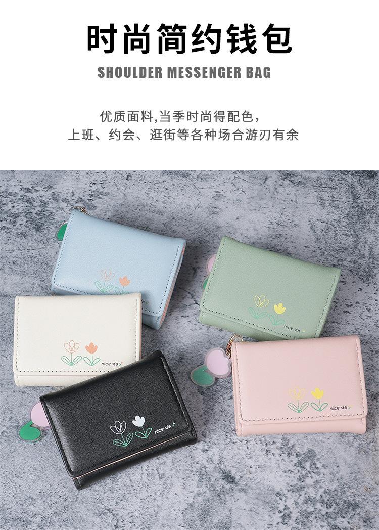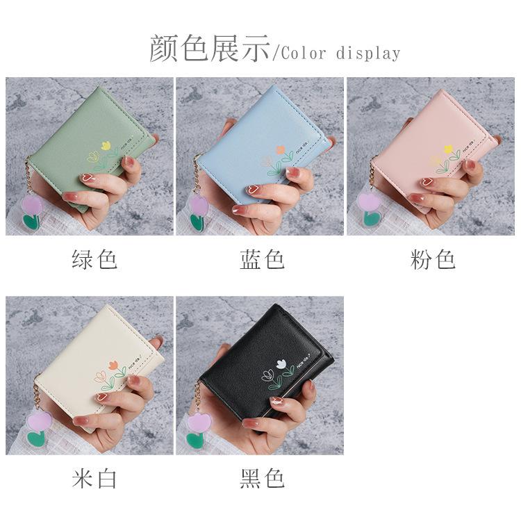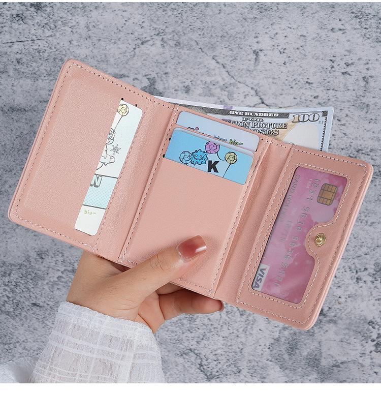 Cartera pequeña para mujer, nueva, 2024, corta, triple, de color liso, con estampado simple, bonita y fresca, plegable para estudiantes, tarjetero