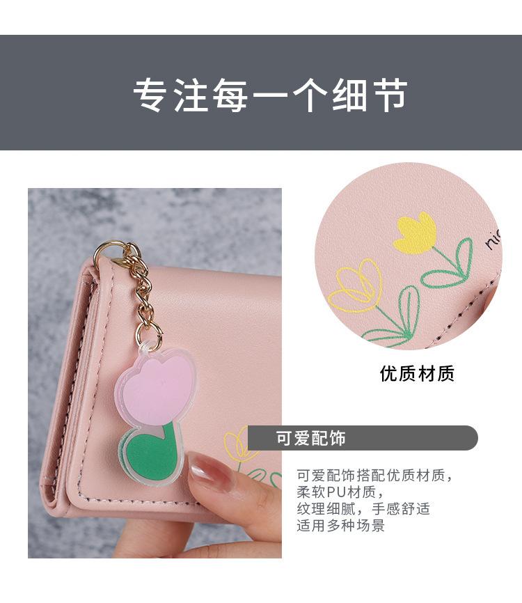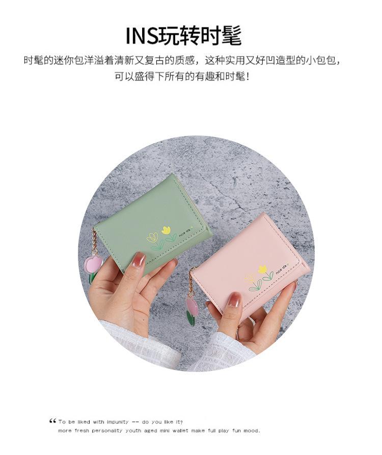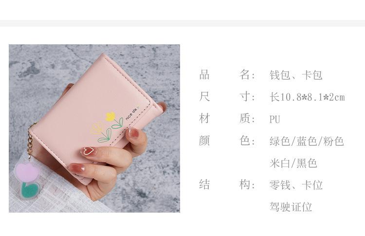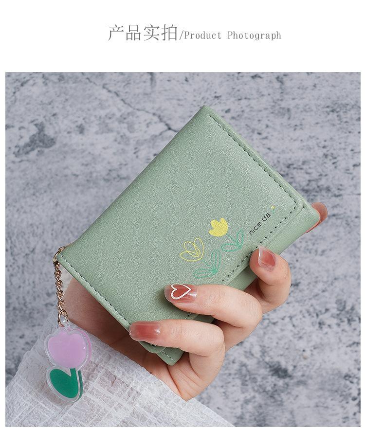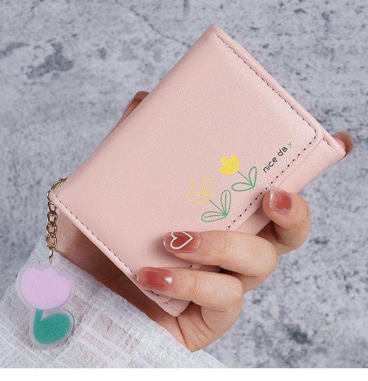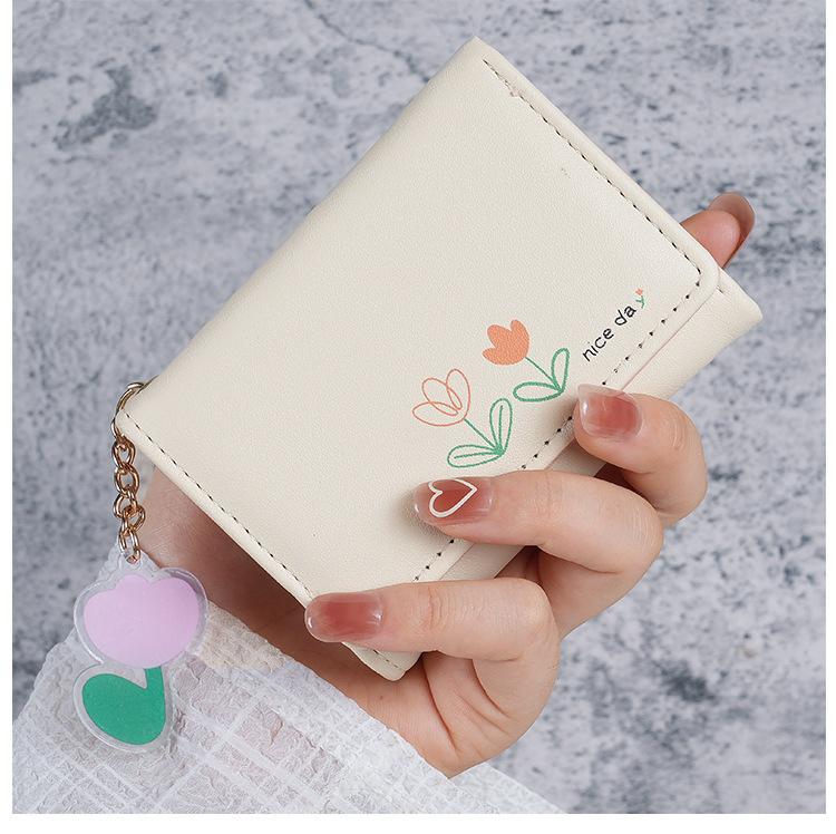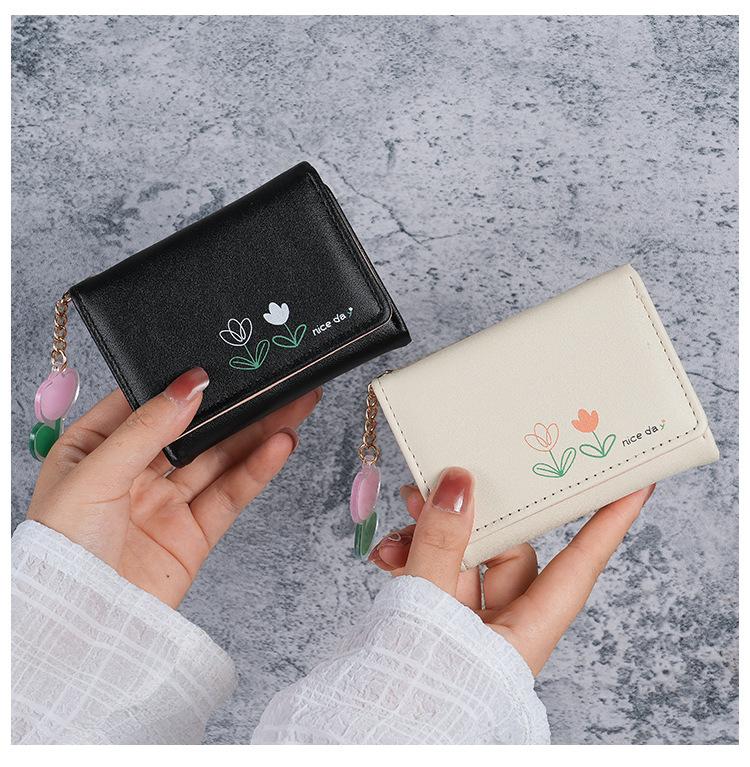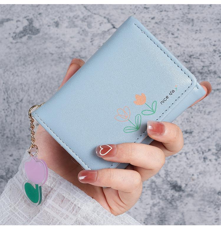 Cartera pequeña para mujer, nueva, 2024, corta, triple, de color liso, con estampado simple, bonita y fresca, plegable para estudiantes, tarjetero